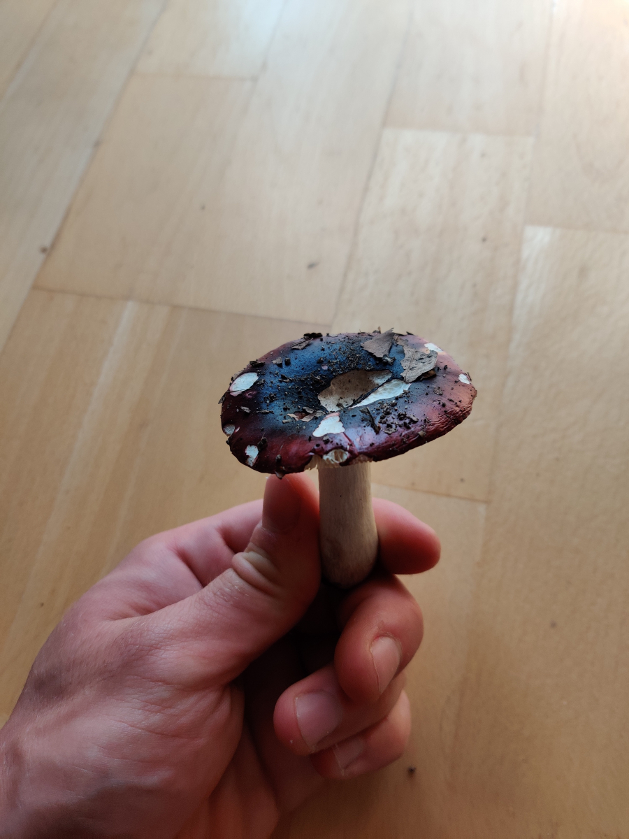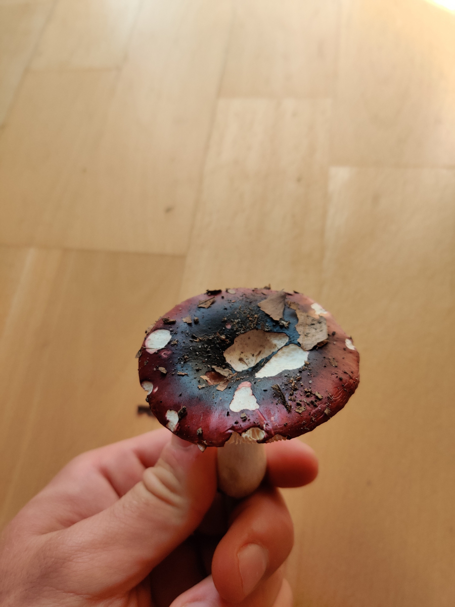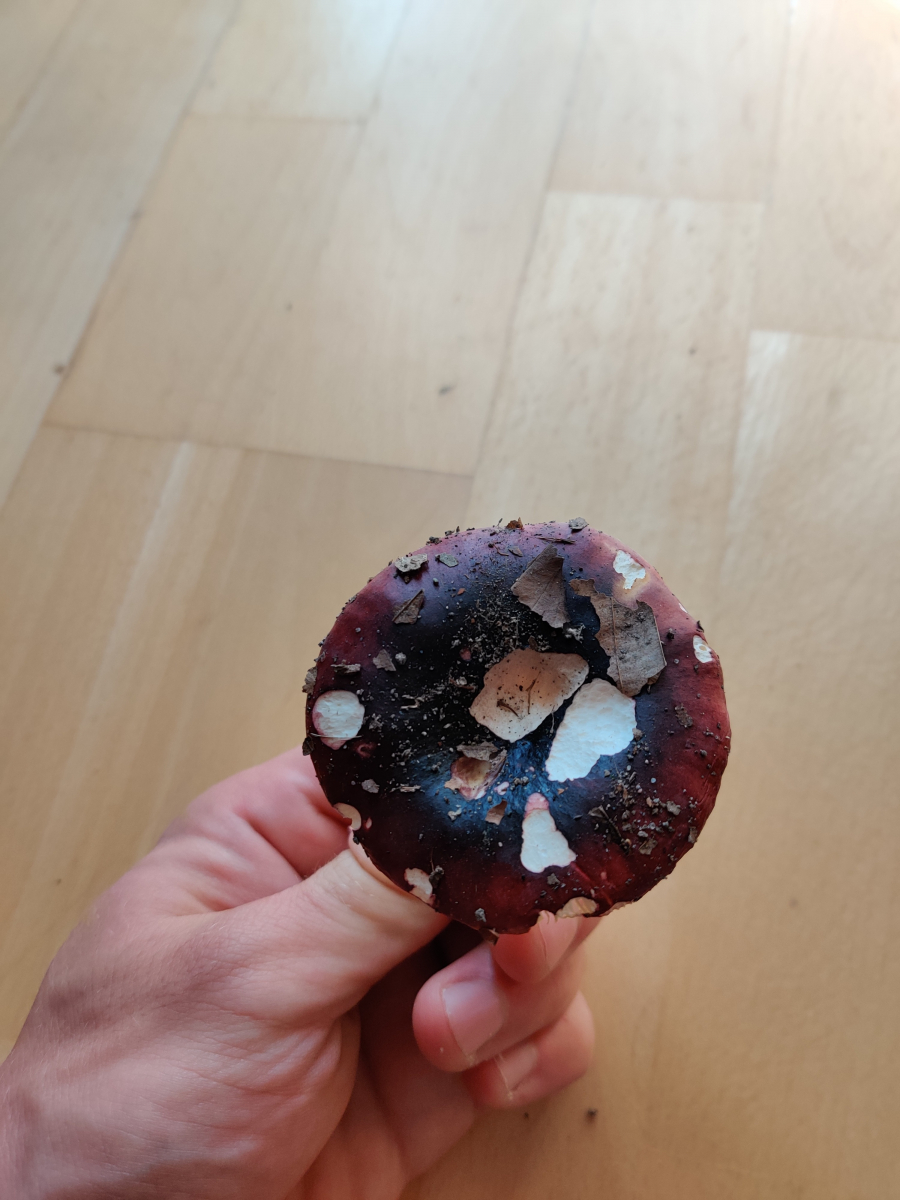 Habe gerade nochmal den Purpurschwarzen Täubling gefunden. Der Pilz schmeckt überraschend scharf.