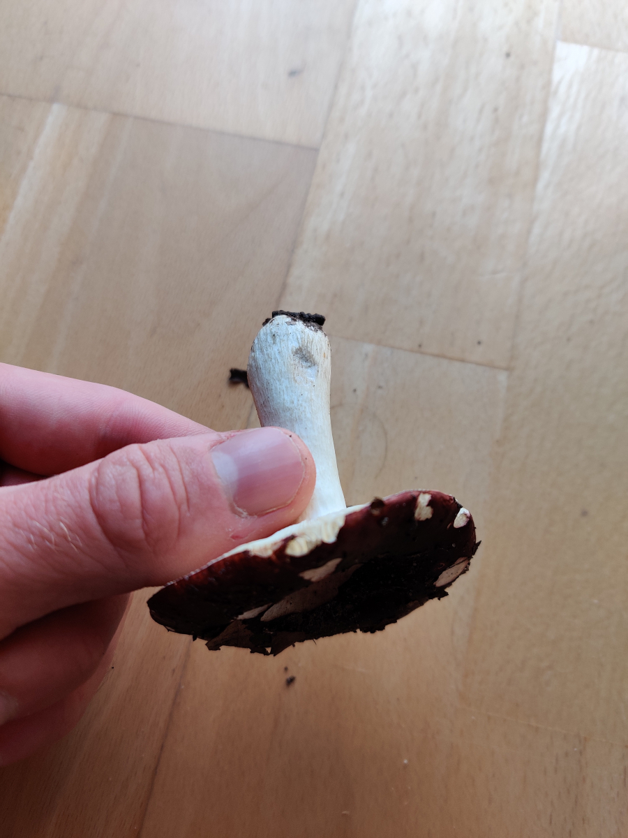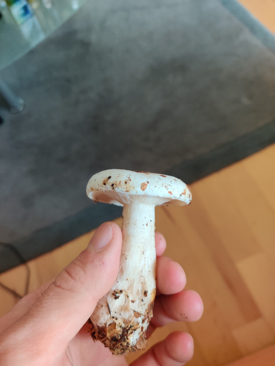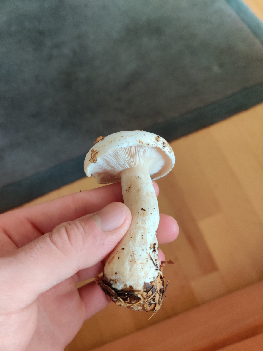 Neben 2 Kg Steinpilzen habe ich auch den hier gefunden. Ich würde tippen es handelt sich um einen Perlpilz, wegen der leichten Rotfärbung. Aber eine Verwechslung ist wohl eher unschön, deswegen frage ich lieber nach😅 Der Geruch ist neutral.