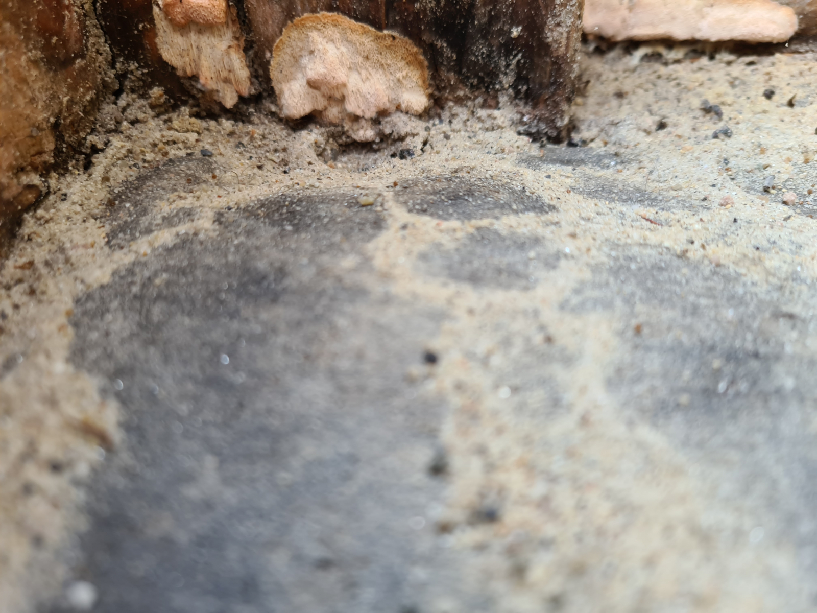 Dort wo der Pilz hauptsächlich ist werden normalerweise die Spielsachen aufbewahrt, auf der anderen Seite ist normalerweise der Sand (haben nur die Stelle freigegraben, letztes Bild)