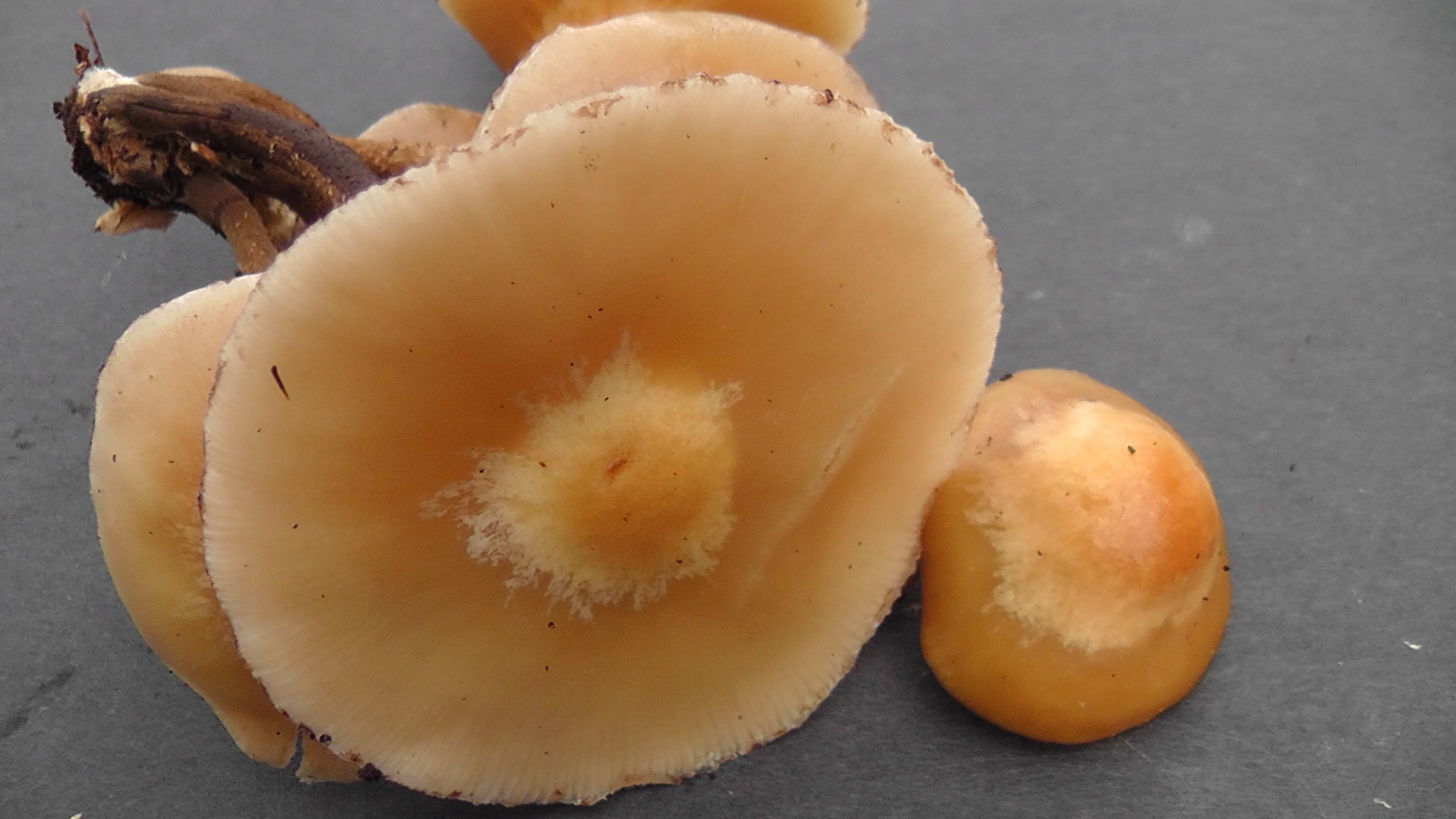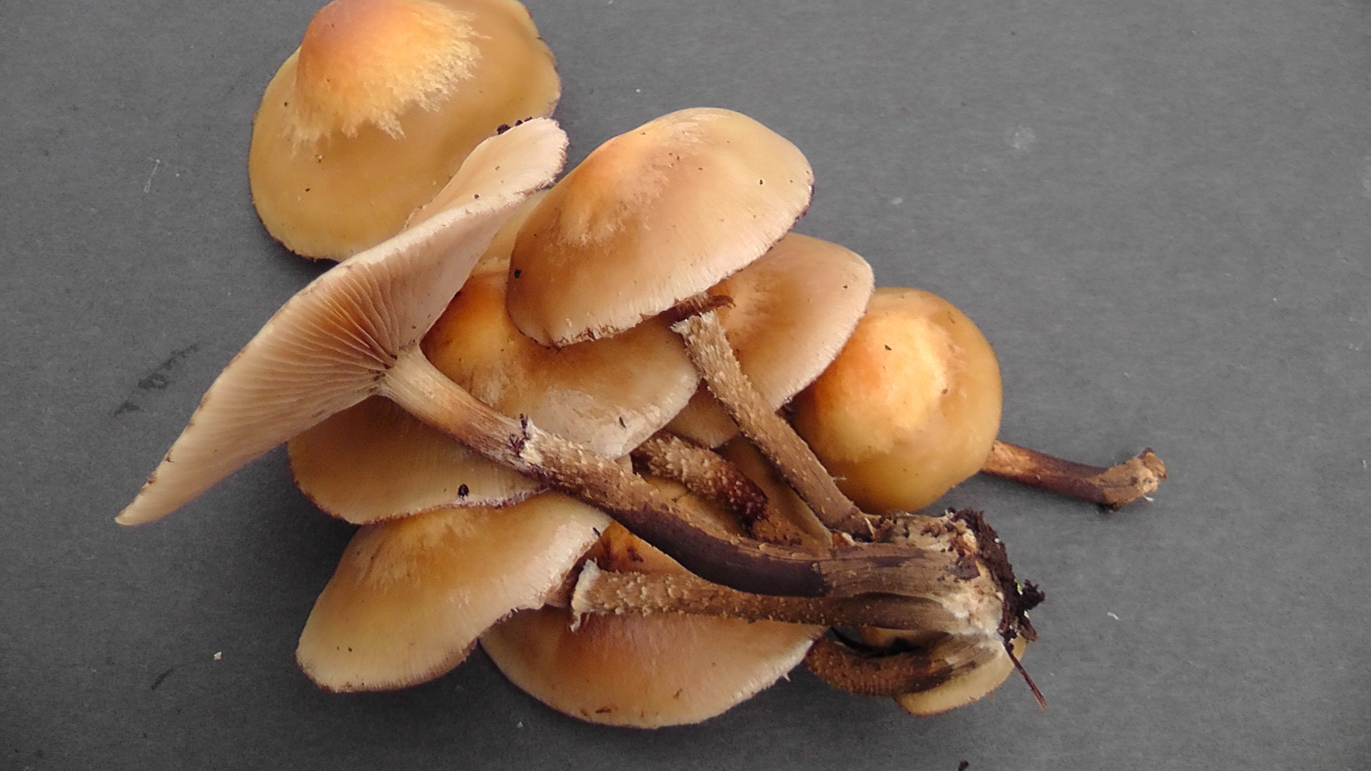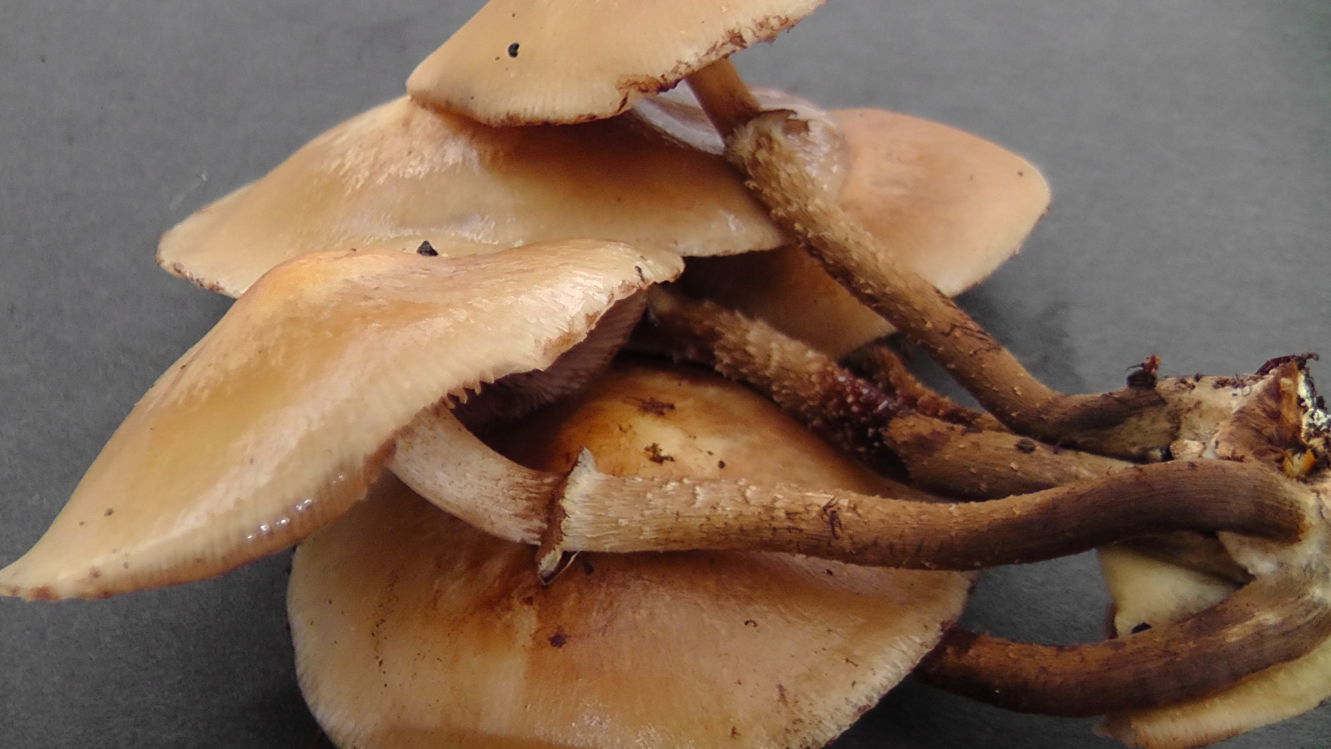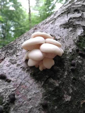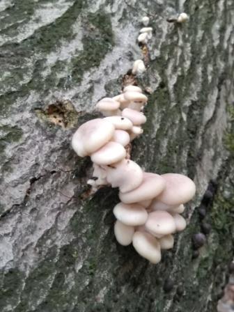 Unter den vielen FK waren auch einige mit deutlich dunklerer, brauner Hutfärbung, wie ich sie eher von den typischen Austernseitlingen kenne. Beim Putzen fiel mir dann auch auf, dass diese Exemplare deutlich dickfleischiger als die hellen sind. Dass beide Arten auf dem gleichen Substrat vorkommen, halte ich ja nicht für ungewöhnlich, aber eine zeitgleiche Fruktifikation?