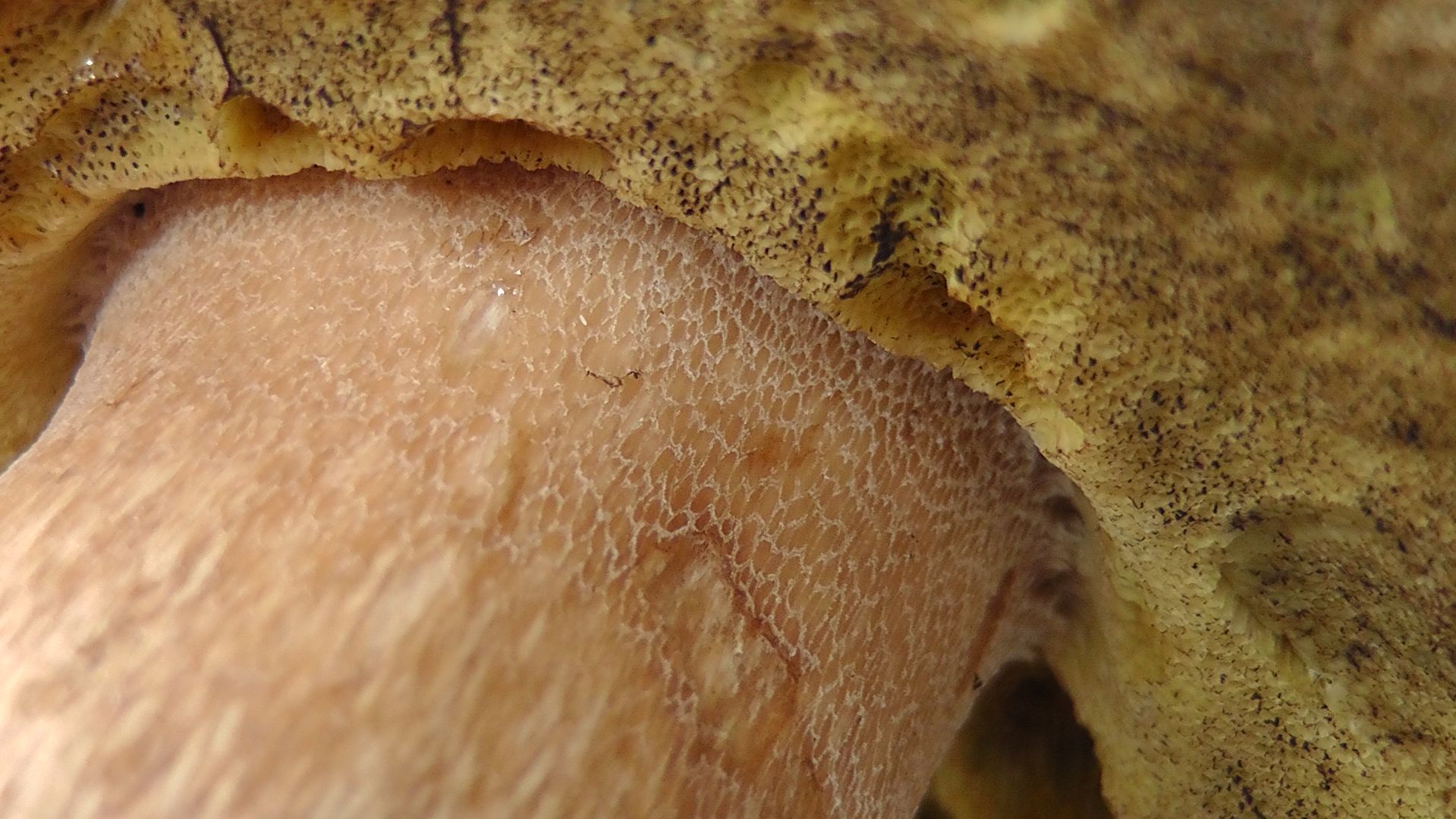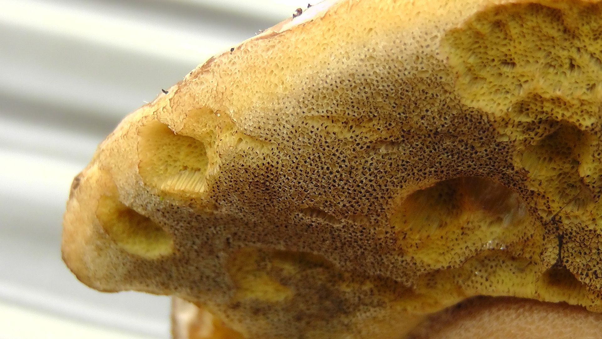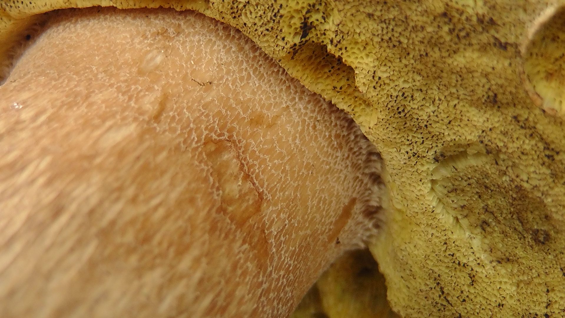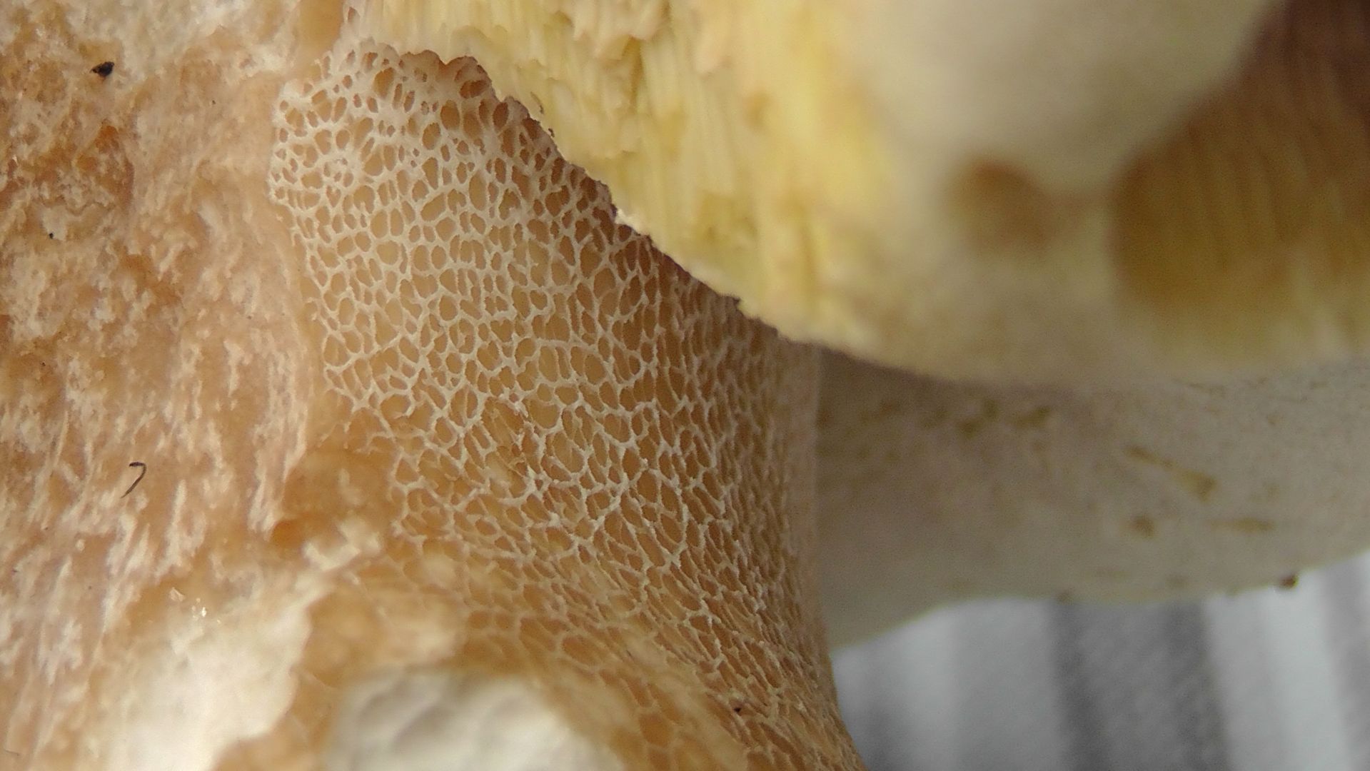 - Beschreibung Fruchtschicht (das sind die Lamellen oder Röhren): eindeutig Poren mit leicht orange-gelblicher Färbung