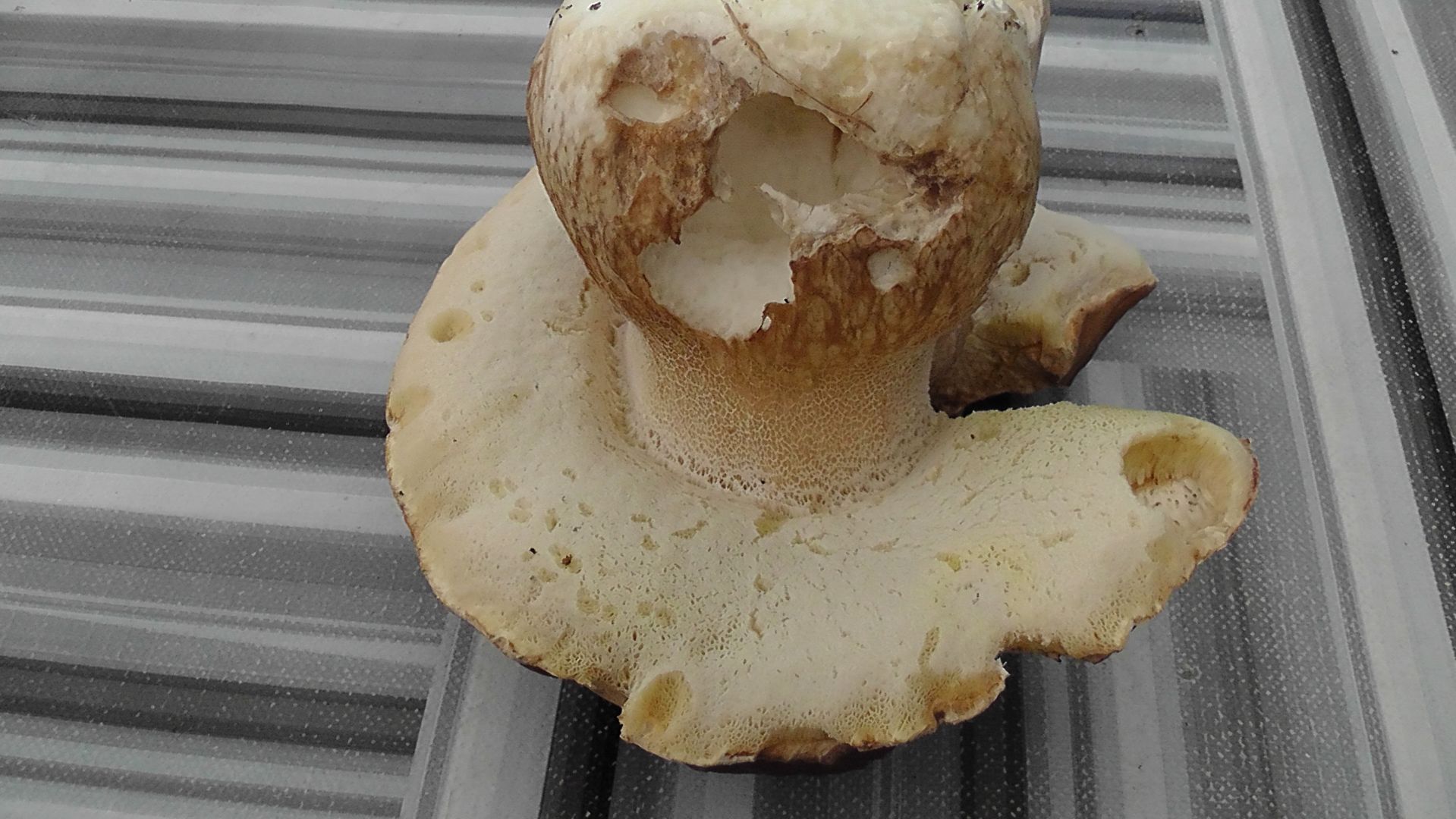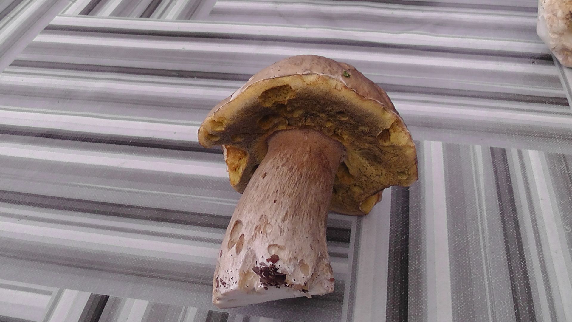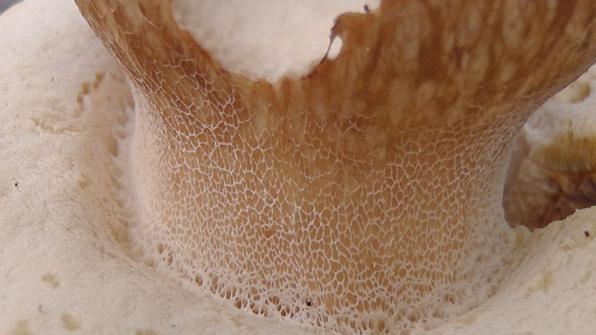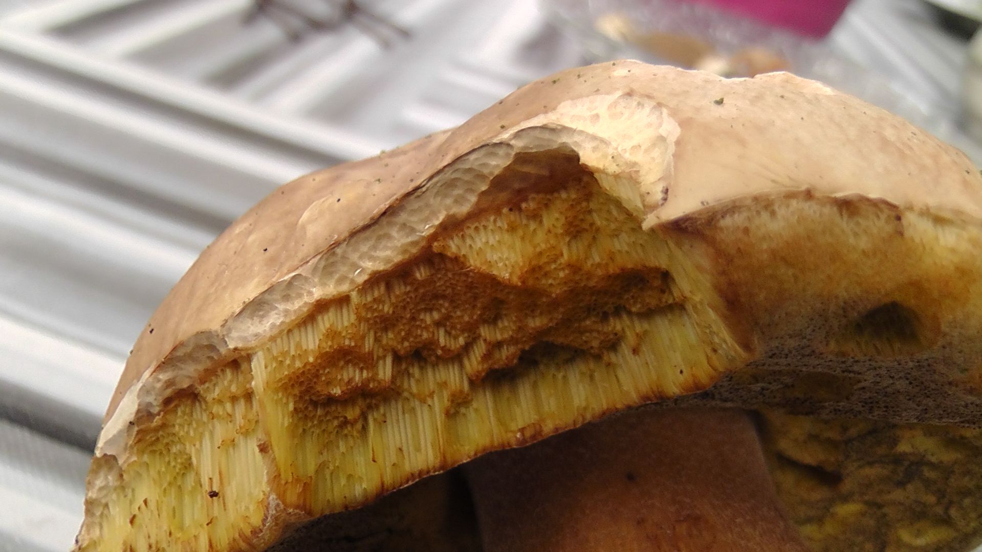 - Beschreibung Fruchtschicht (das sind die Lamellen oder Röhren): eindeutig Poren mit leicht orange-gelblicher Färbung