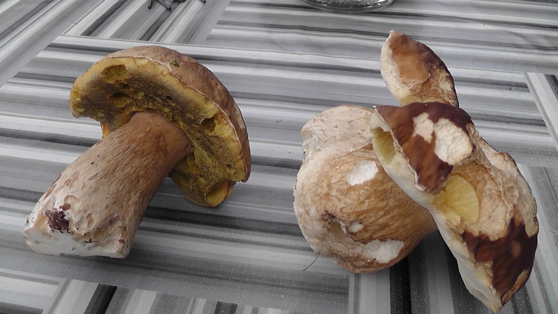 meine Frau und ich betreiben das Hobby Pilzesammeln und -bestimmen nun schon ein paar Jahre. Noch nie war uns das Glück hold, einen Fichtensteinpilz zu finden, die Artenvielfalt in unseren Wäldern am Niederrhein ist auch nicht gerade berauschend. In diesem Jahr wären wir fast zwei, drei mal auf den Gallenröhrling hereingefallen, haben ihn aber noch rechtzeitig an der leichten Rosafärbung der Röhren und dem eher bräunlichen Stielnetz erkennen können. Heute nun sollte sich (hoffentlich!) das Blatt wenden. Auf einem alten Friedhof standen diese beiden "Prachtexemplare" an Buchen. Beide riechen sehr angenehm pilzig, Huthaut trocken und leicht wildlederartig, ich erahne eine leichte Rotfärbung unter der Huthaut, Stielnetz direkt unter dem Hut weiss. Hut und Stiel sehr festfleischig. Sollte uns tatsächlich ein Erstfund geglückt sein?? Wenn man so manche YT-Videos schaut, kann man richtig neidisch werden, Steinpilze wohin man schaut, bei uns bislang nur Essig.