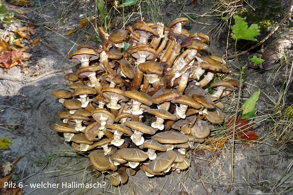 - der Halimasch ist ein Standortfoto, sieht aus als wenn er im Moos wächst, aber der Wald ist ein Nadelwald aus Fichten und Kiefern --> also ein Armillaria ostoyae