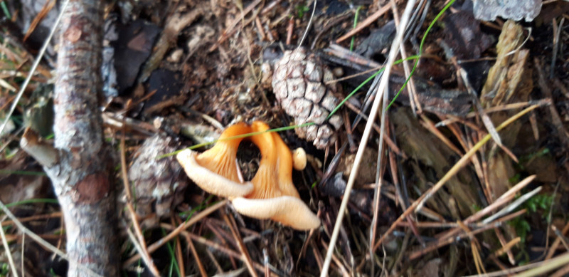 War heute Vormittga kurz mal im Wald gewesen und habe einen kleinen Pilz gefunden bei Kiefern:
