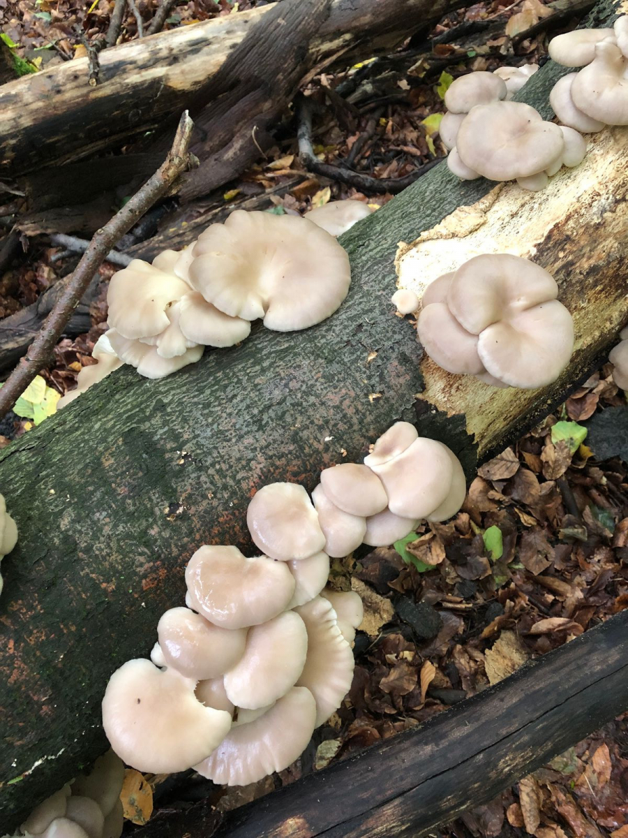 Dann gibt es noch Pilz Nr. 3, den ich nicht anschneiden wollte, weil er ohne weitere "Artgenossen" alleine auf einem Baumstamm im Laubwald saß.