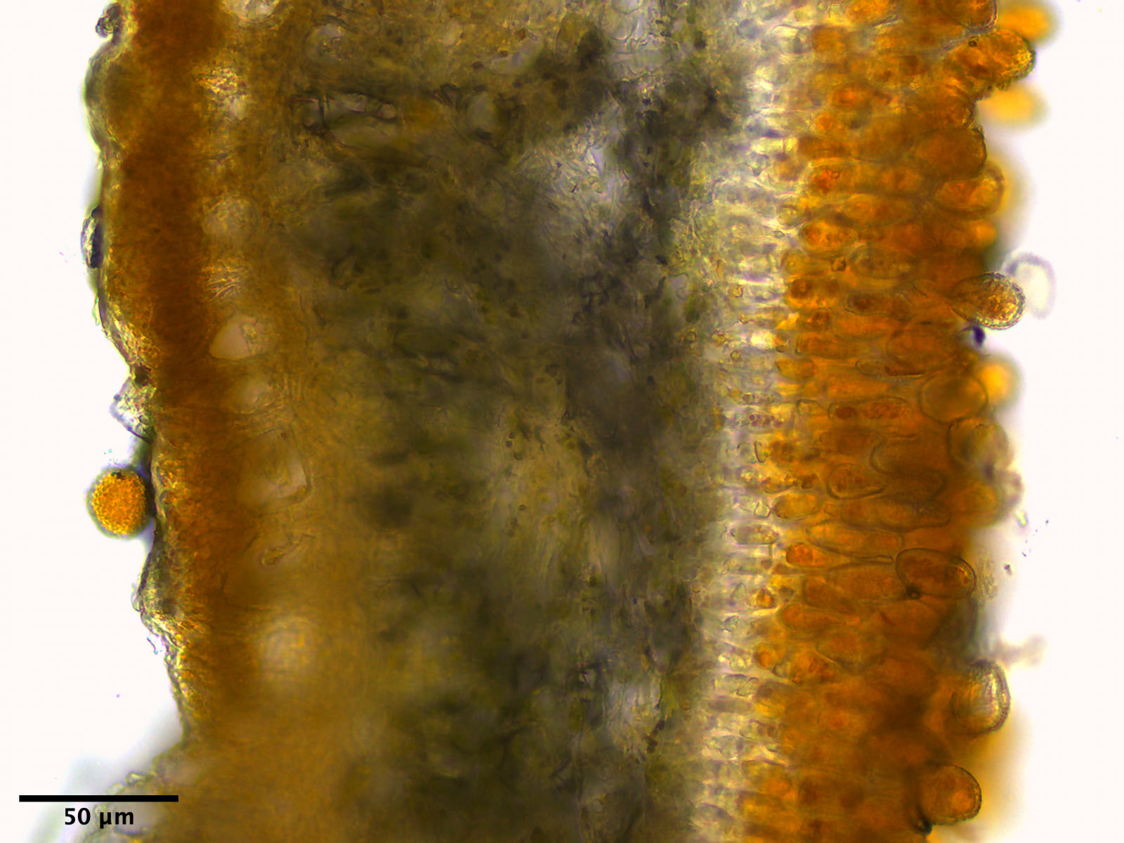Aber ich komme je nach Ausschnitt auf 621, 636 und 677 Poren pro cm^2 was dann pro mm ca. 2.5 Poren wären. Nach meiner (nicht sehr umfangreichen, nur BK PdS 2 und Funghi of temperate Europe) Literatur ist das etwas zu wenig.