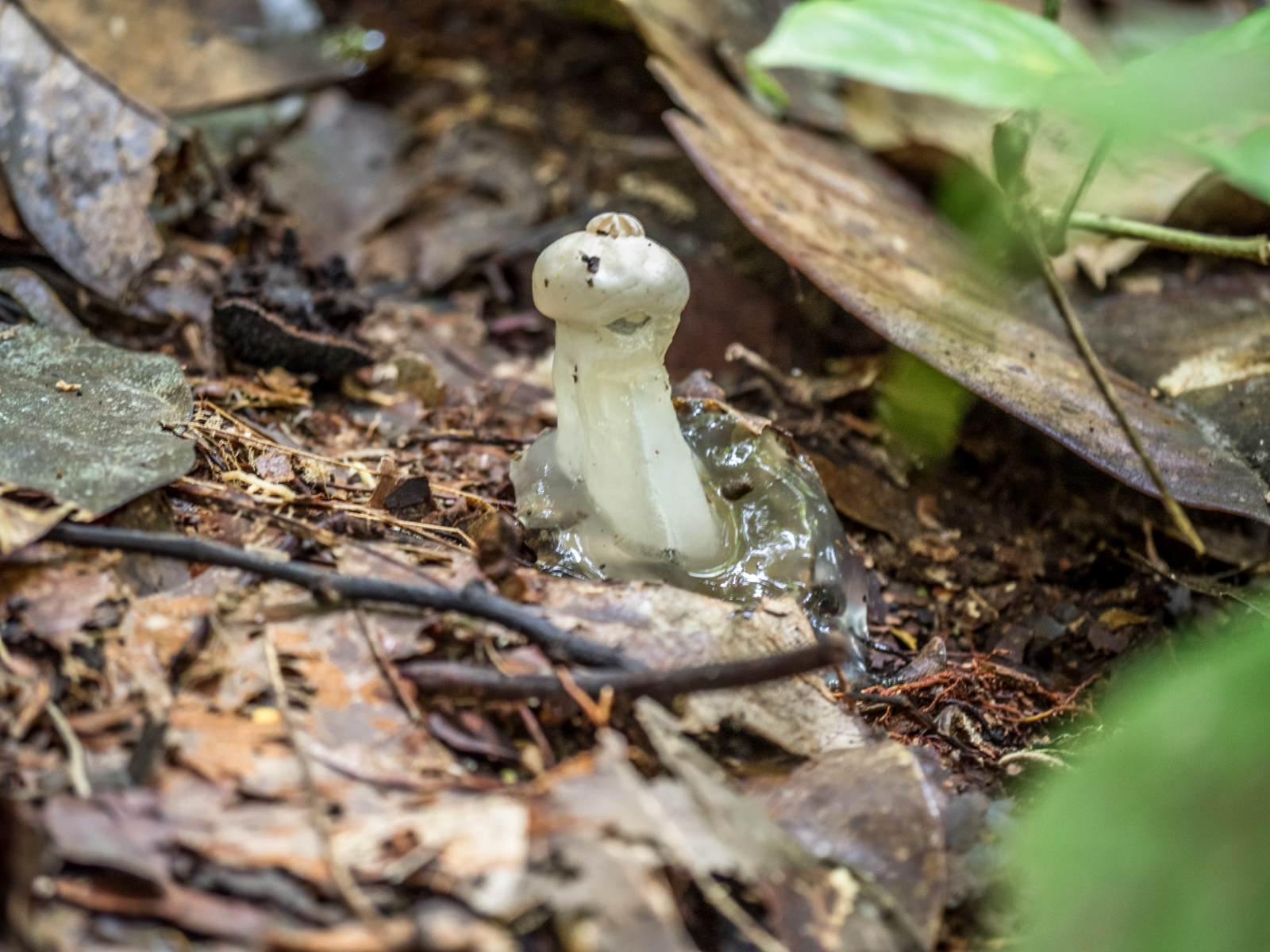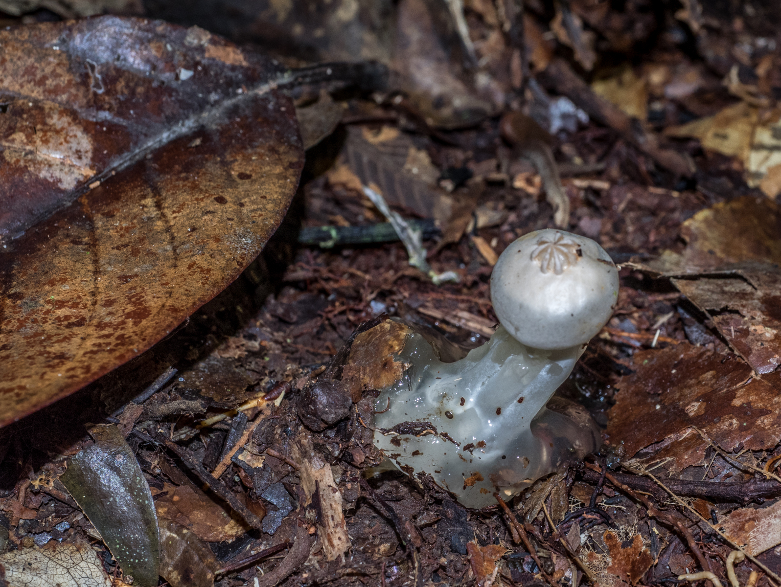 vor ein paar Monaten war ich auf Borneo - bei einer mehrstündigen Wanderung zeigte sich etwas, das an einen Pilz erinnerte. Für die Bestimmung fehlen wichtige Merkmale, aber da es das einzige Exemplar war und ich keine Möglichkeit hatte, das weiter zu untersuchen oder mitzunehmen, mussten Bilder reichen. Meine Frage, falls das ein Pilz ist: wo in der Taxonomie könnte man das vielleicht einordnen? Bin bei diesem Alienteil ratlos.