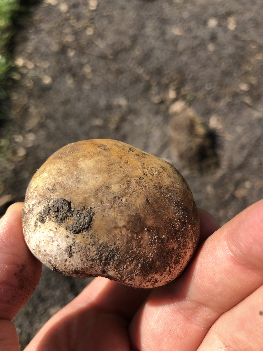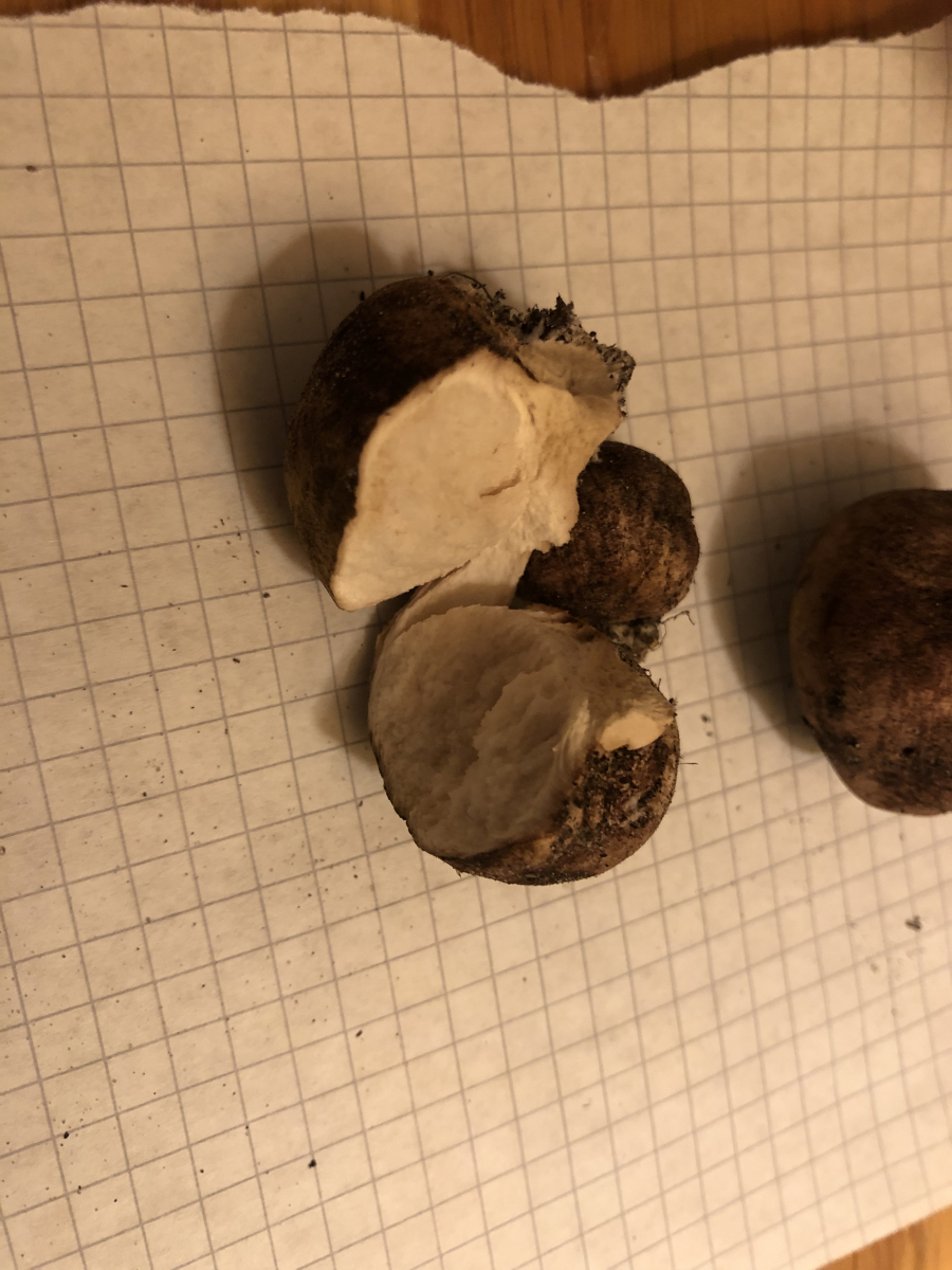 Laut Wikipedia ist das „Innenleben“ des sclerodermas dunkel. Der Pilz in unserem Garten ist im Inneren aber hell.