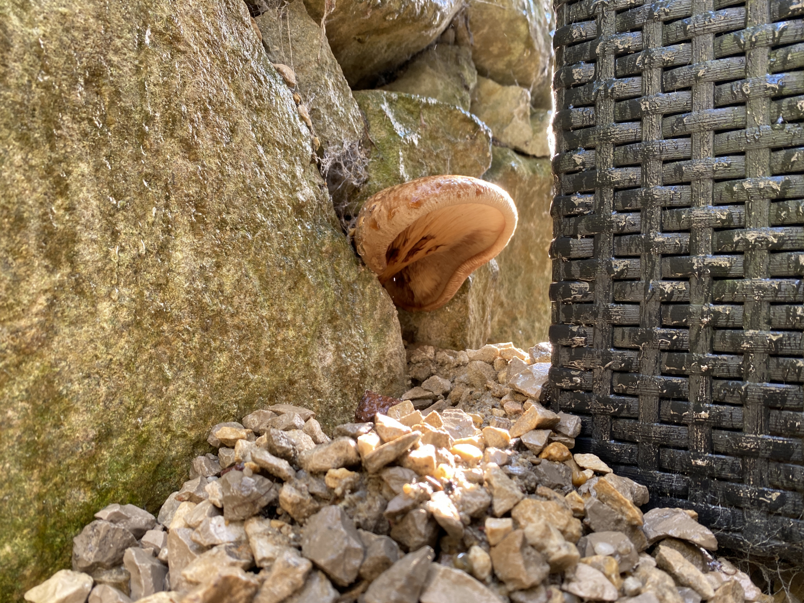 Standort Steingarten, wächst aus Bruchstein-Trockenmauer. Die Mauer ist mit Splitt hinterfüllt, dann kommt Lehm. Dieser ist von Populis Tremula durchwurzelt. Kann es ein Holz- bzw. Wurzelschadpilz sein? Danke Euch!