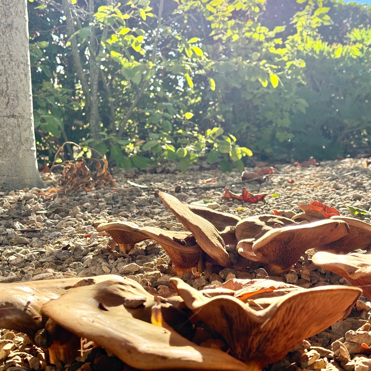 Die Fläche weitet sich kontinuierlich aus und damit die Zahl der Fruchtkörper, die in manchen Bereichen so viele sind, dass man gar nicht mehr treten kann. Und sie halten sich meist wochenlang, oft bis zum Schneefall..