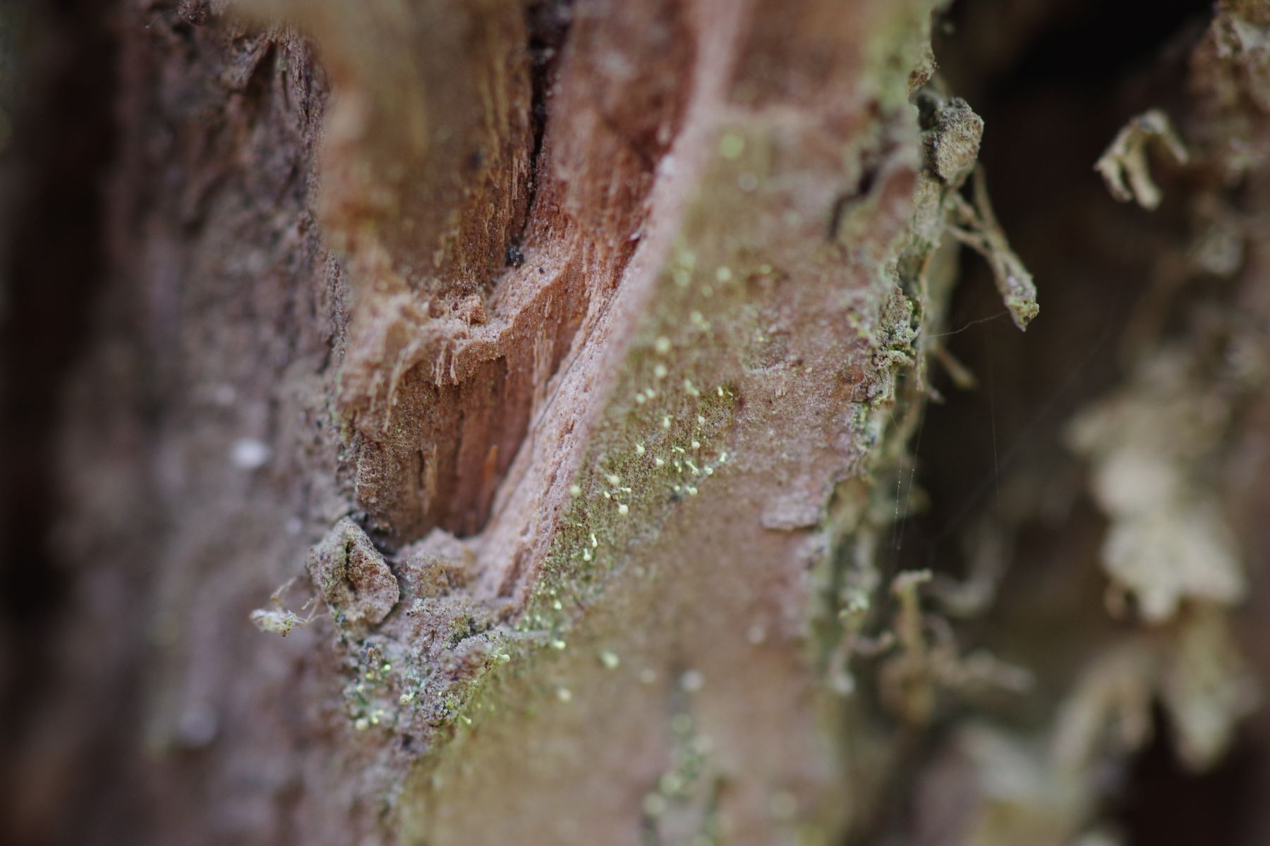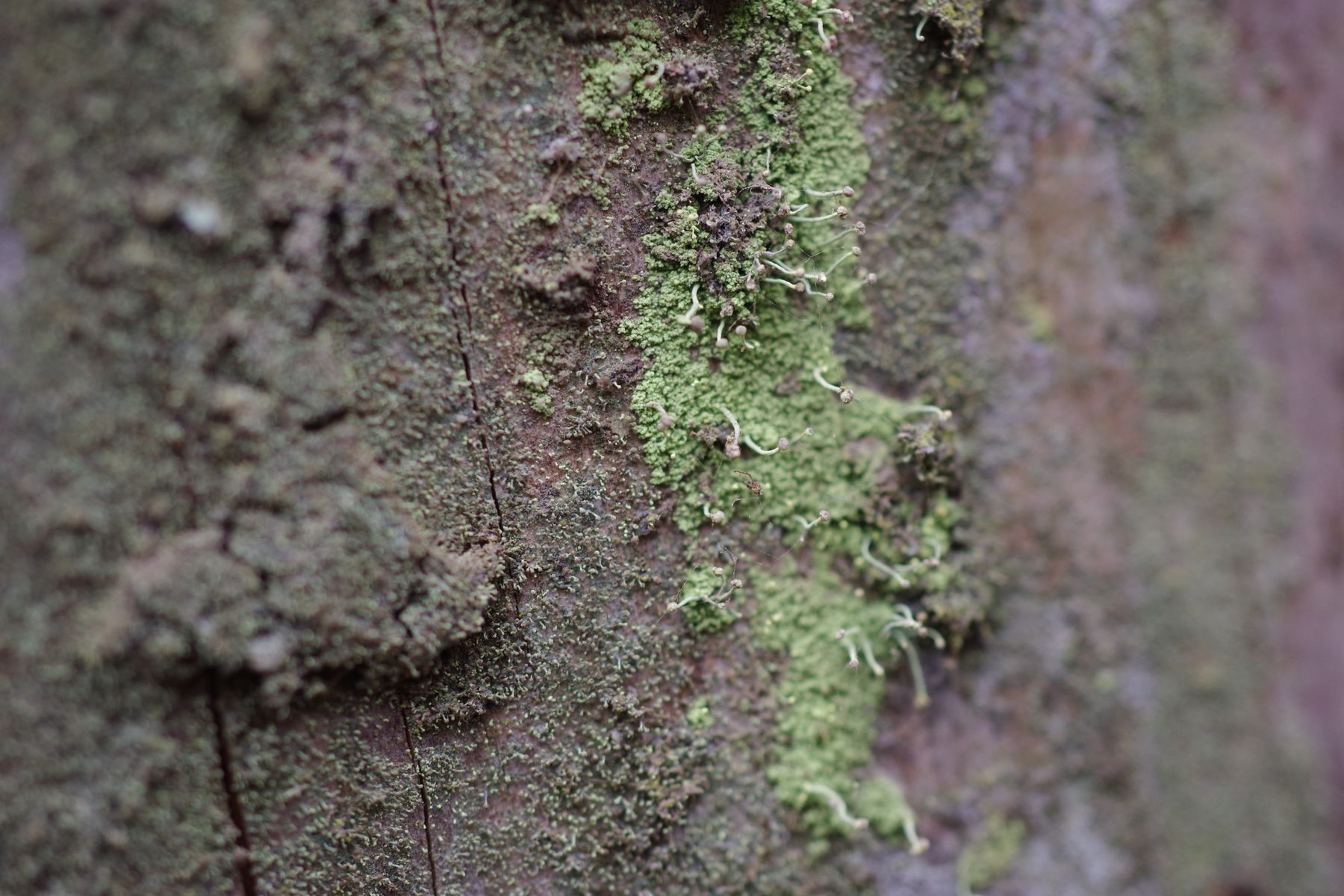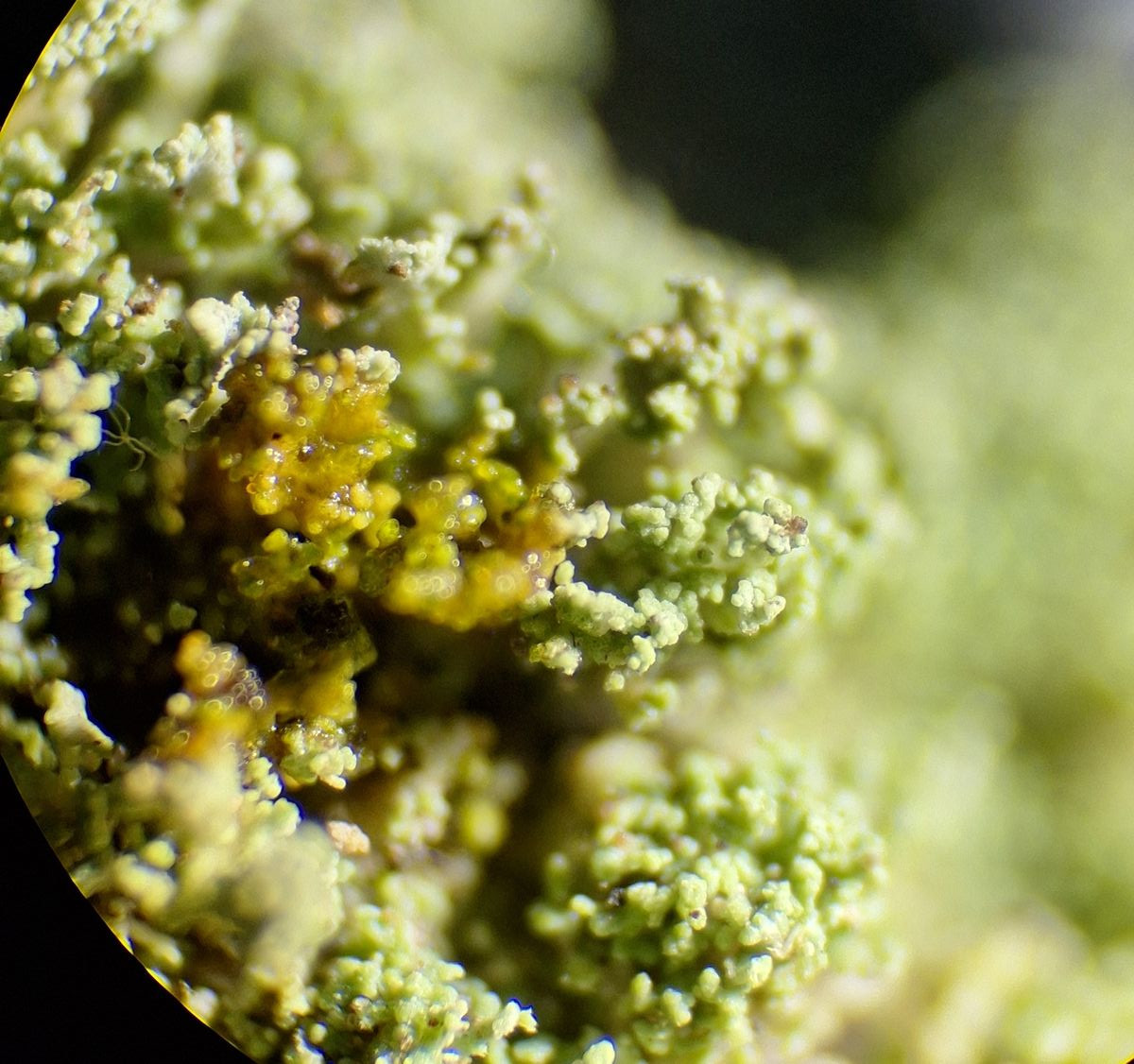 Die Stecknadelflechten waren bescheiden vertreten, relativ häufig die gelbe Chaenotheca brachypoda, die wohl für Auwälder typisch zu sein scheint. Meist an Rinde und Holz von Weiden, aber auch eine Reihe anderer Substrate.