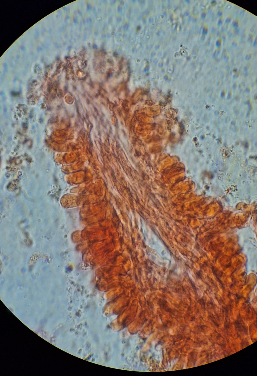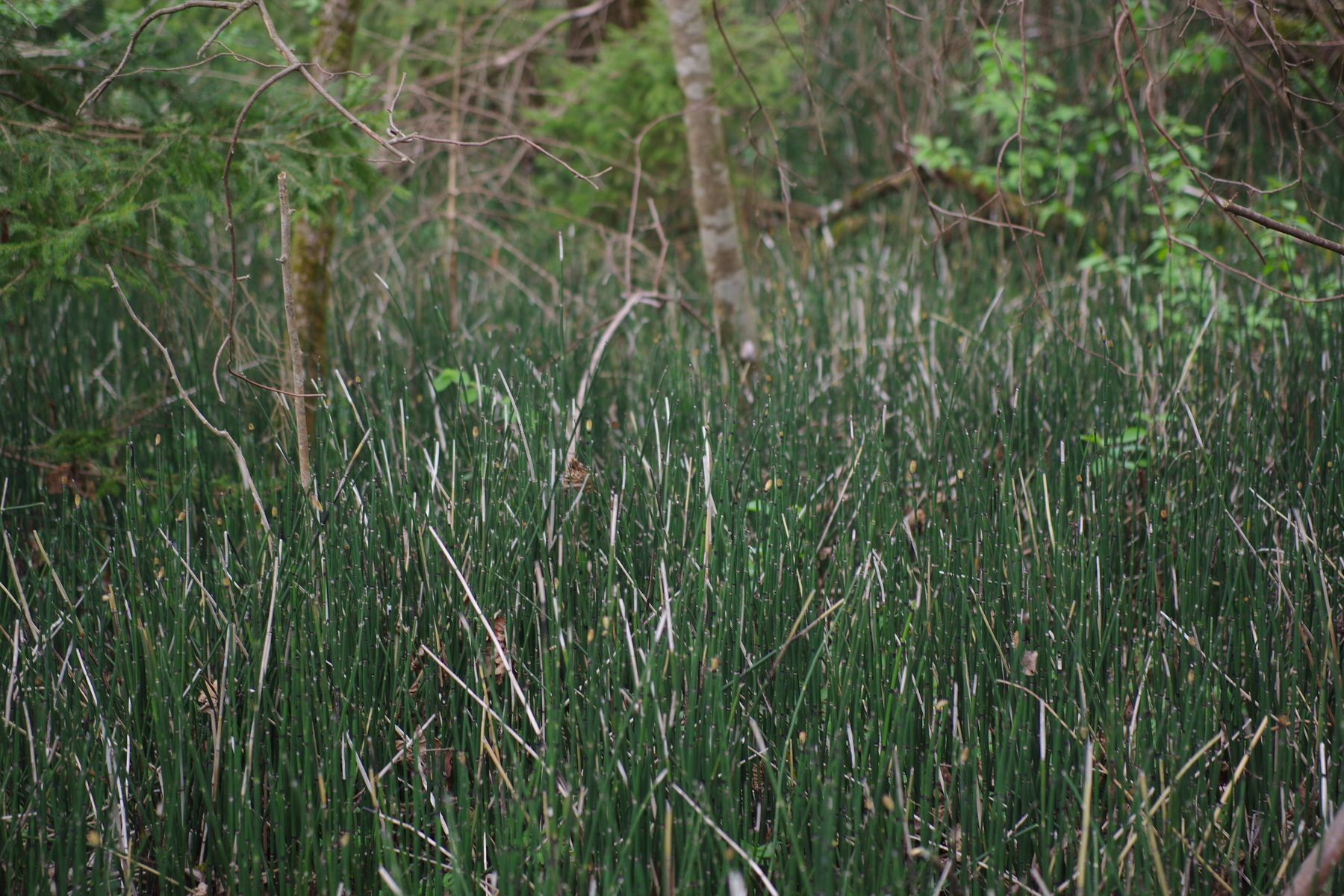 In einem Ulmenwald mit dominierendem Winterschachtelhalm in der Bodenschicht gab es einen interessanten Pilz an Equisetum hyemale, ein oranges Becherlein, mit gerade so den ersten reifen Asci