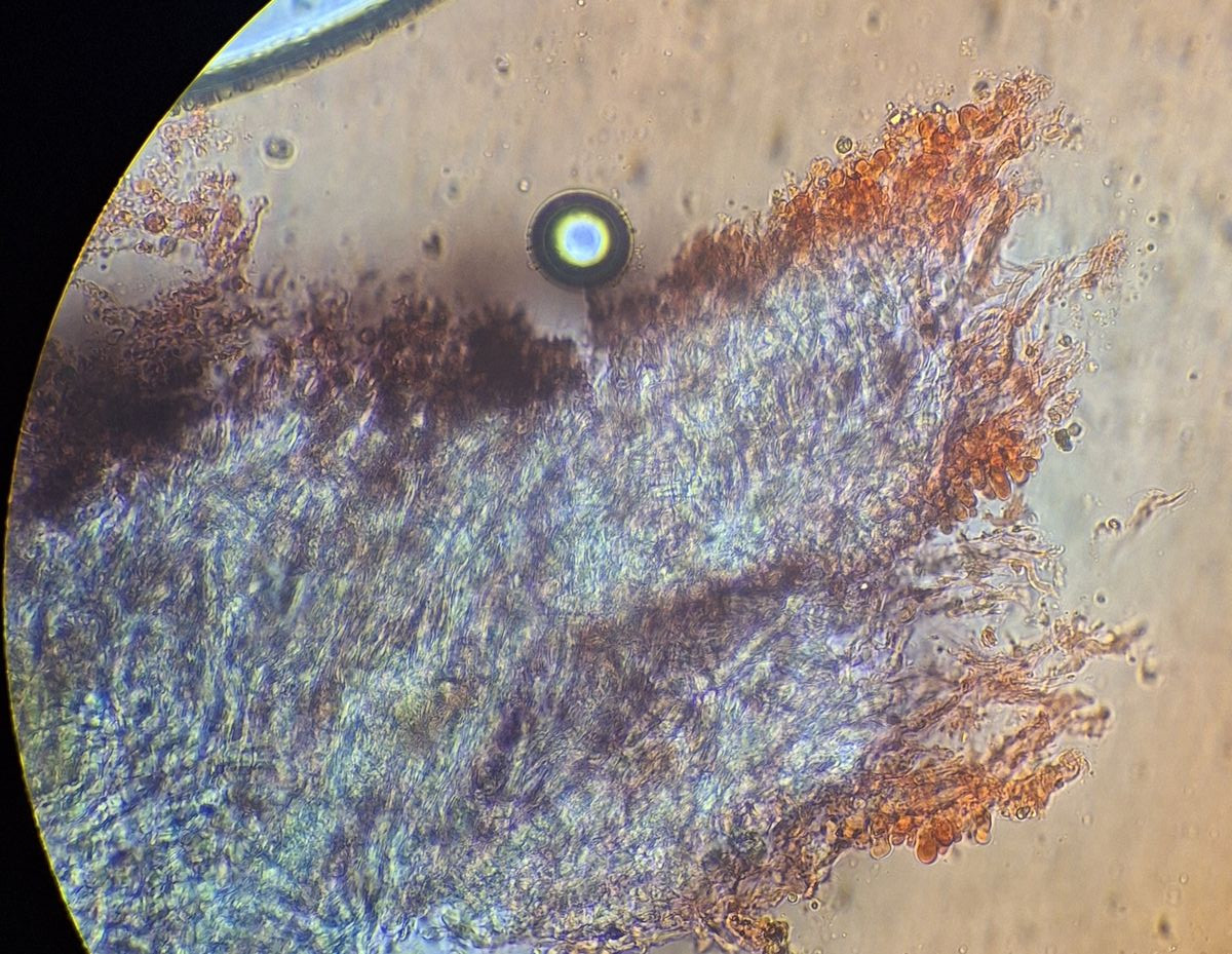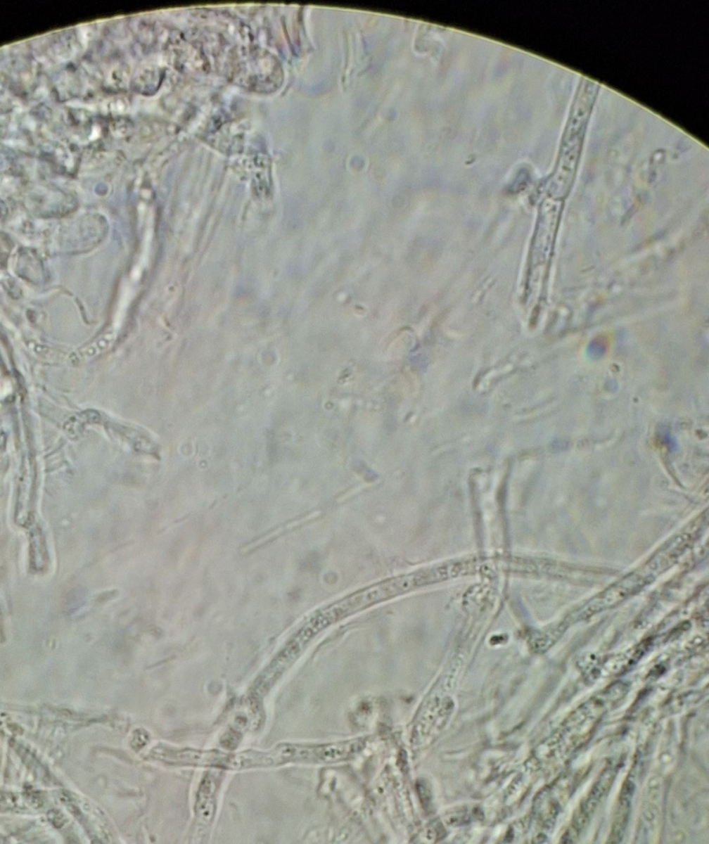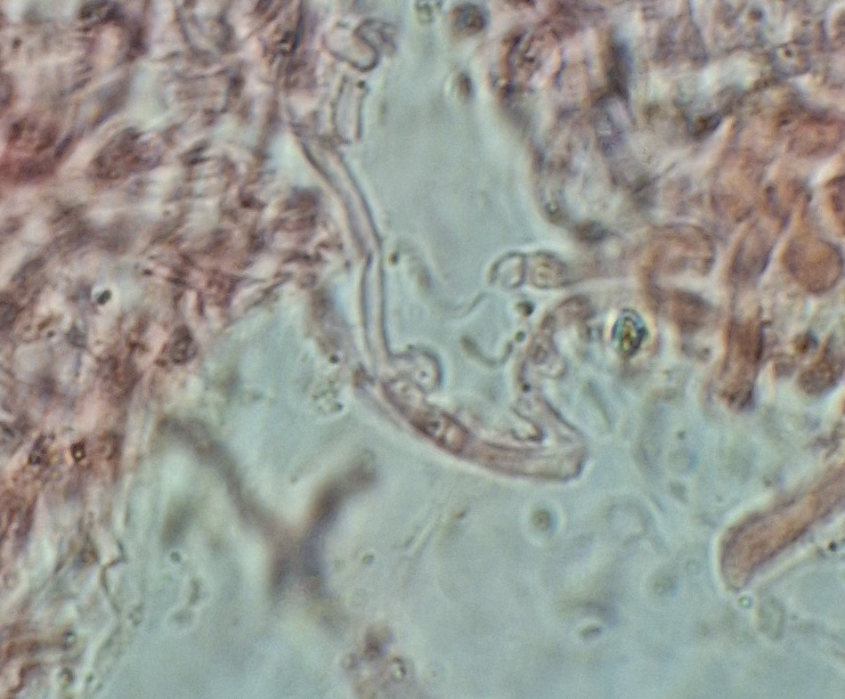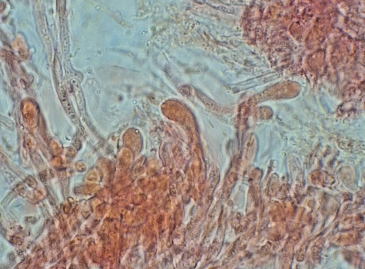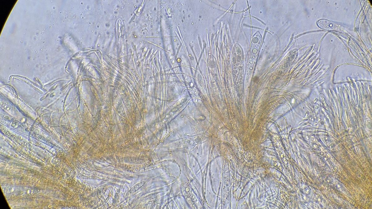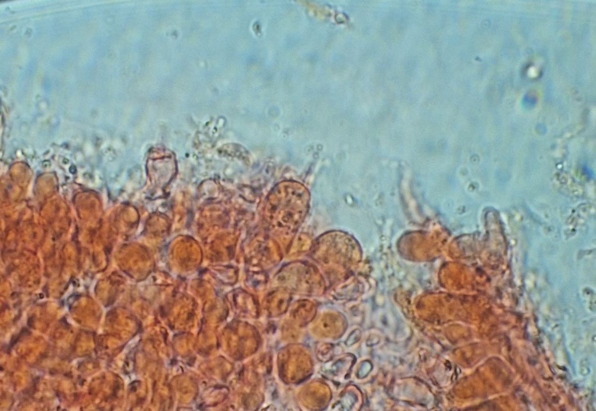 Melzers, J- oder nur minimale Anfärbung der Spitzen. Die Asci sind um 120*13 µm groß. Die wenigen Sporen, die zu vermessen waren, um 18-20*7 µm