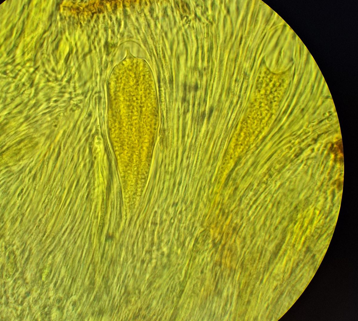 Asci konnte ich nirgends sshen, aber hier kann man die Sporen noch so angeordnet erahnen, wie sie in Asci aussehen sollten