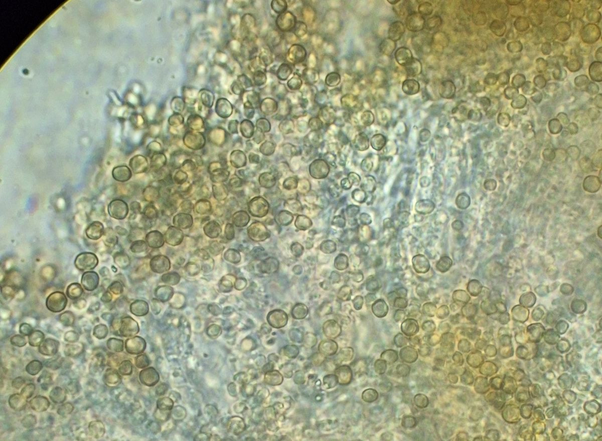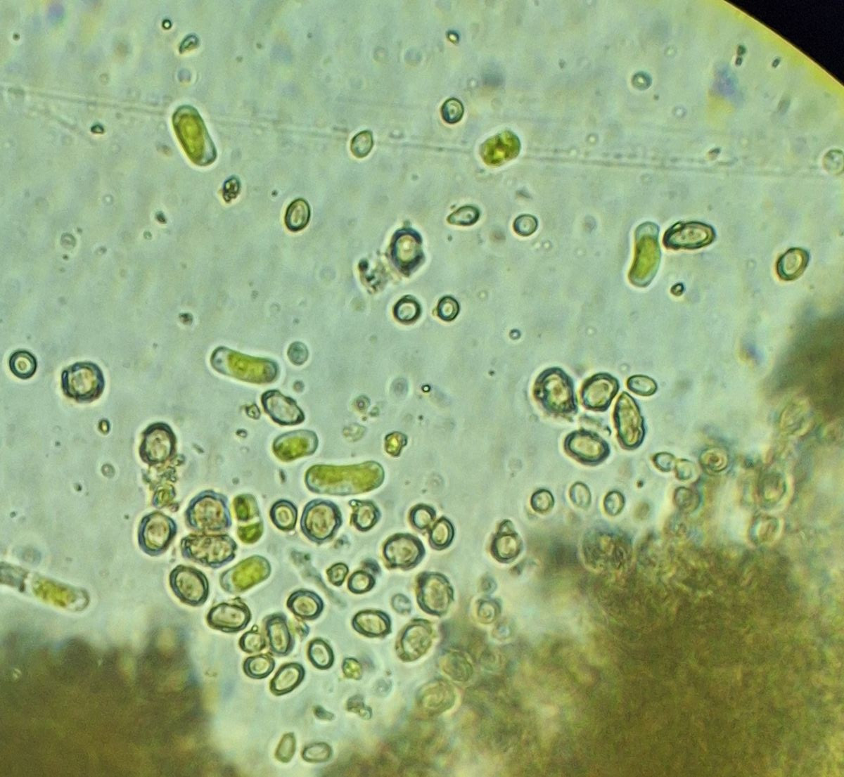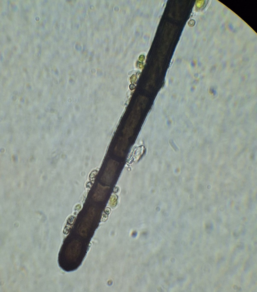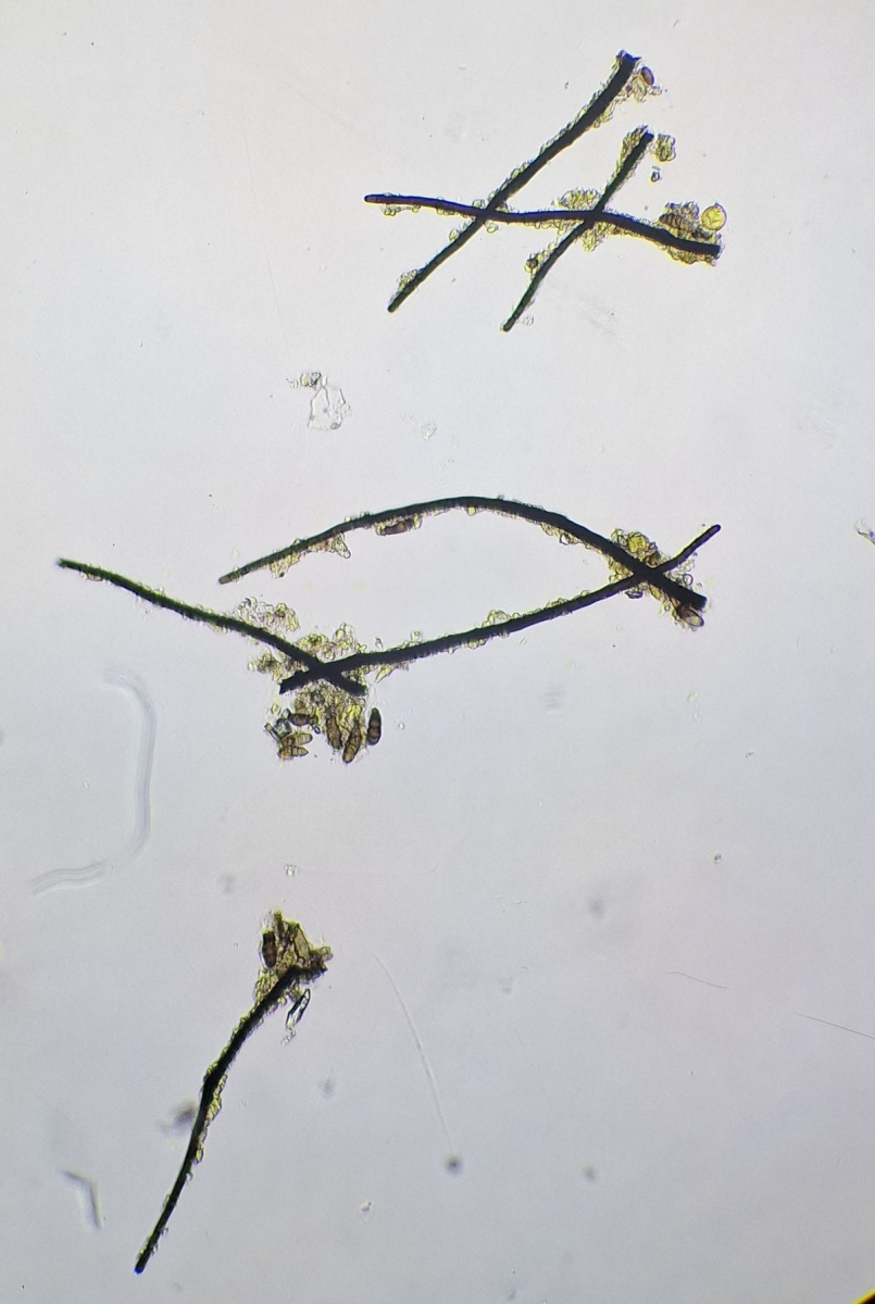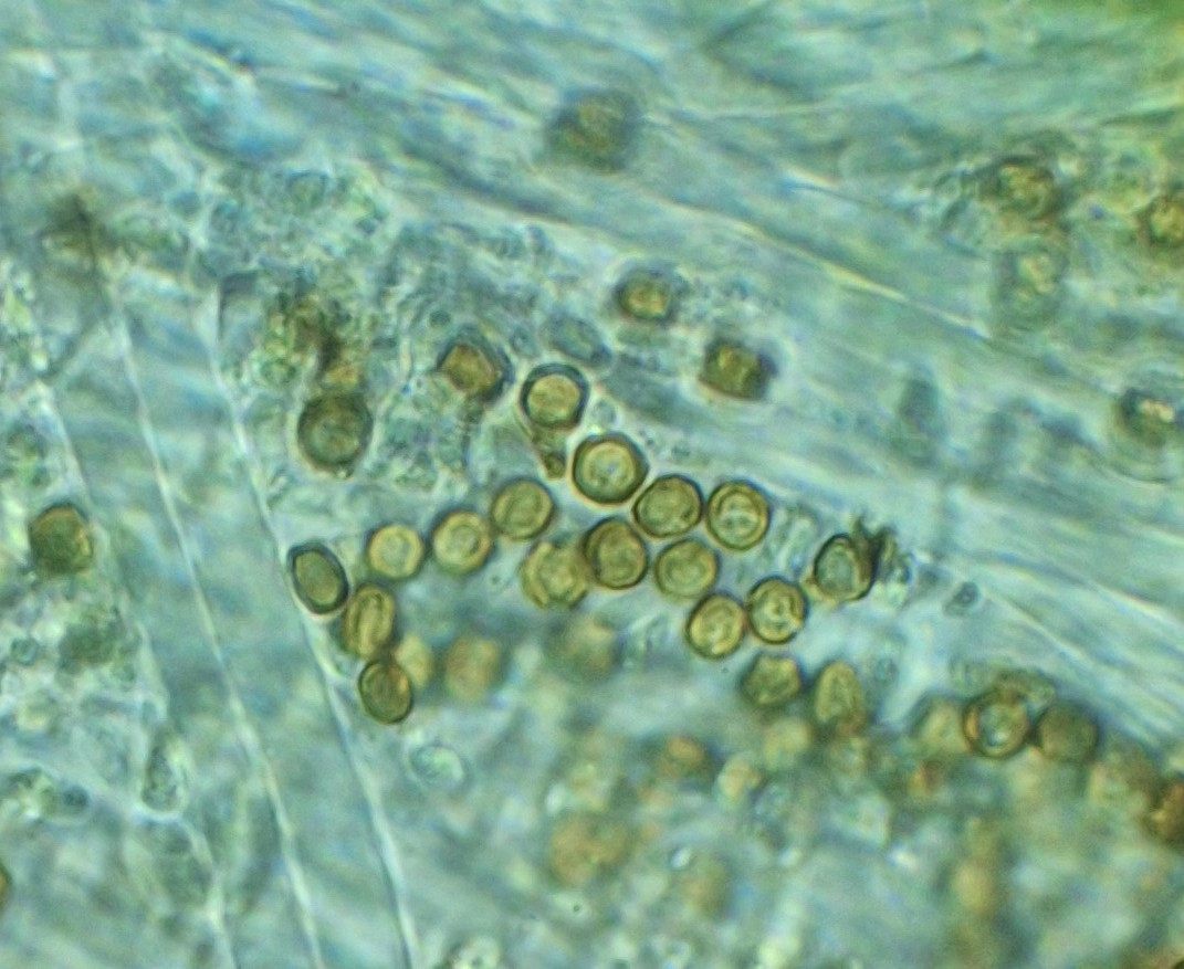Melzers, J- oder nur minimale Anfärbung der Spitzen. Die Asci sind um 120*13 µm groß. Die wenigen Sporen, die zu vermessen waren, um 18-20*7 µm