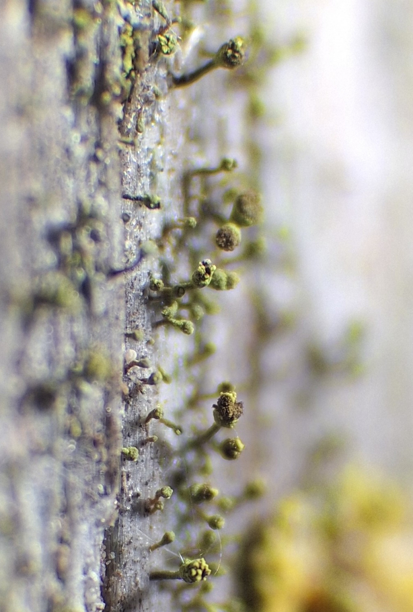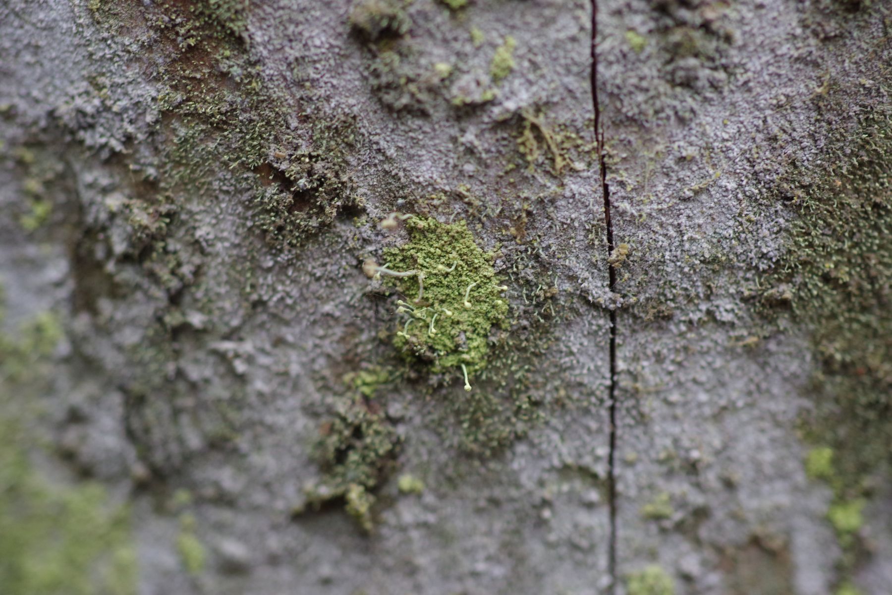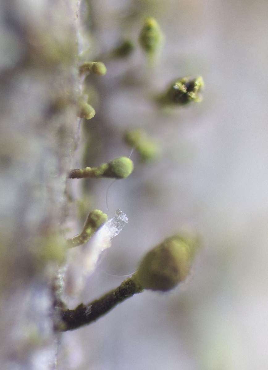 Die Stecknadelflechten waren bescheiden vertreten, relativ häufig die gelbe Chaenotheca brachypoda, die wohl für Auwälder typisch zu sein scheint. Meist an Rinde und Holz von Weiden, aber auch eine Reihe anderer Substrate.