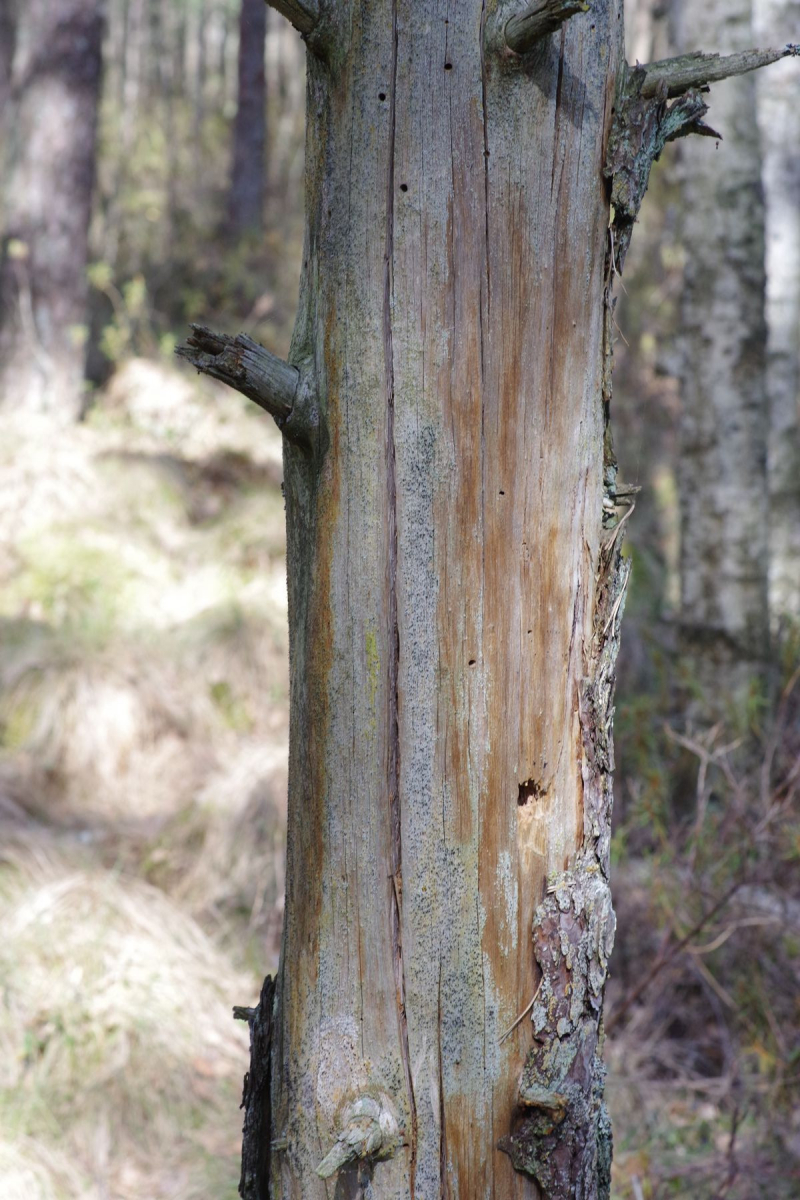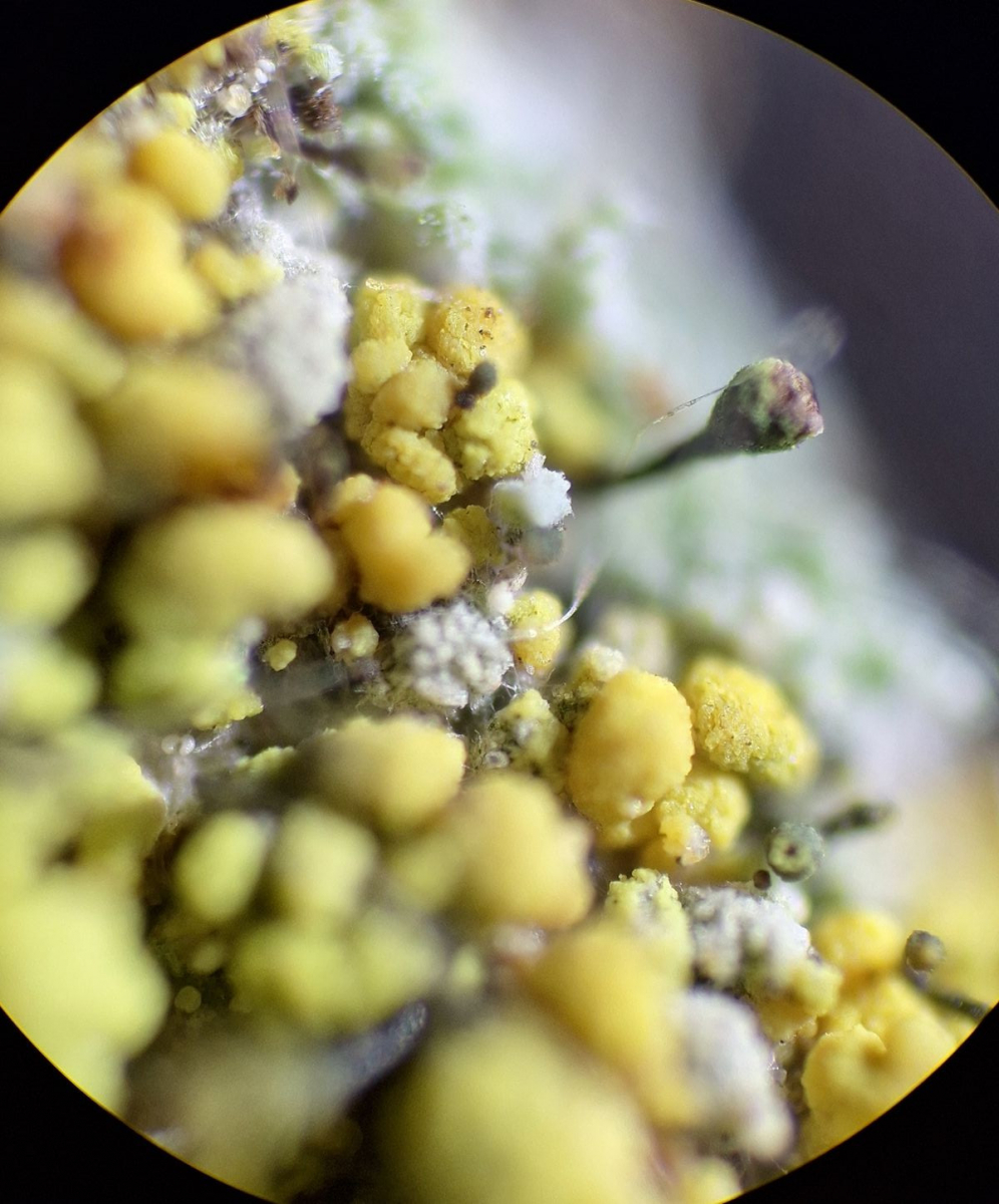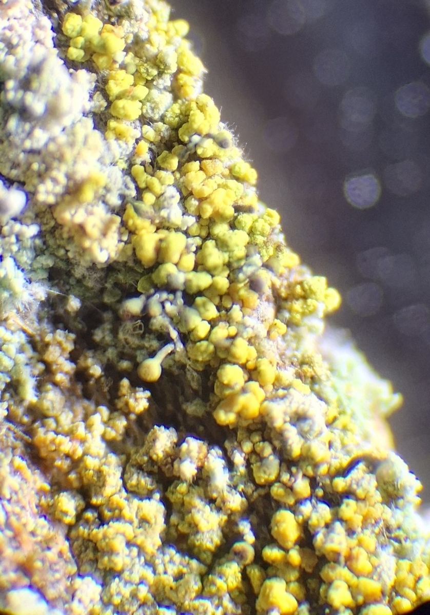 Die Stecknadelflechten waren bescheiden vertreten, relativ häufig die gelbe Chaenotheca brachypoda, die wohl für Auwälder typisch zu sein scheint. Meist an Rinde und Holz von Weiden, aber auch eine Reihe anderer Substrate.