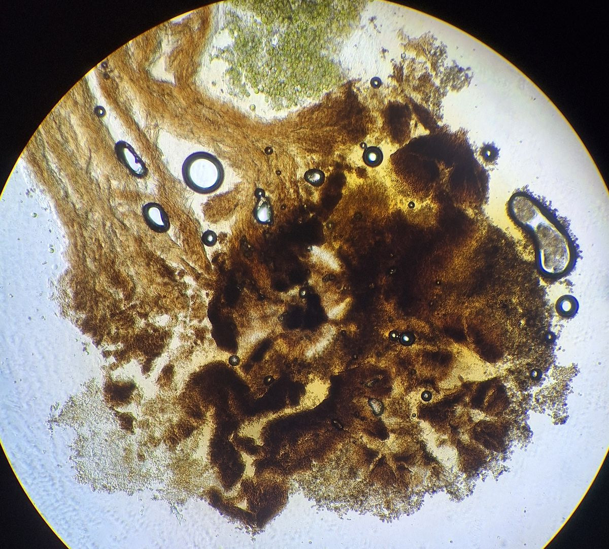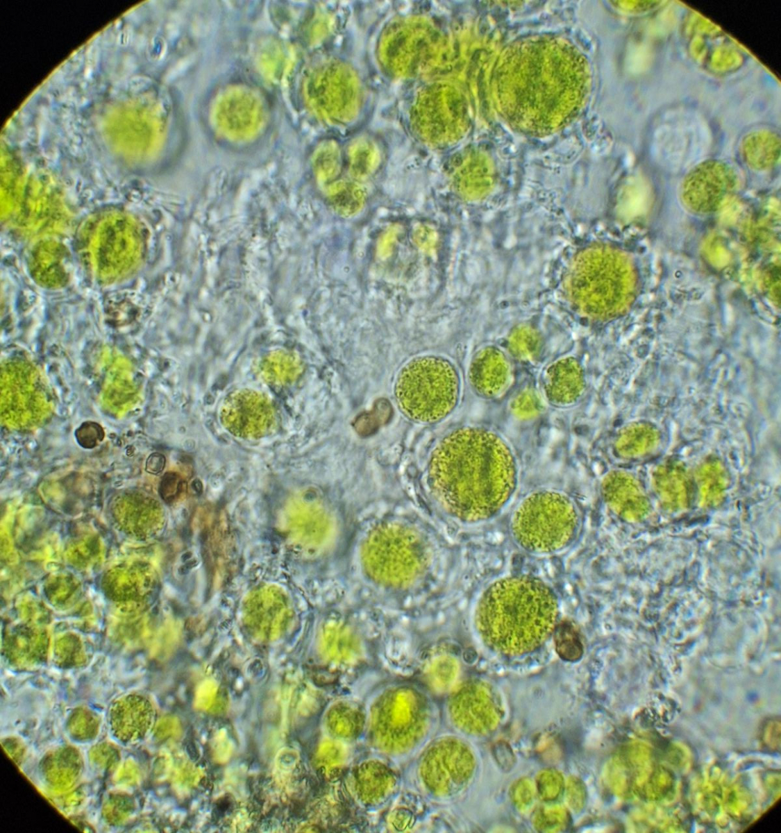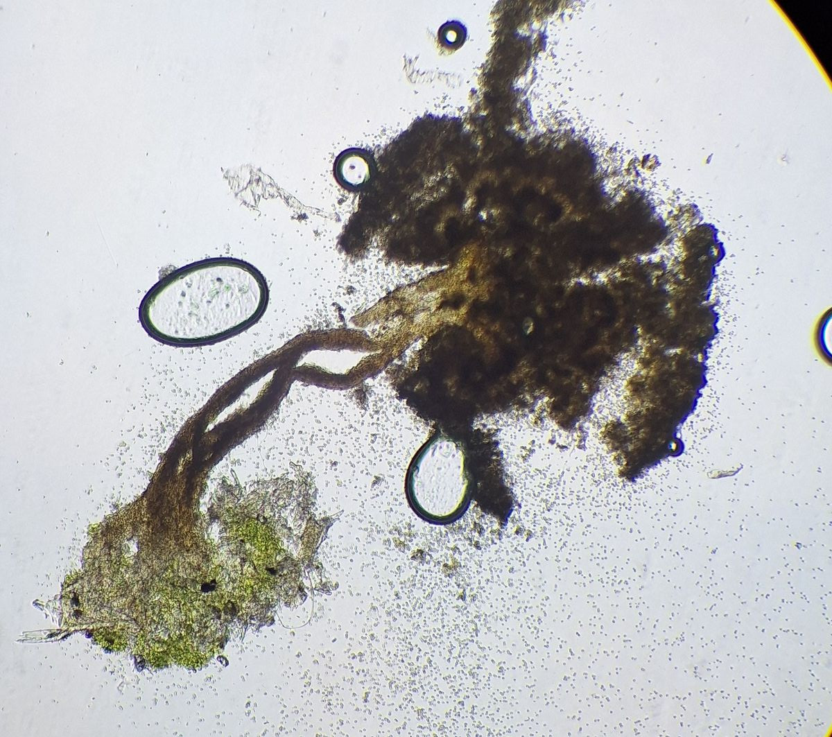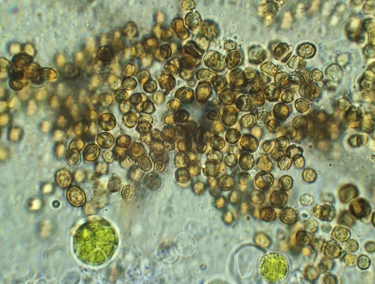 Weiterhin keine stabförmigen Algen. Die Form der Sporen kann man zwar mit etwas gutem Willen auch als überwiegend elliptisch bezeichnen - denn wo gibt es in der belebten Natur schon mathematisch perfekte Kreise?