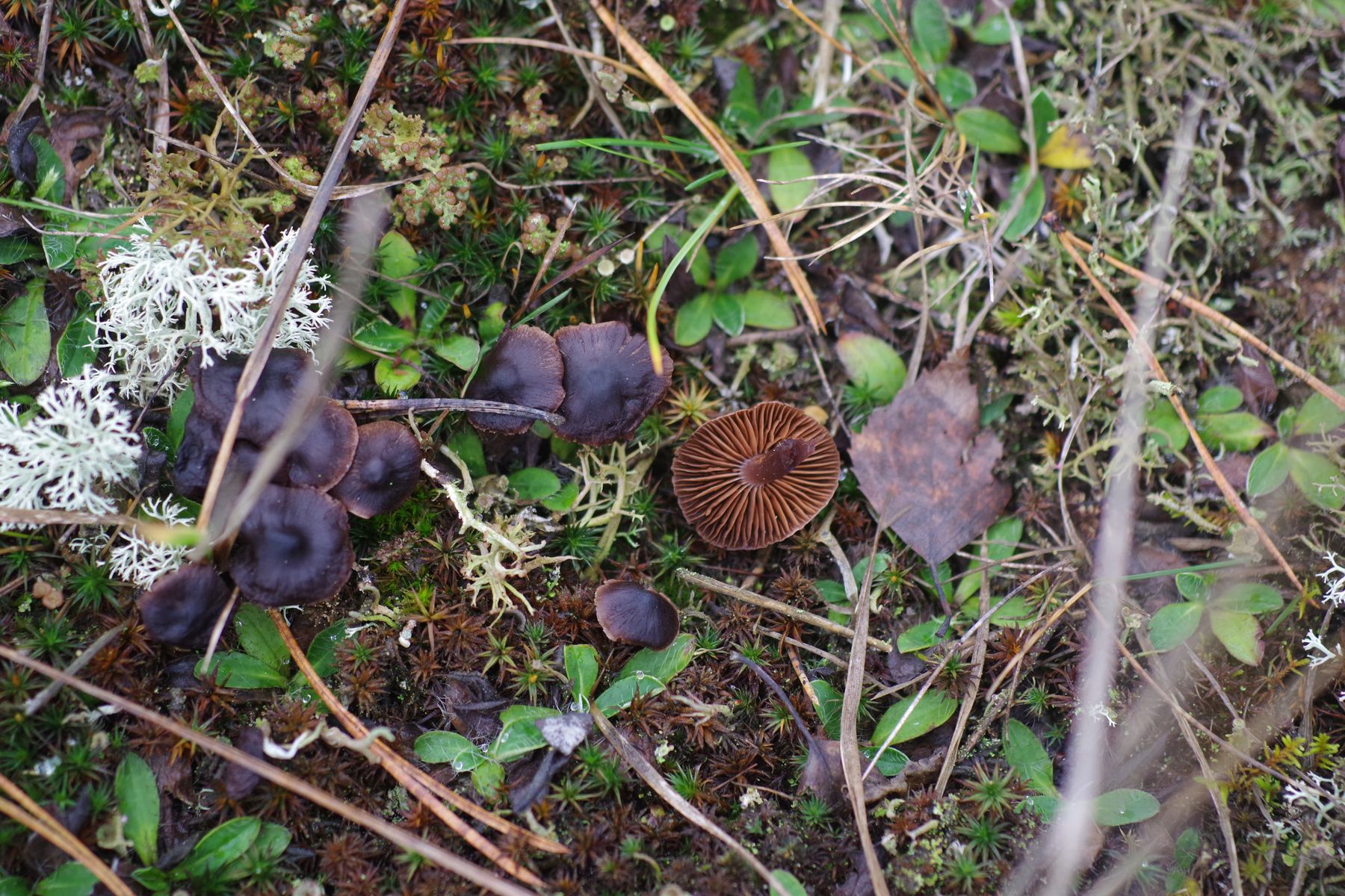 gestern habe ich mir ein dunkelbraunen Lamellenpilz mitgebracht, der nach mal wieder getautem Schnee erstaunlich frisch aussah. Magerer Standort auf Sand, vermutlich etwas kalkhaltig. Als Mykorrhizapartner kommt nur Kiefer in Frage. Wächst in Clustern. Bis 3 cm groß.