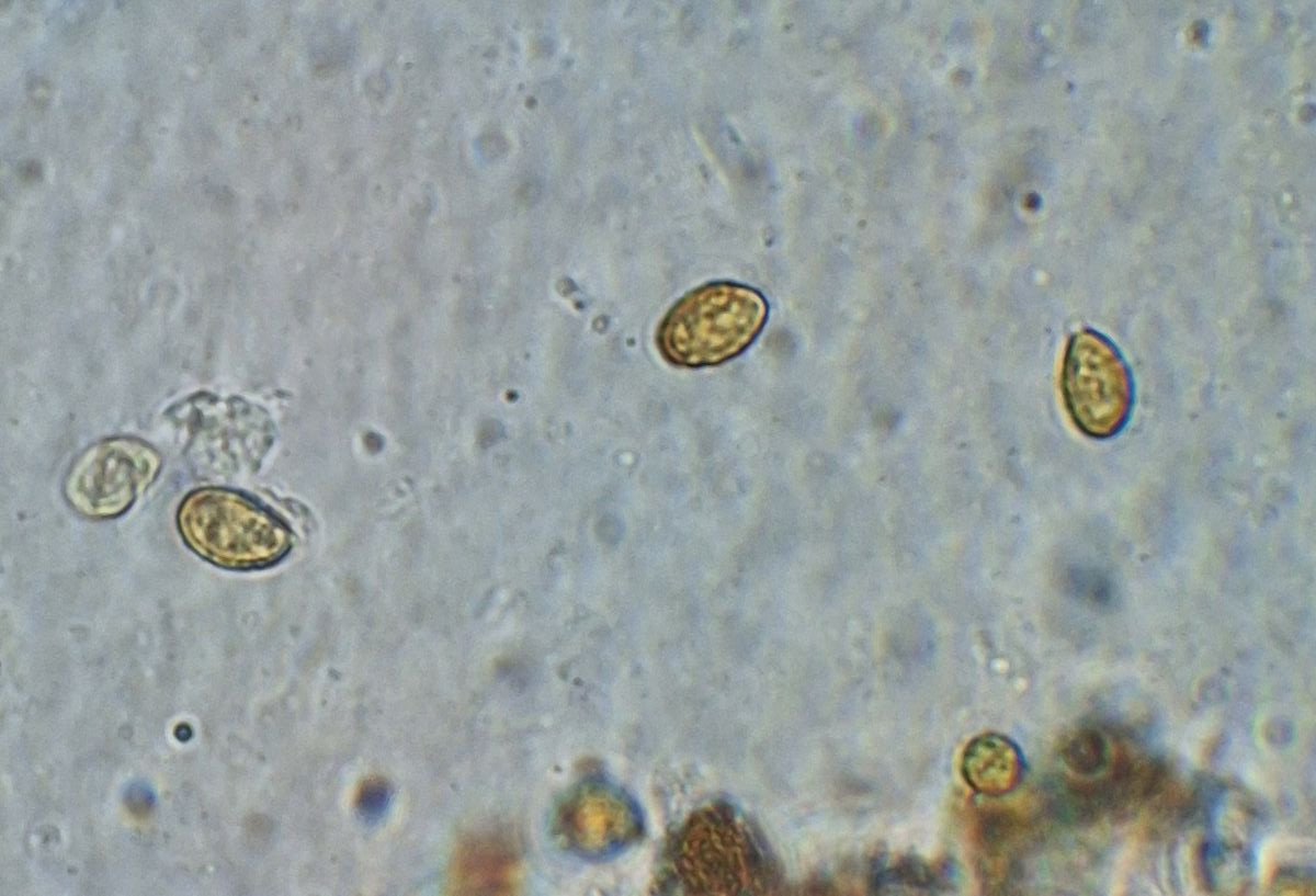Sporen mittig septiert, nicht eingeschnürt, transparent, Asci kaum noch zu sehen,