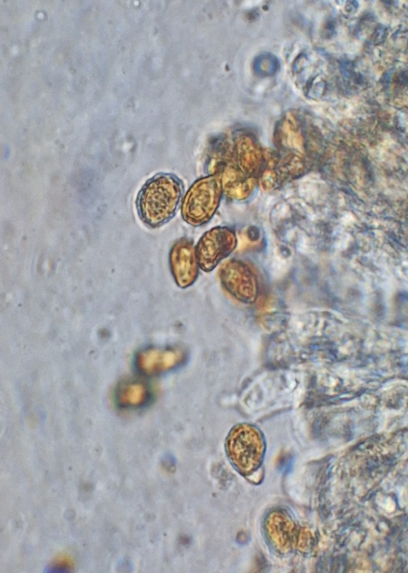 die Sporen sind gelb, feinwarzig, 7-8*5-6 µm groß