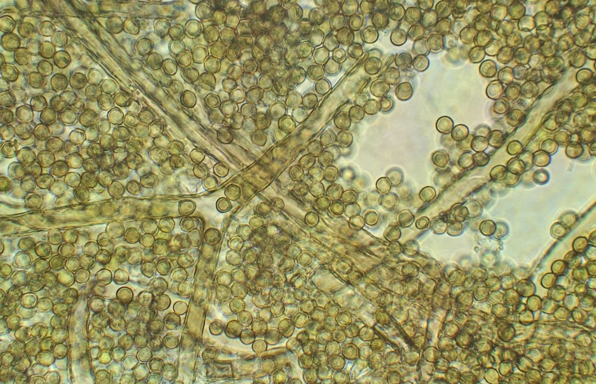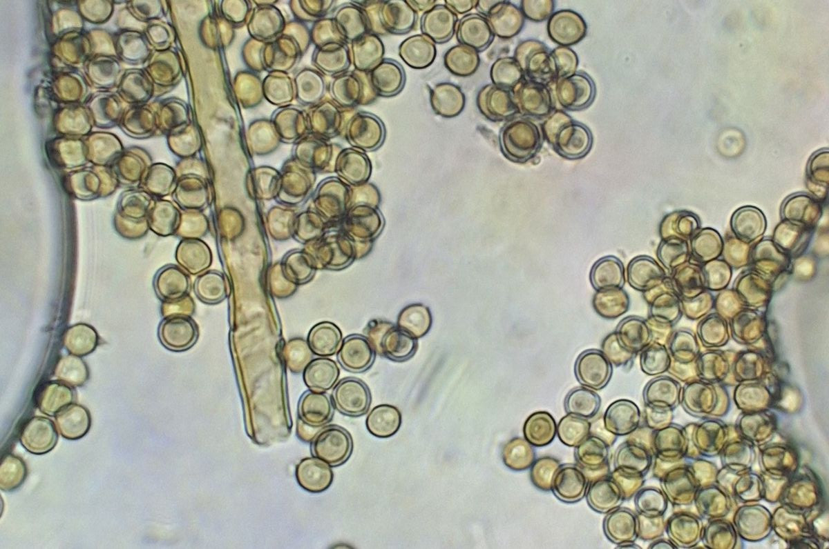 Sporen mit im Vergleich zu B. plumbea kürzeren Sterigmenresten, ~6 µm groß, feinwarzig oder rauhe Oberfläche