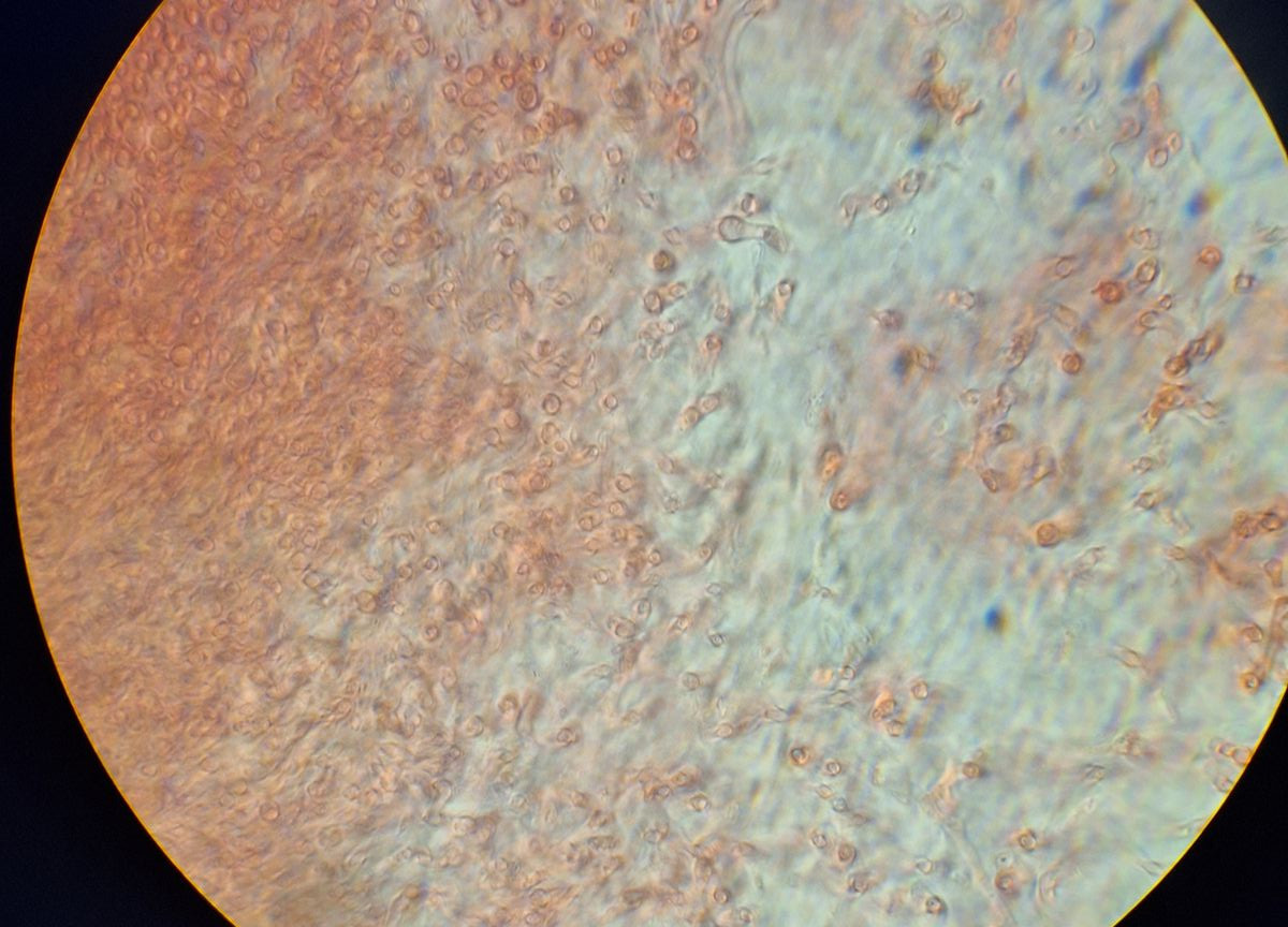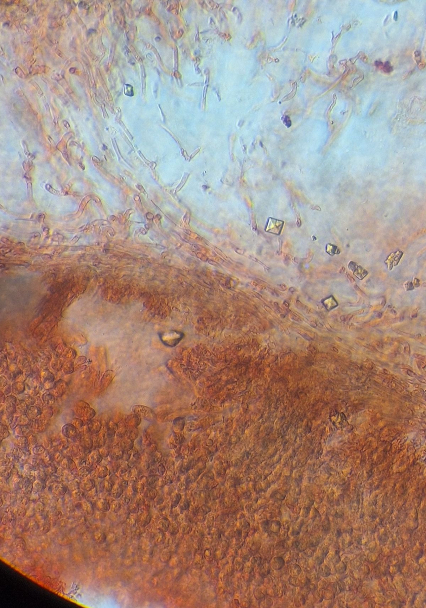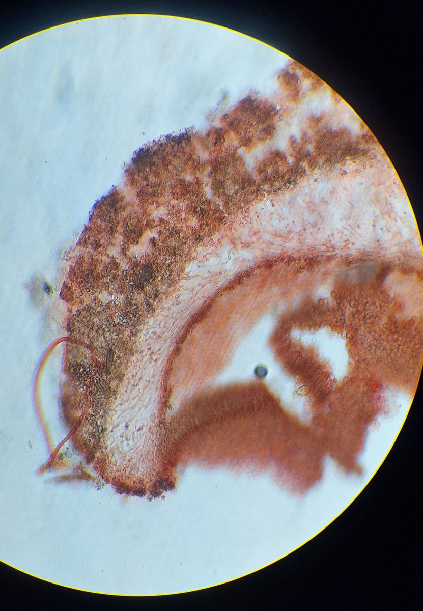 Auf meinem Präparat sehe ich davon zwar nichts, offensichtlich keine Lamellenkante erwischt. Dafür gibt es irgendwelche kleinen Spitzen, teilweise verzweigt.