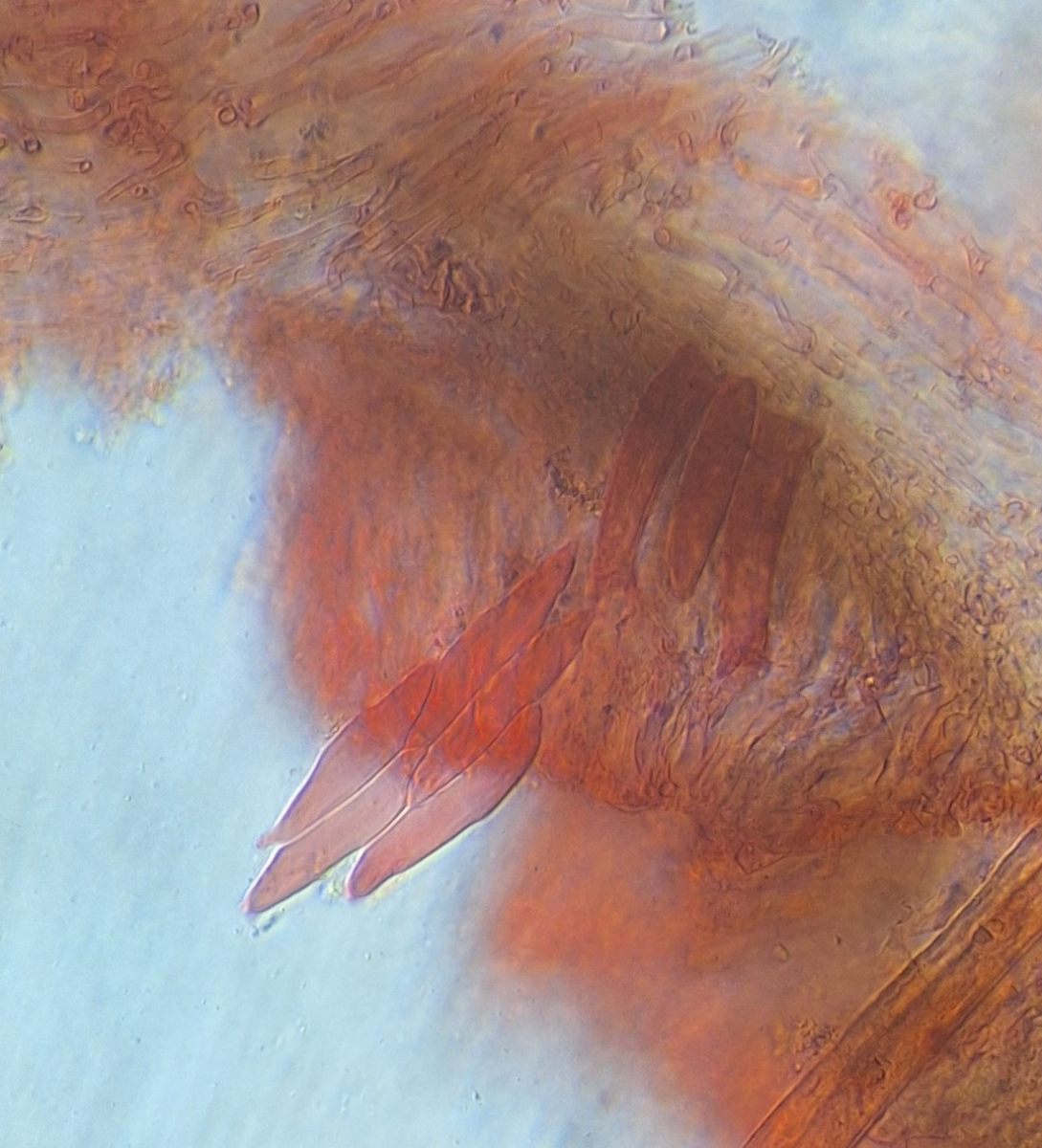 Die Sporen sind 4 bis 9 eckig, variabel. Gemessen habe ich nur welche, wo der Apikulus zu sehen ist, die sind 9-11,5 * 6,5-8,5 µm groß, Q ~1,3...1,4.