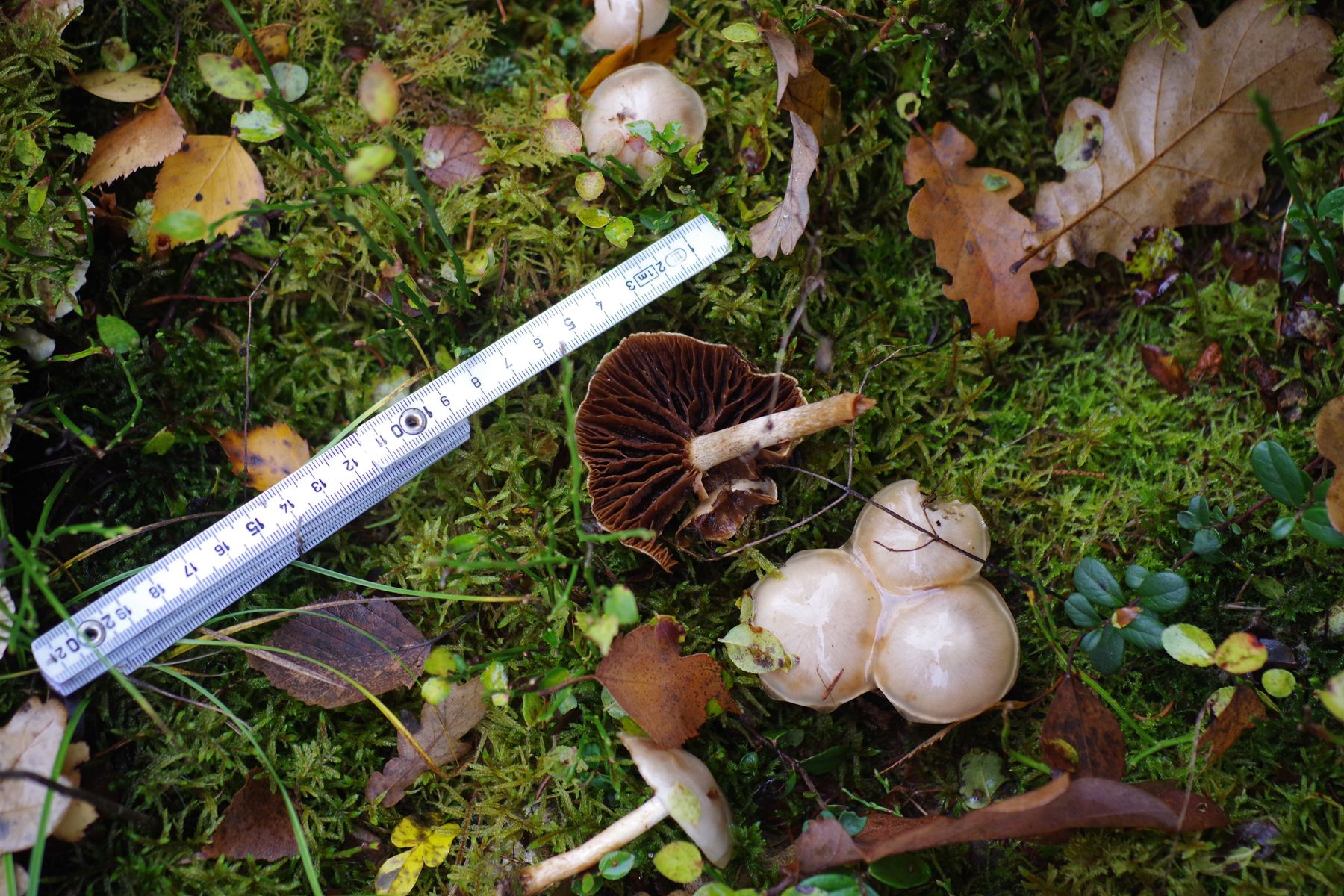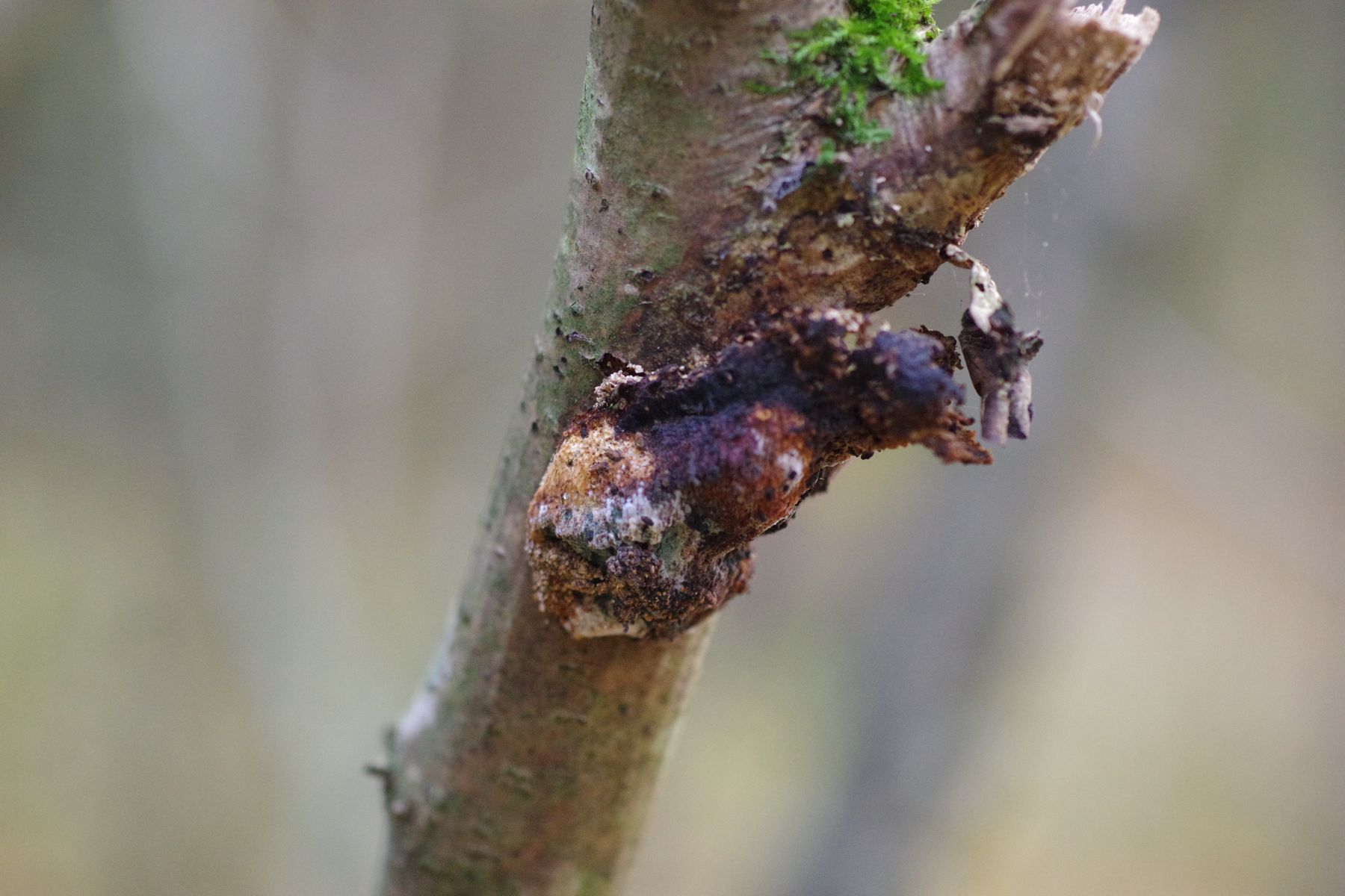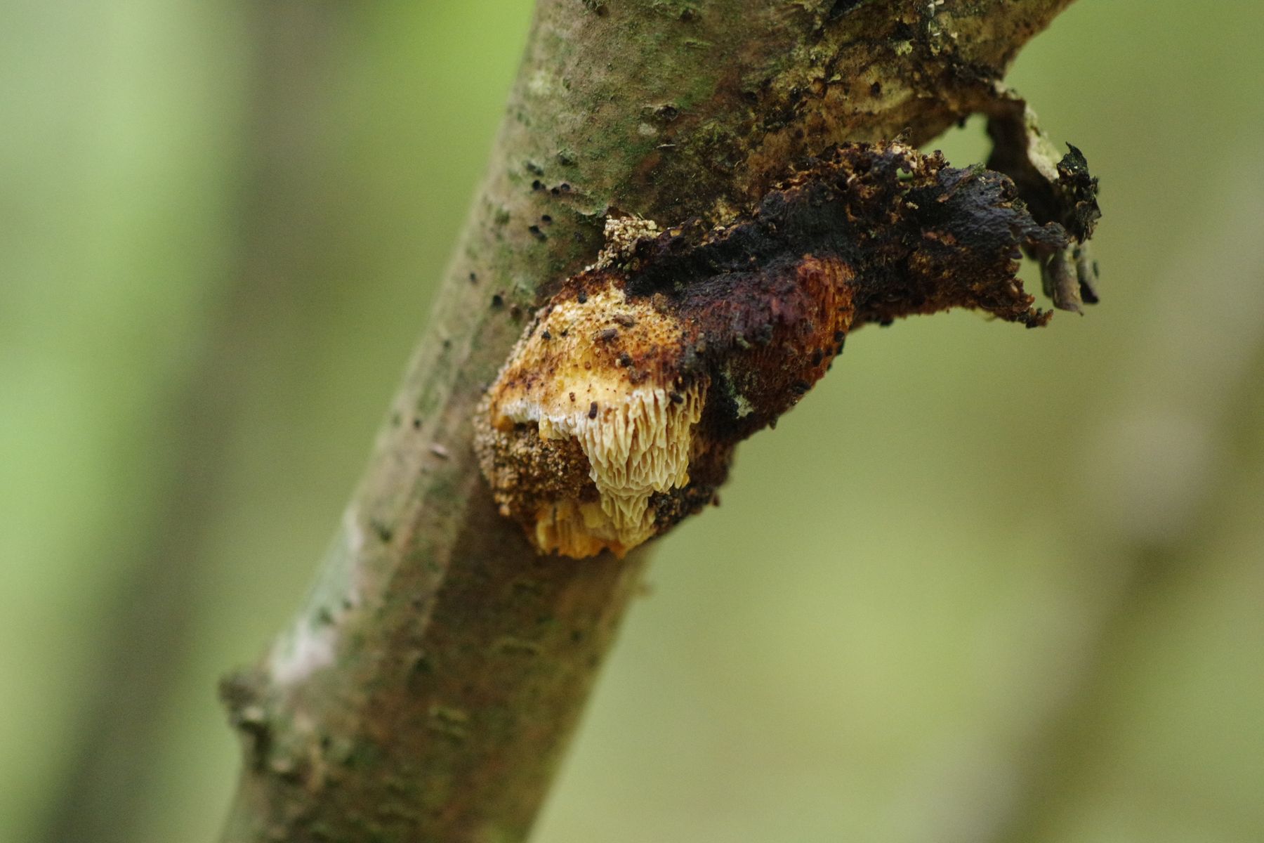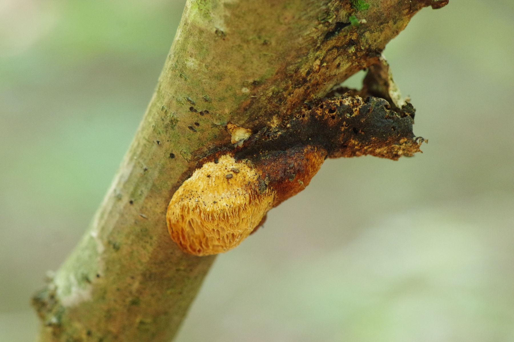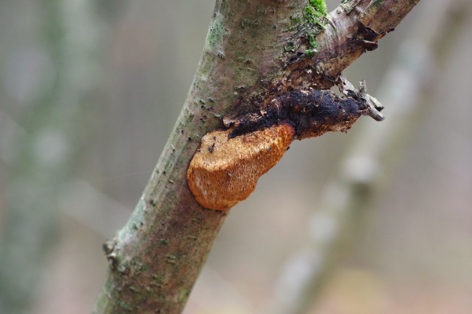 gestern konnte ich auf einer bemoosten, liegenden Esche eine Peltigera finden, die sich deutlich von der gleich daneben befindlichen P. praetextata unterschied. Die Lappen nur etwa halb so groß, keine Isidien auf der Oberfläche, keine Apothecien trotz erheblicher Ausdehnung, Knubbel an den Lappenkanten, die ich als Bortensorale ansehe. allerdings sind die nicht grau, wie in der Literatur meist angegeben und auch nicht durchgehend. Unterseits sind die Adern erkennbar, aber nicht sehr erhaben und ockerfarben. Die Rhizinen sind einfach, bis 4...5 mm lang.