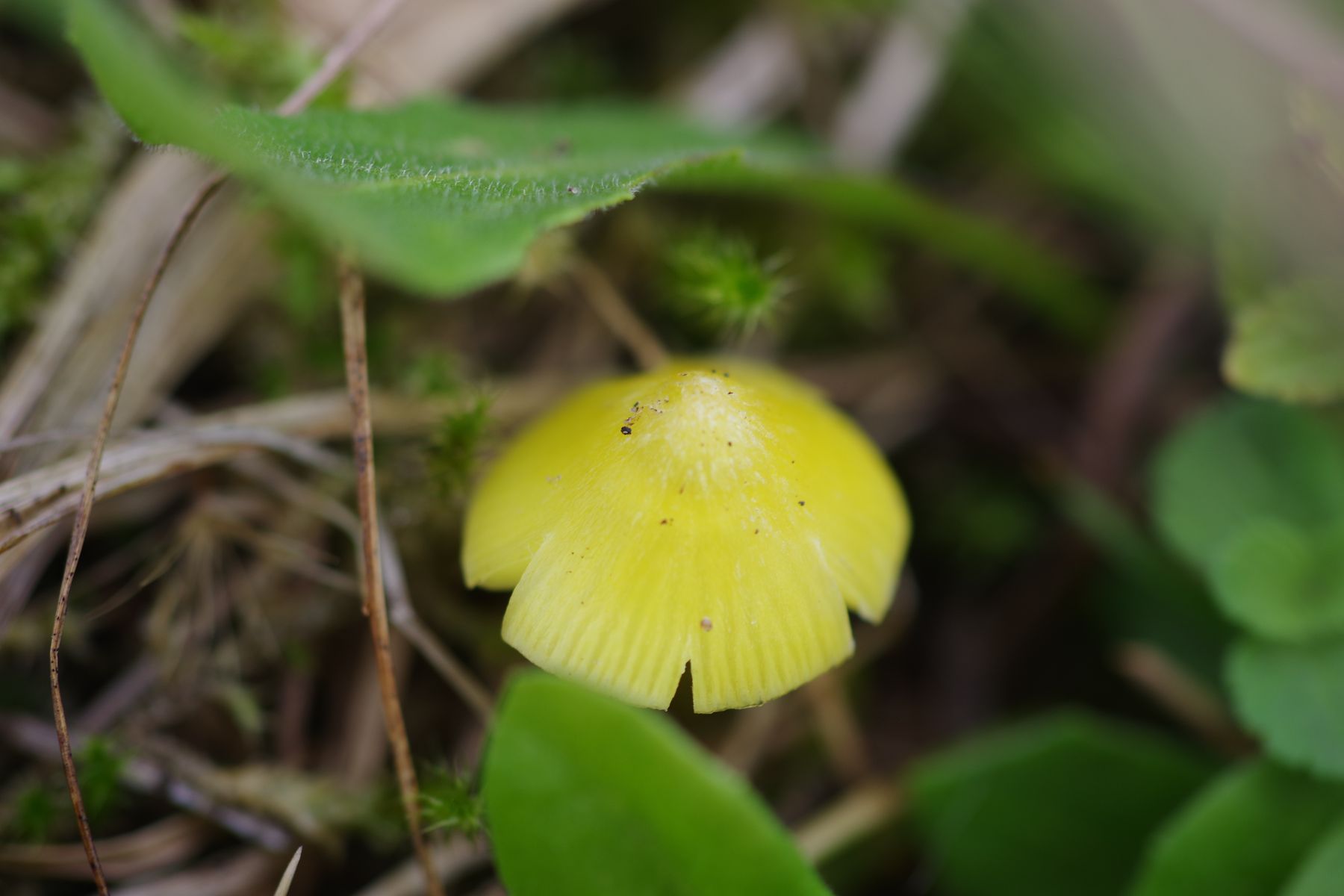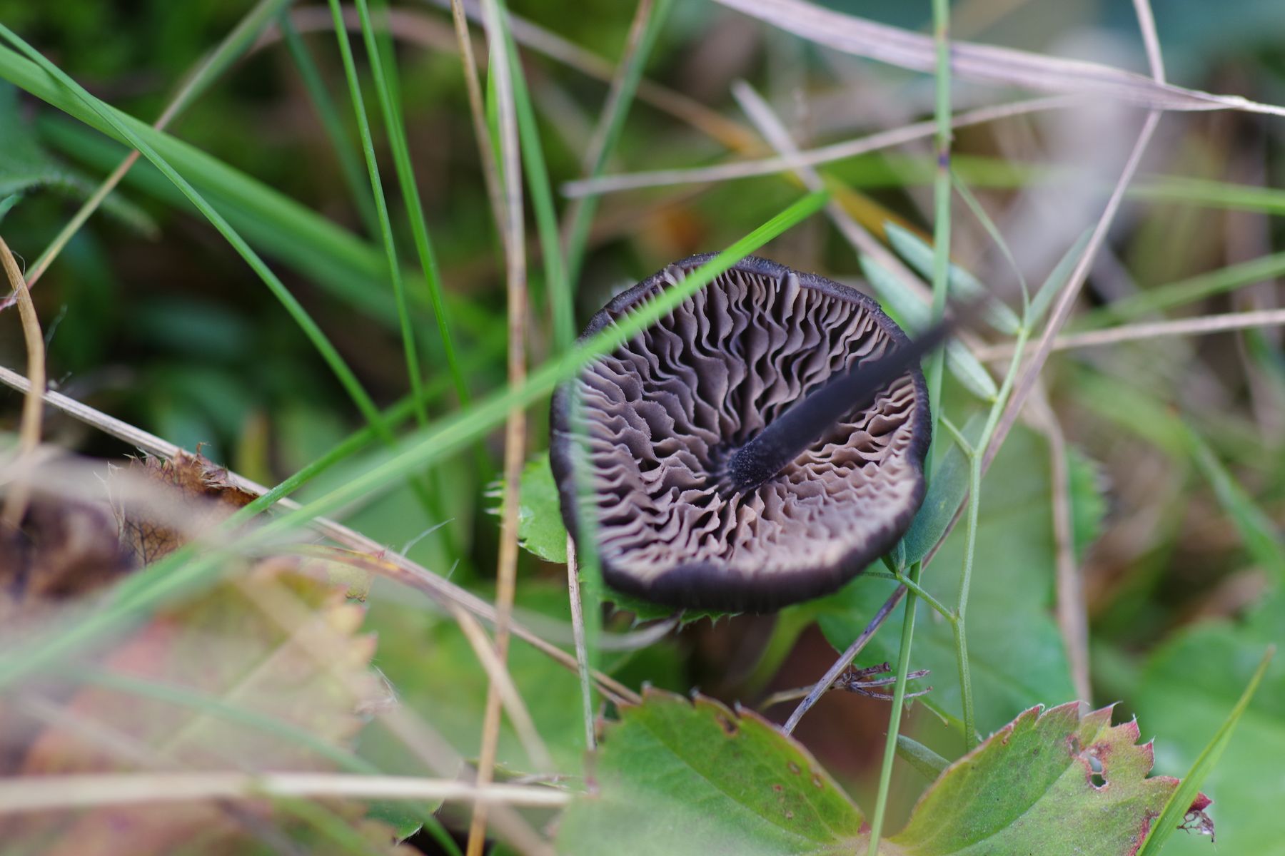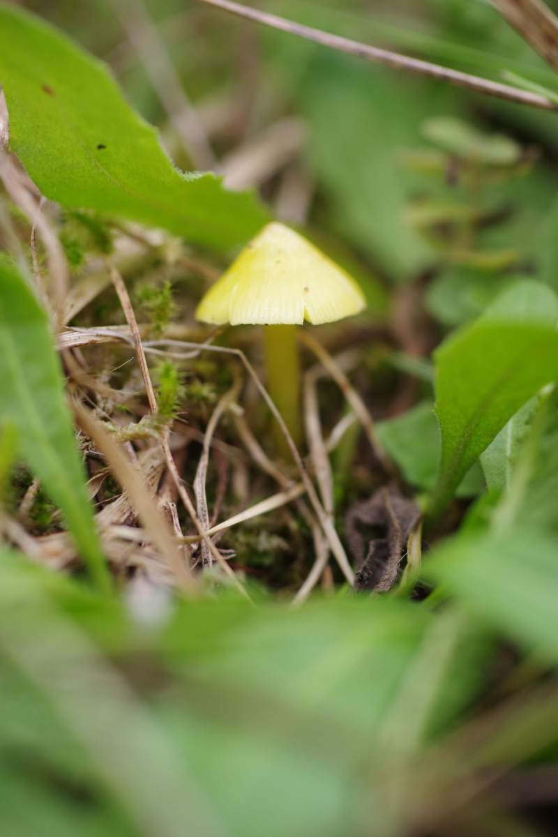 2) dann ein ziemlich großer Saftling, der aussieht, als ob er schwärzen müsste, stattdessen aber heller wird, 1 älteres Exemplar, die kleinen Gelben mit dem sehr langen&spitzen Hut gehören vielleicht dazu