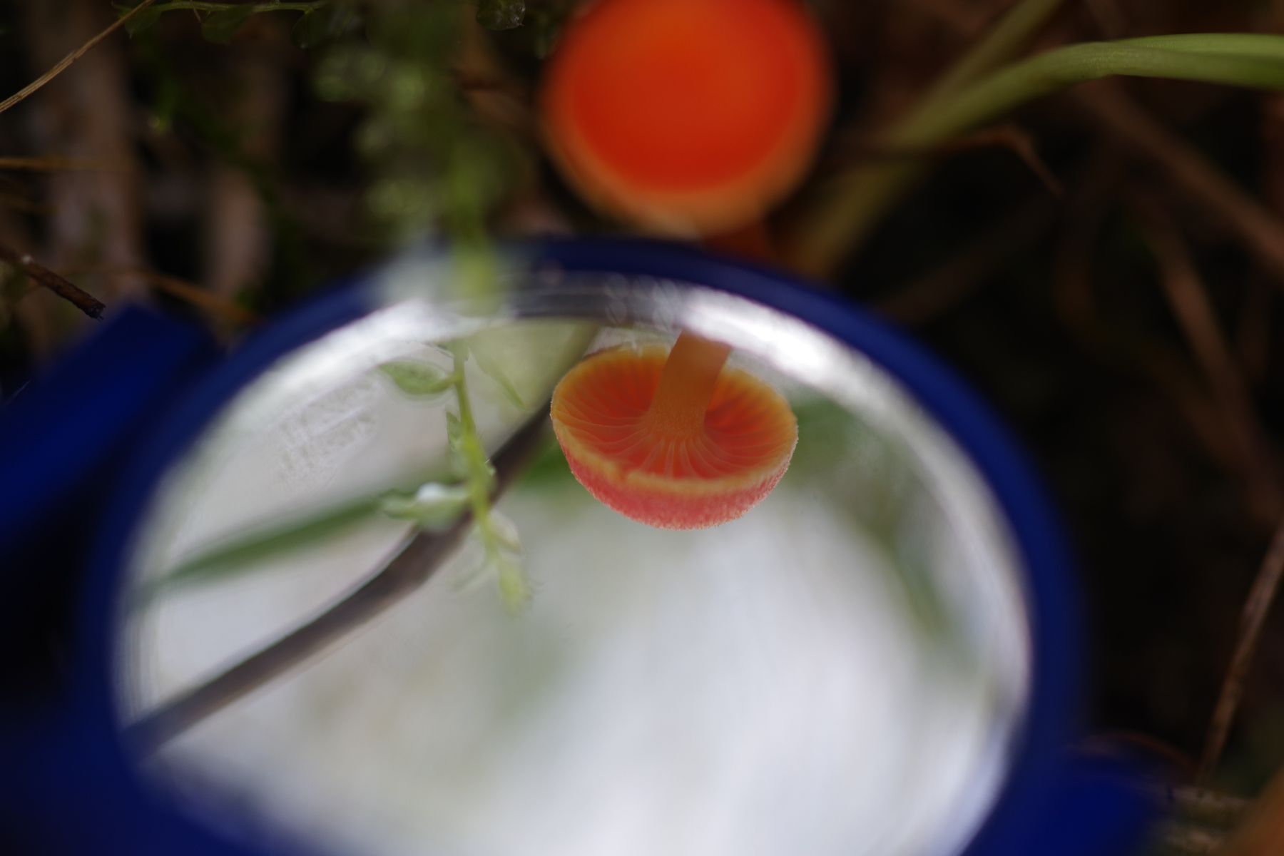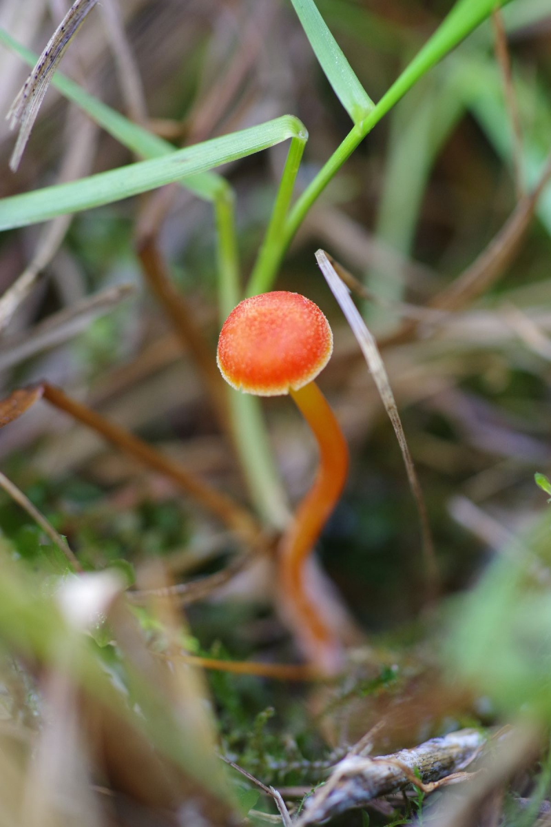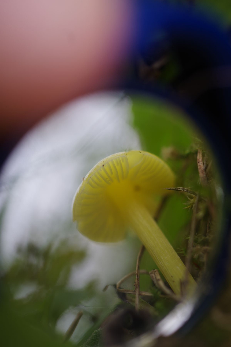 1) eine gestielte sehr schlanke sattgelbe Keule, vielleicht in Richtung Clavaria flavipes oder Clavaria flavostellifera, die 2015 beschrieben wurde. Die scheinen erst zu kommen, aktuell sehr winzig und schwer ranzukommen, ohne die zu beschädigen. Beim nächsten Termin muss die Pinzette mit.
