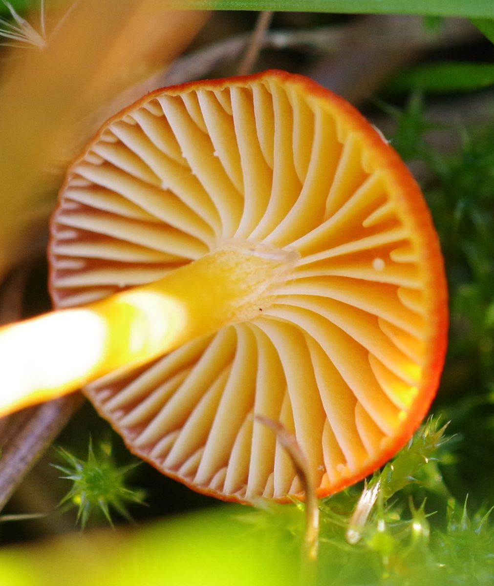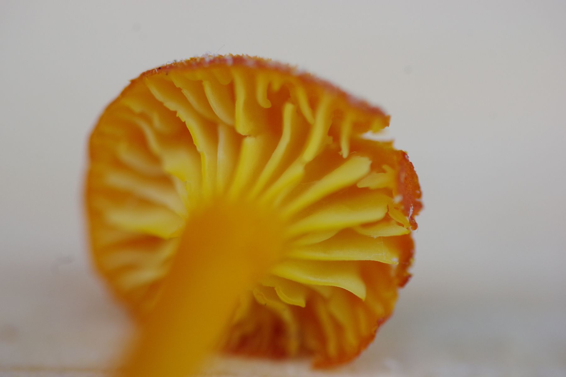 3) kleiner Saftling mit orangen, herablaufenden Lamellen