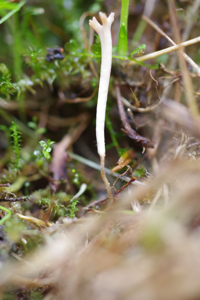 1) eine kleine weiße Keulenkoralle, vermutlich irgendwas aus dem Umfeld von Ramariopsis subtilis agg.
