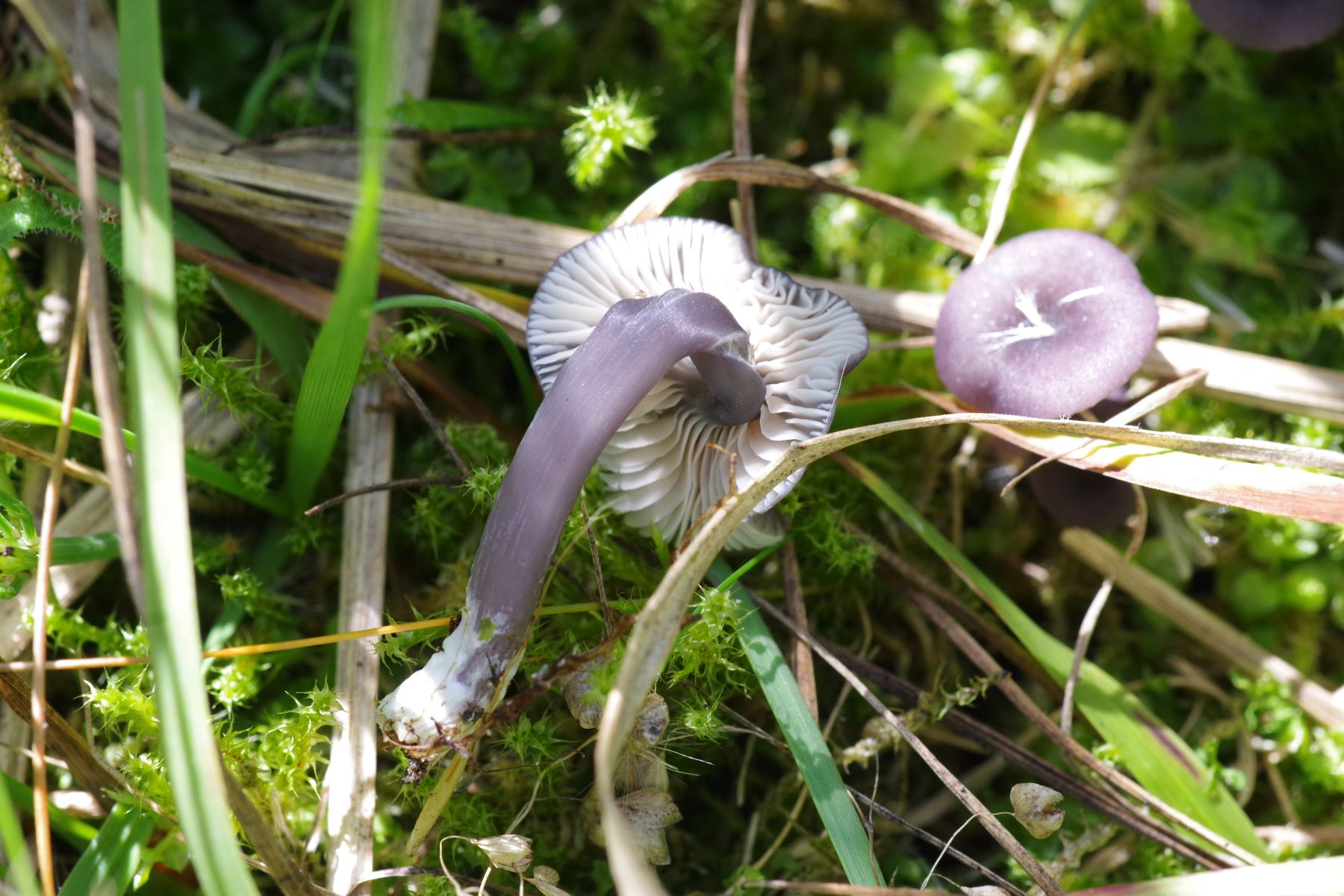 2) blauer (pink-braun) Hut, glatt, nicht schuppig (deswegen meine ich, dass es kein E. mougeotii ist), weiße Lamellen ohne bunte Kante, blauer Stiel