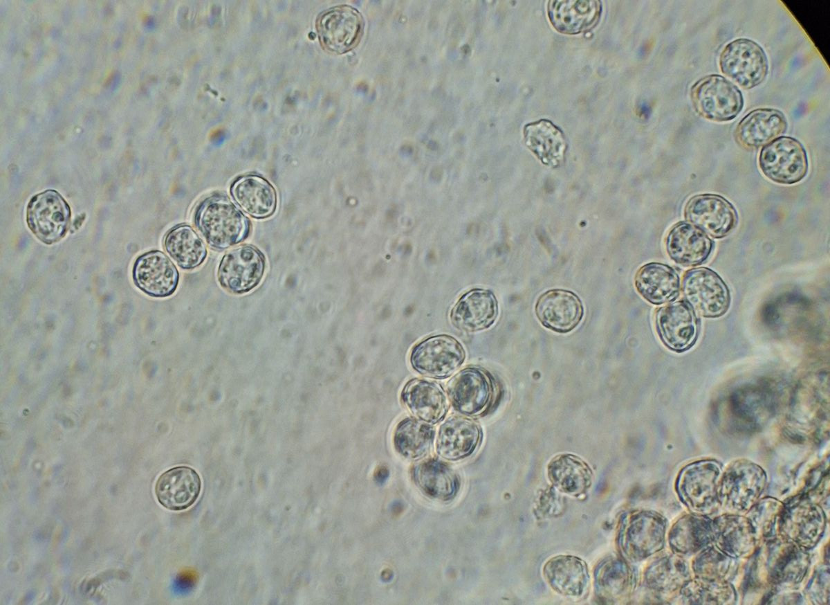 Mit unseptierten Sporen kann man eine ganze Menge Arten ausschließen und es kommen nicht mehr so arg viele in Frage [neben eventuell unbeschriebenen natürlich].