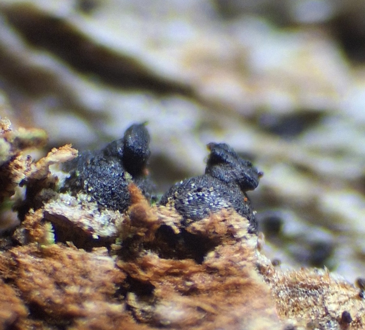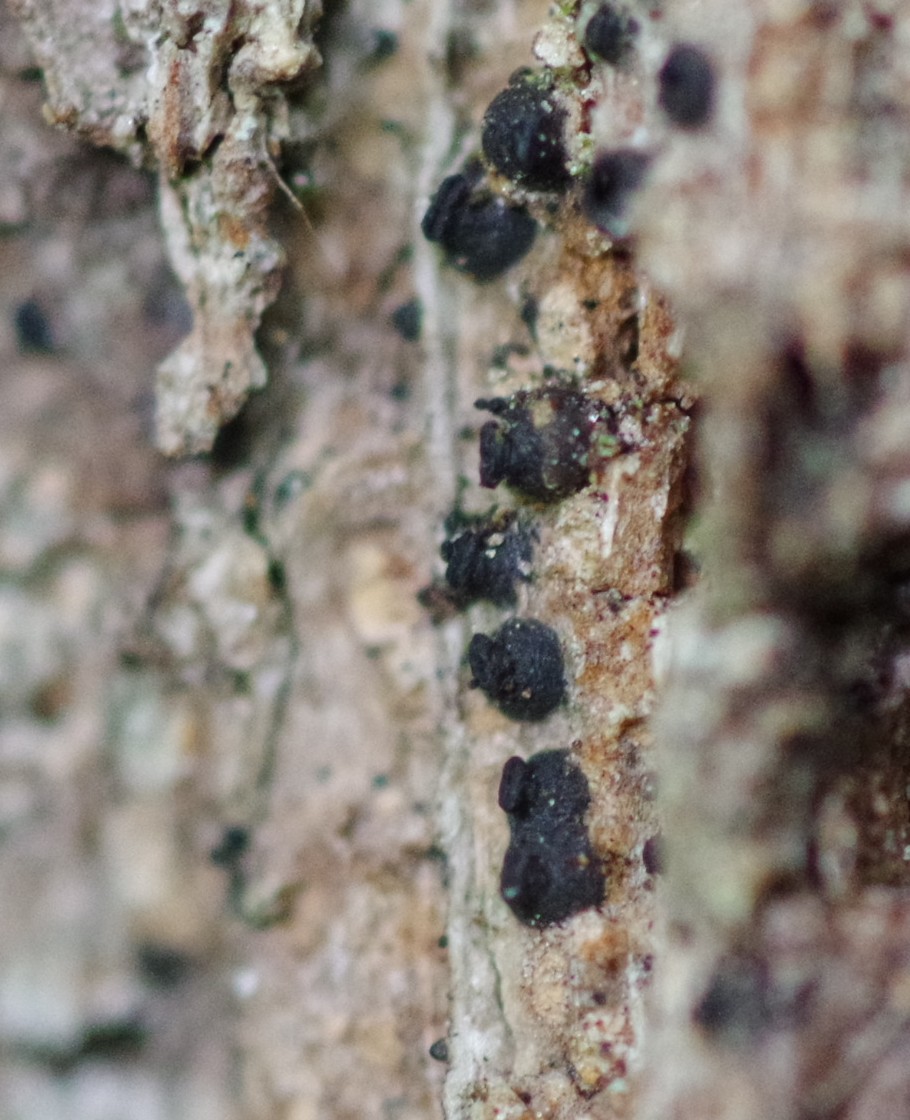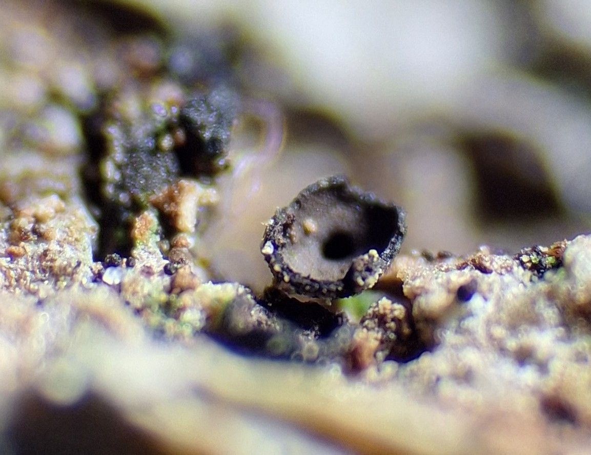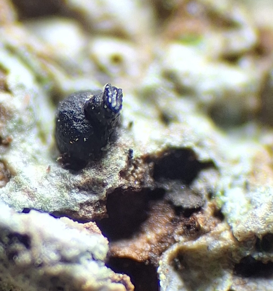 Also Chaenothecopsis. Und da hat man das Problem, dass es kaum Bildmaterial zum Vergleich gibt, weder makroskopisch, noch mikroskopisch. Was darauf hindeutet, dass die allesamt selten gefunden werden und dass alle Angaben zu Habit und Biotop auf kleinen Stichproben beruhen und damit offen für Interpretation sind.