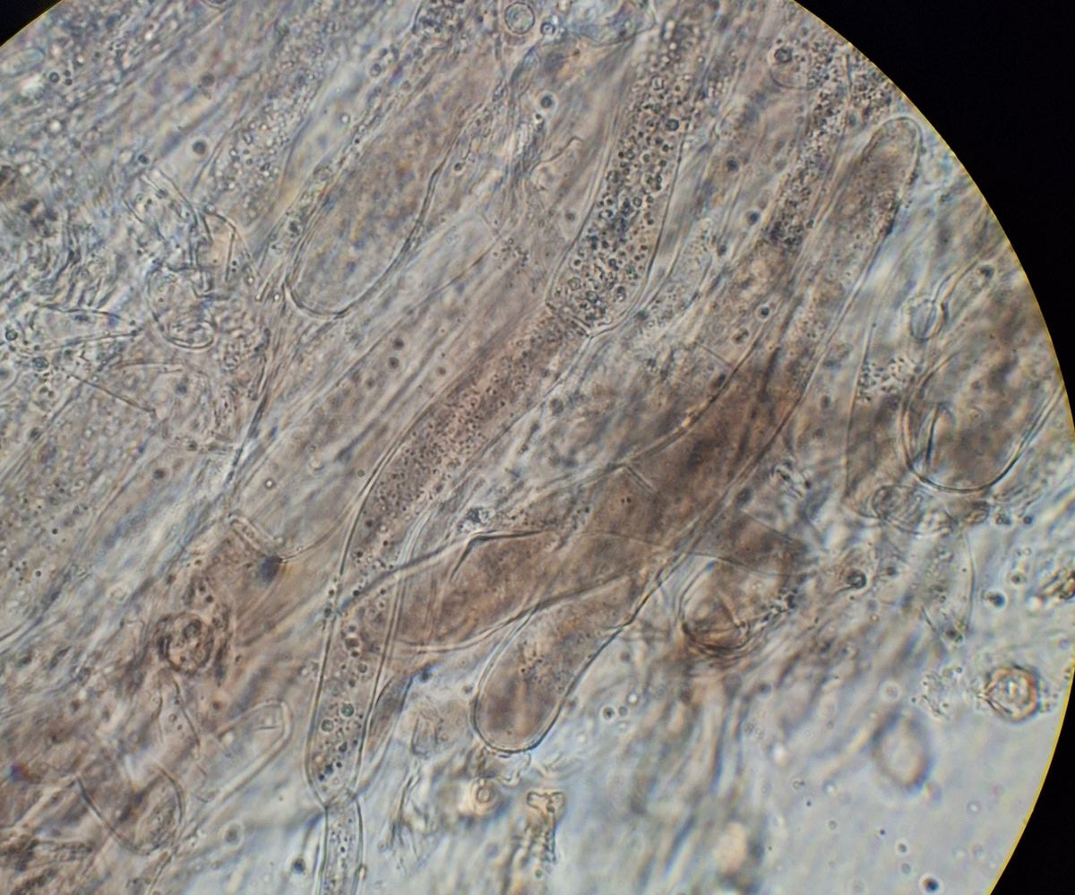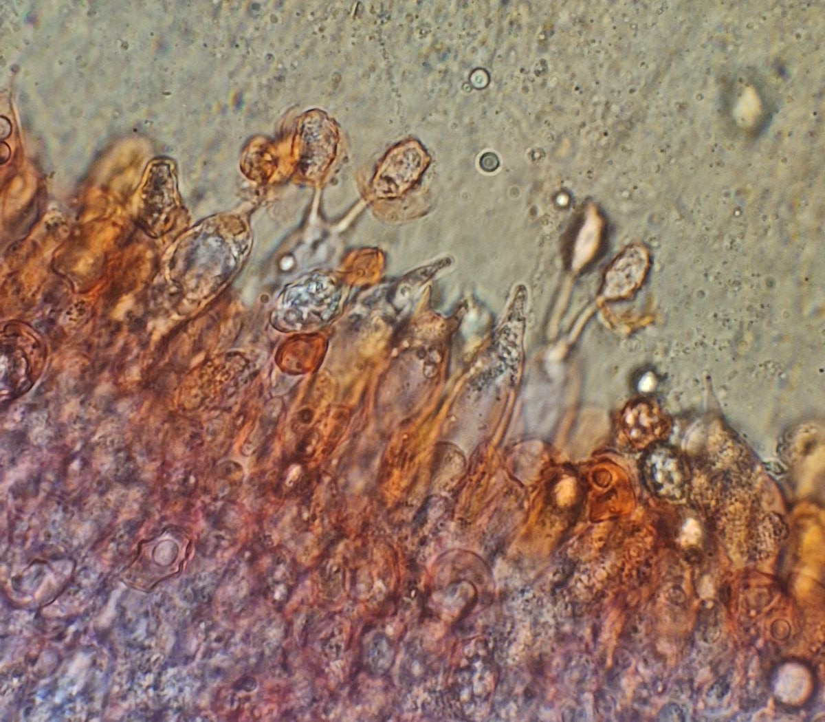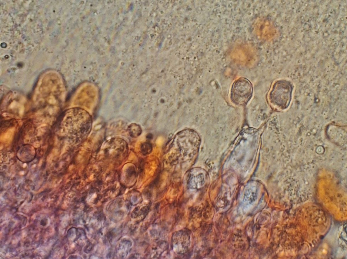 Basidien selten 4-sporig, vielfach 2-sporig und 3-sporig [das scheint es auch zu geben] -