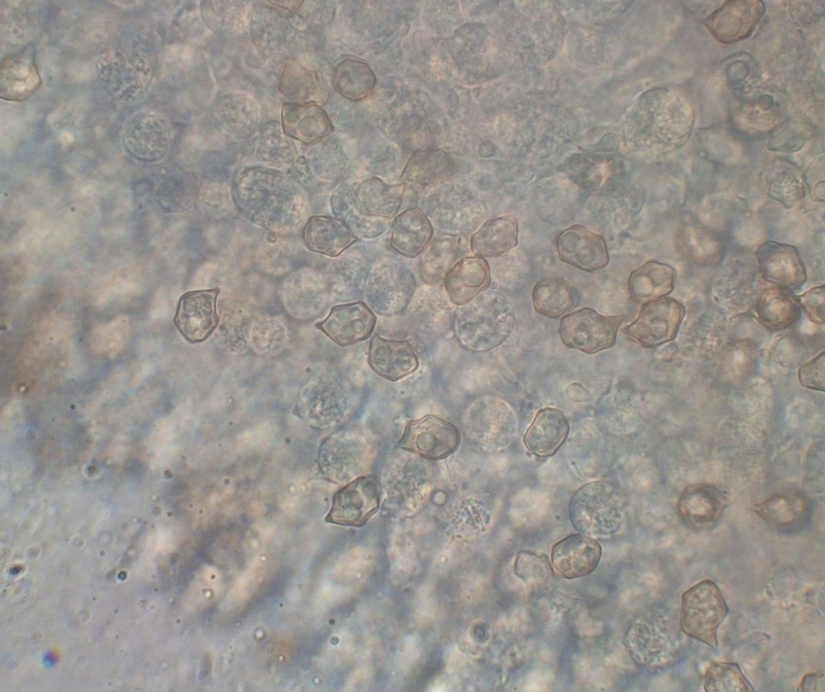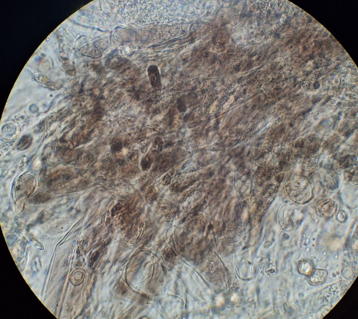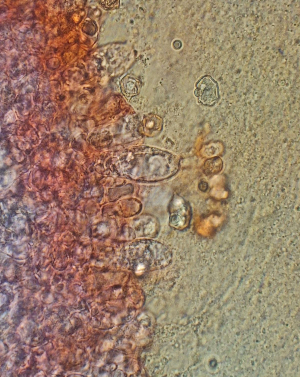 Basidien selten 4-sporig, vielfach 2-sporig und 3-sporig [das scheint es auch zu geben] -