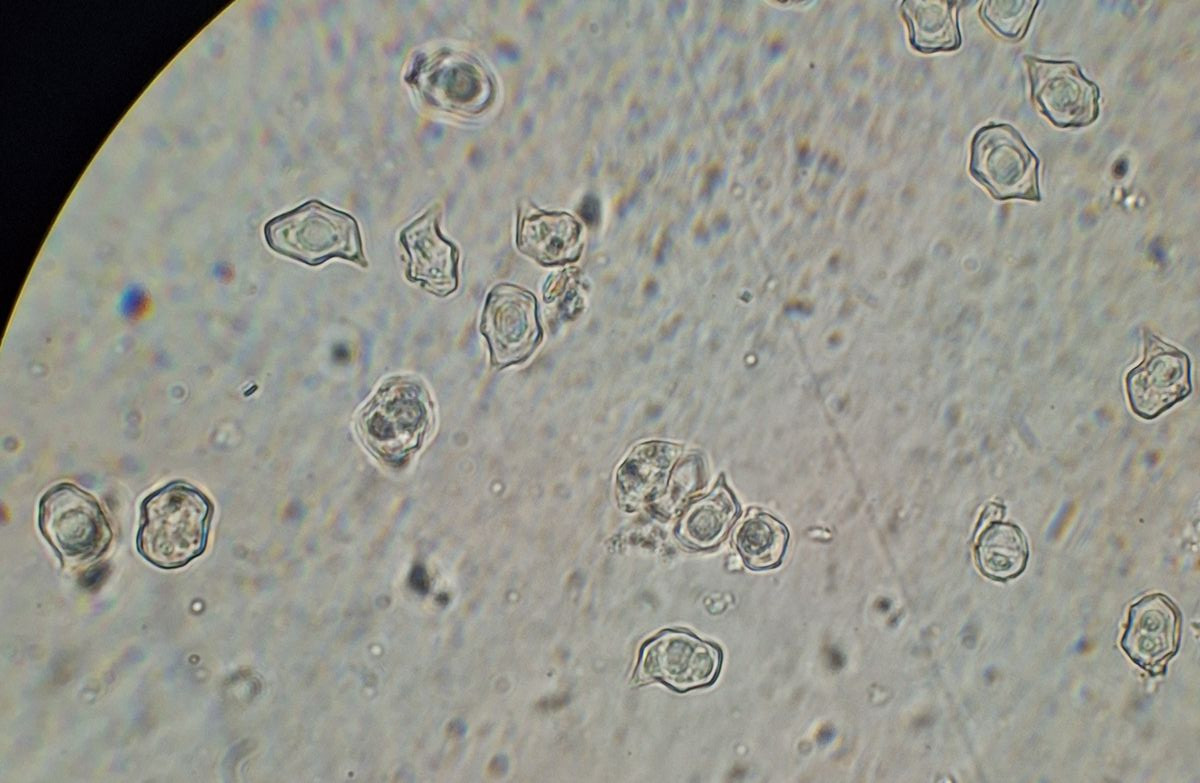 Das interpretiere ich mal dahingehend, dass bei 2-sporigen Basidien größere Sporen ausgebildet werden. Dann stellt sich aber die Frage, wovon es abhängt, welche Basidien ausgebildet werden. Ist das Artspezifisch? Oder von Wachstumsbedingungen abhängig? Dann müsste man bei jeder Kollektion durchzählen, welche Basidien in welcher Menge vorhanden sind und die Größe der Sporen damit in Relation setzen. Bleibt dann der ohnehin geringe Unterschied der Sporengröße zur Arttrennung bestehen?