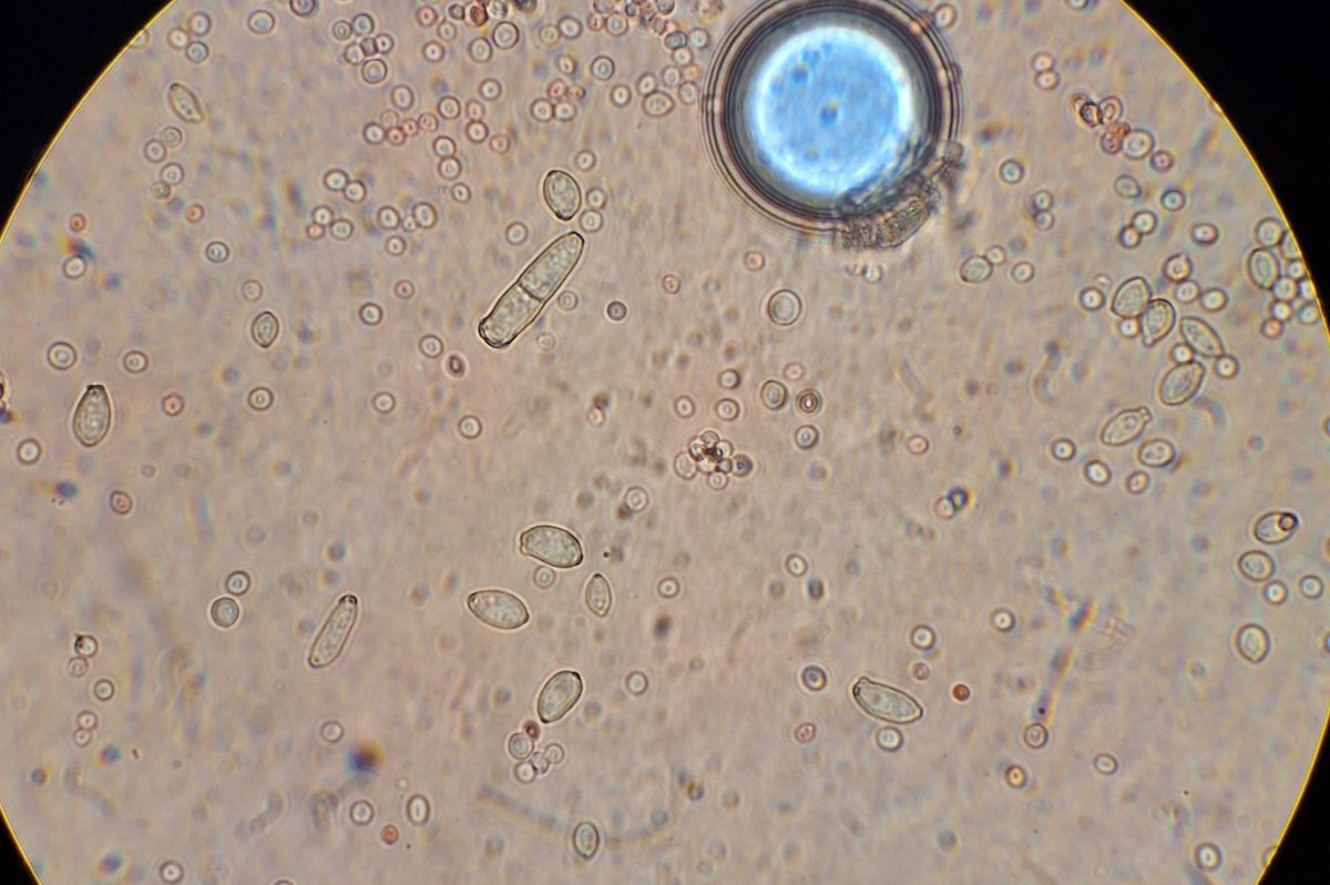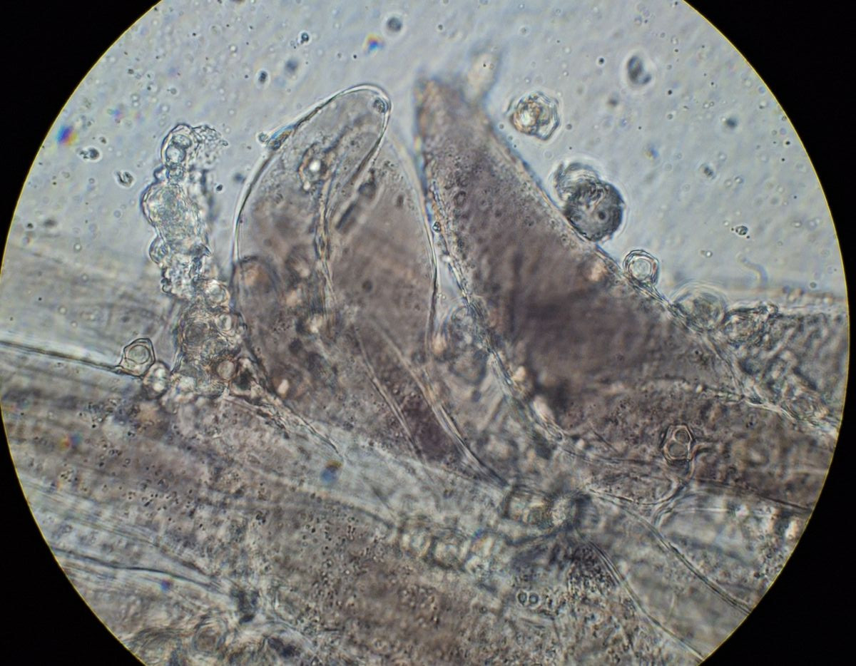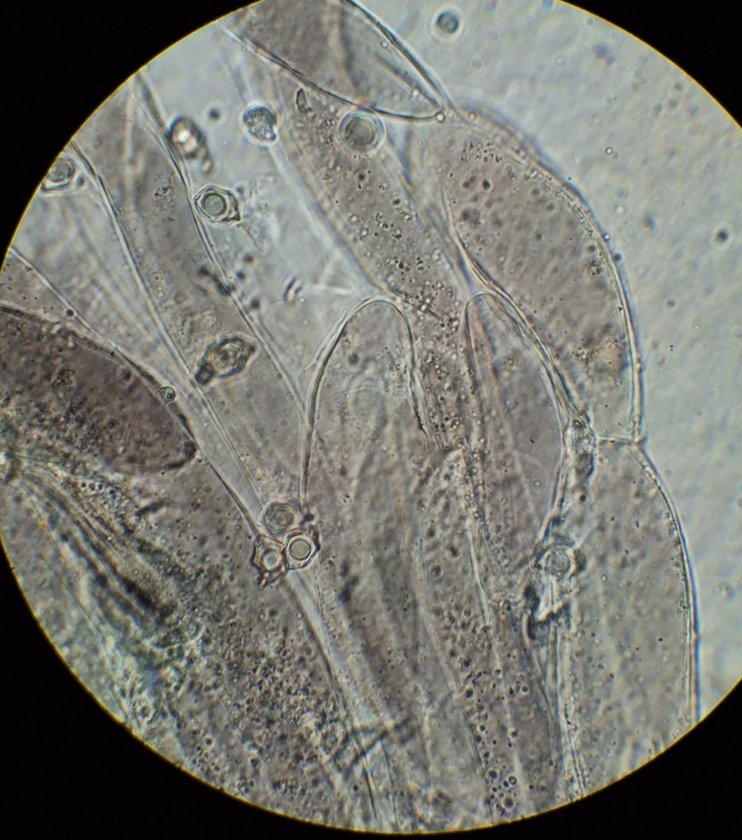 2) zum Vergleich hier Nummer 2 mit 4-sporigen Basidien