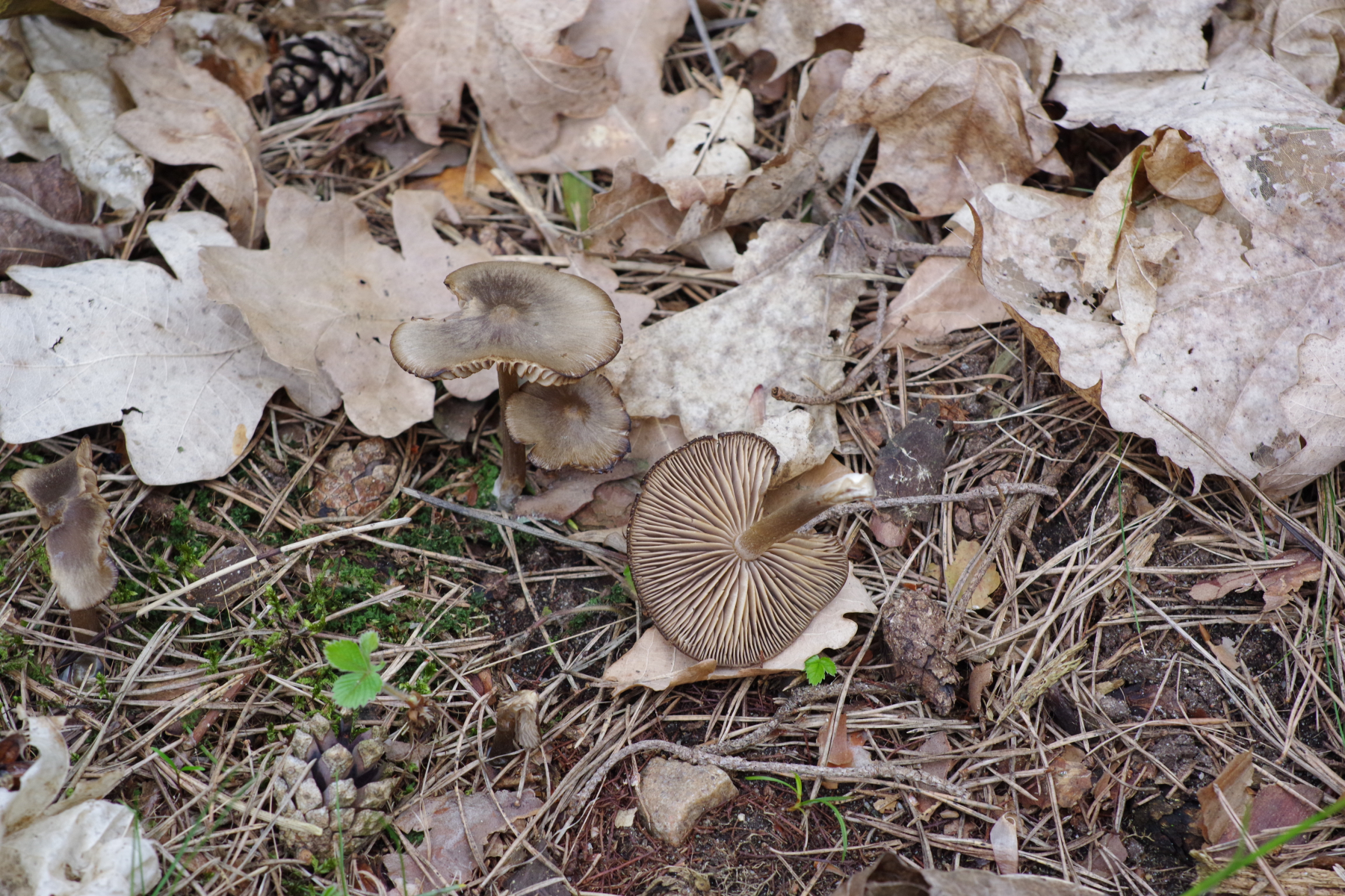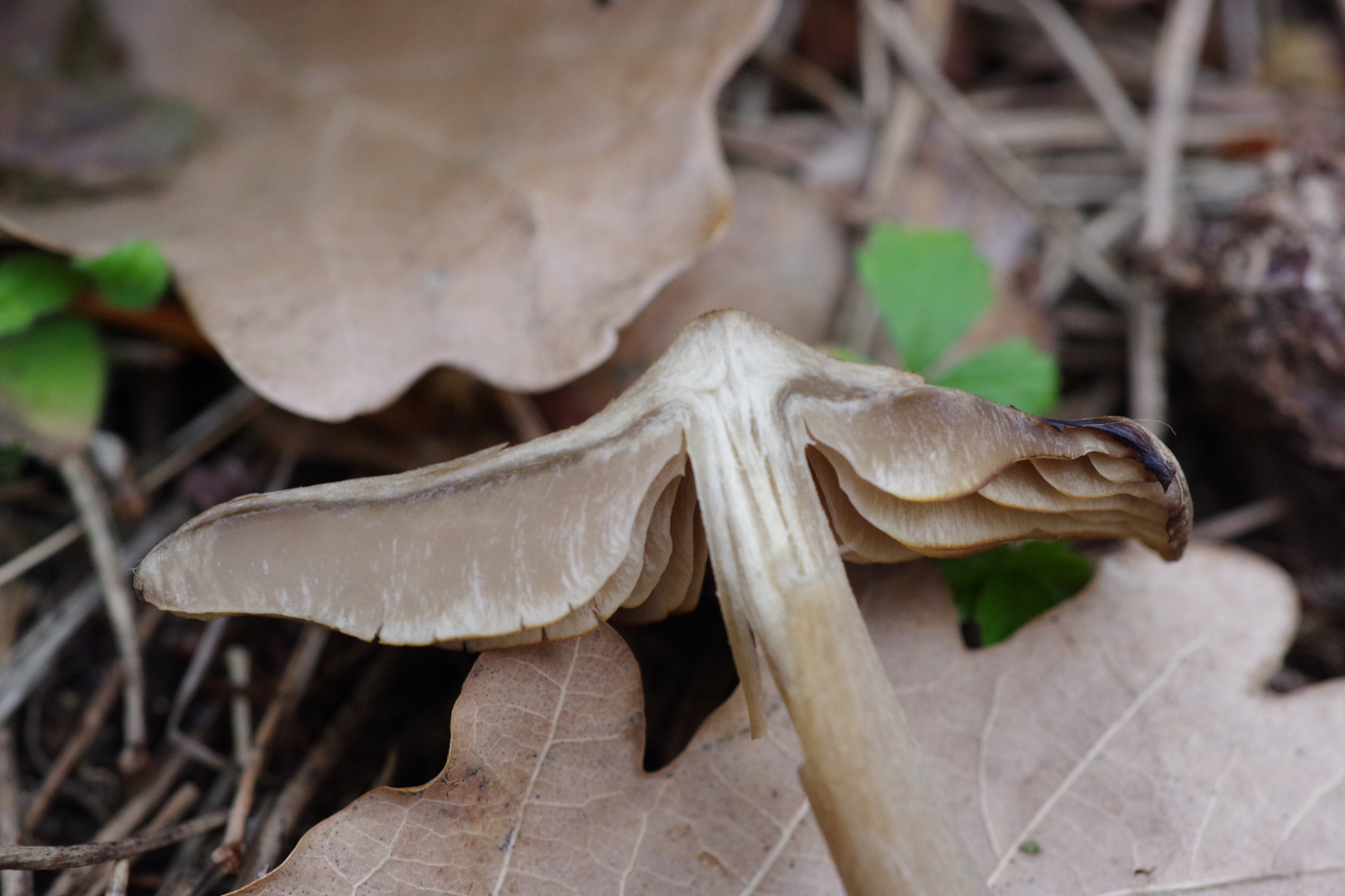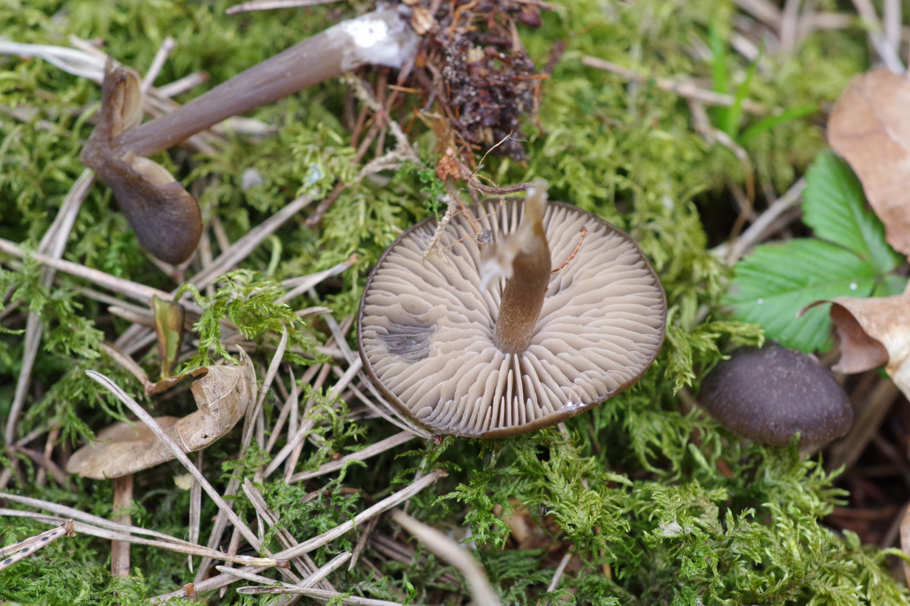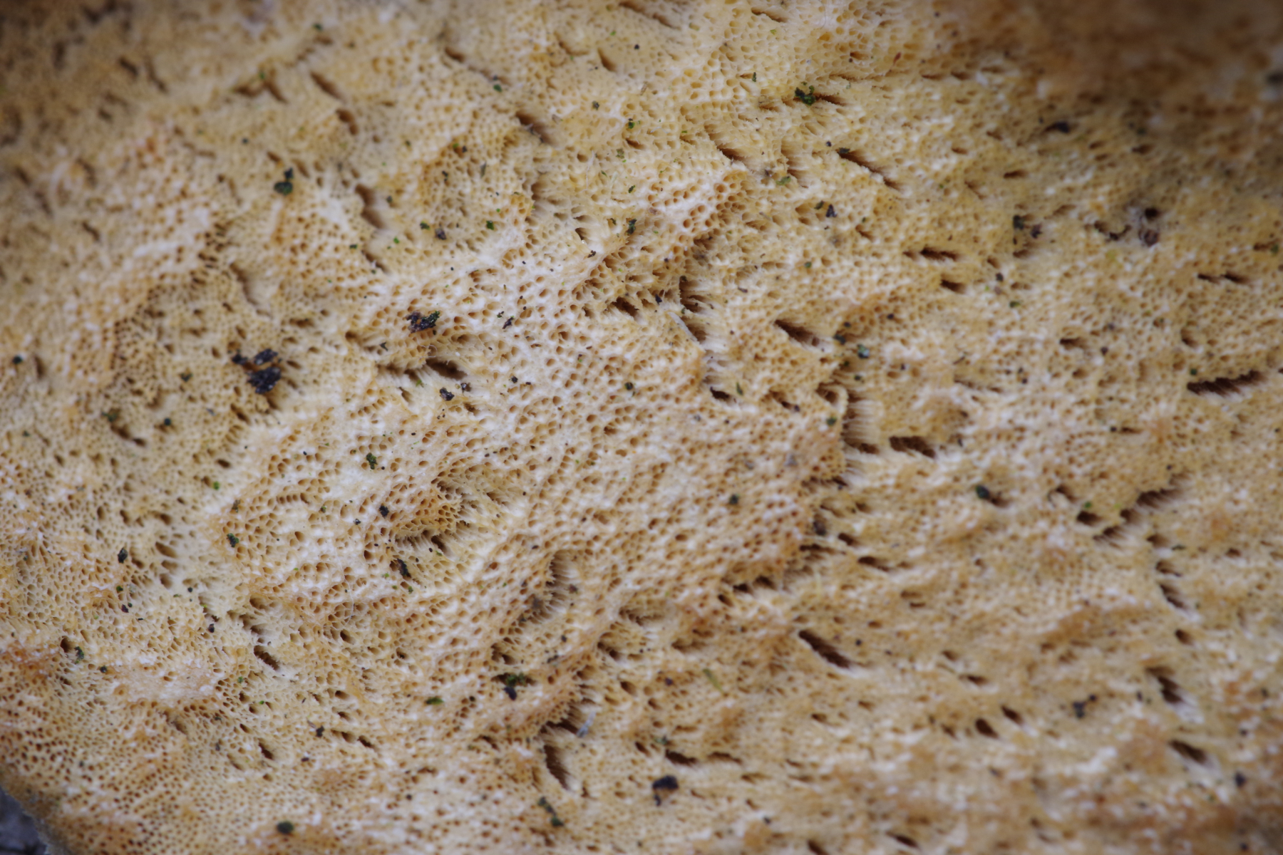 (2c) Ein Polyporus mit schwarzem Stiel, sehr engen Poren und hellem ockerfarbigen Hut, evtl. P. leptocephalus
