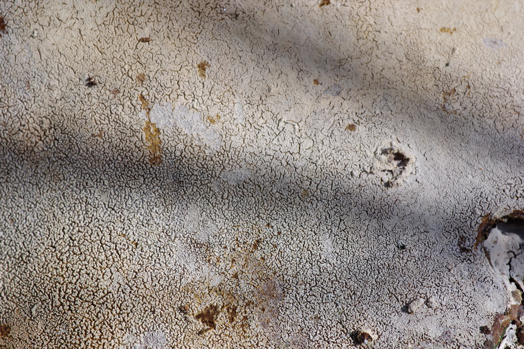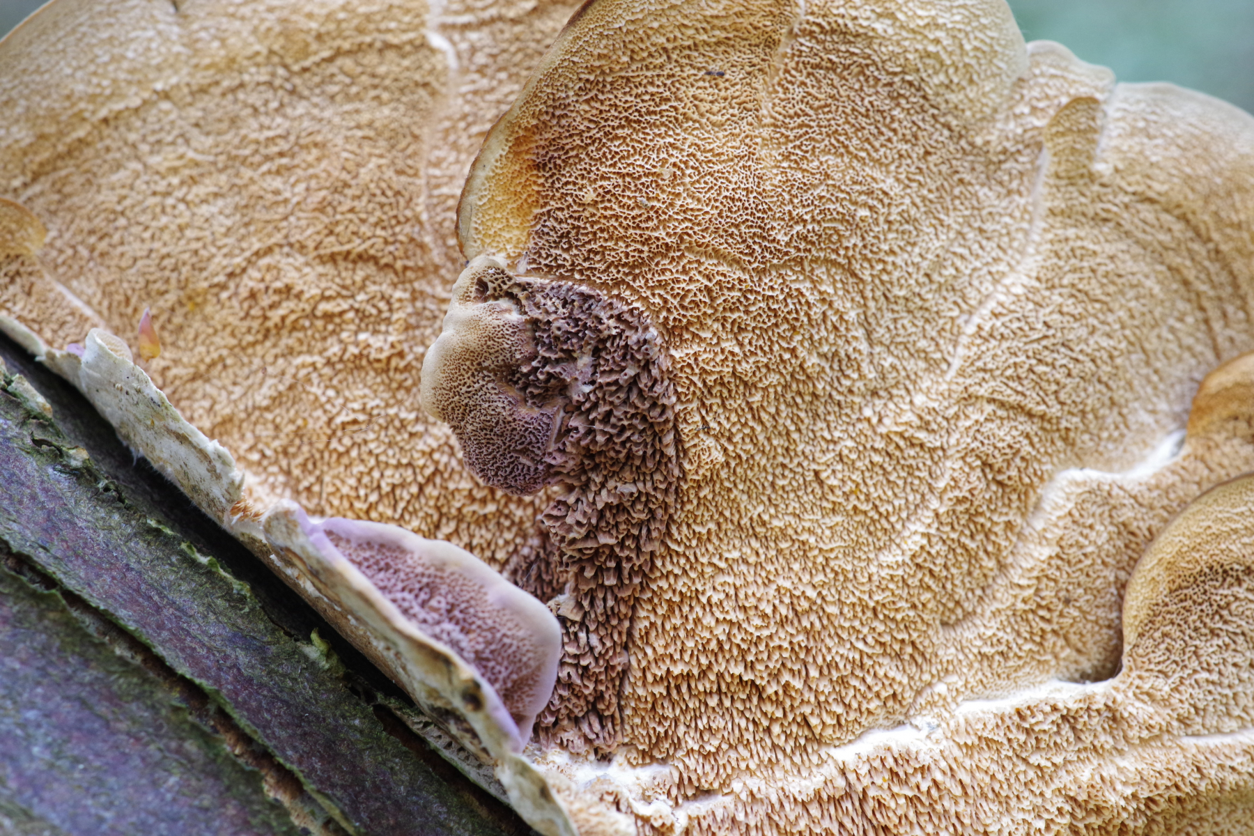 (3a) Zitterpappeln mit den allfälligen Ph. tremulae (im Prinzip an fast jeder älteren Zitterpappel zu finden), der rechte Stamm mit einem interessanten Muster von Bjerkandera adusta, interessant aber vor allem der weiße Porling. Nicht ausschließen kann ich Trametes gibbosa in jung - falls der derzeit in jung sein darf - im Vergleich mit (2d) ist der aber viel dicker und hat nicht ganz so ausgeprägte eckige Poren. Dann gäbe es da noch die Idee Spongipellis spumeus und Spongipellis schulzeri ... (Beleg habe ich mitgenommen)