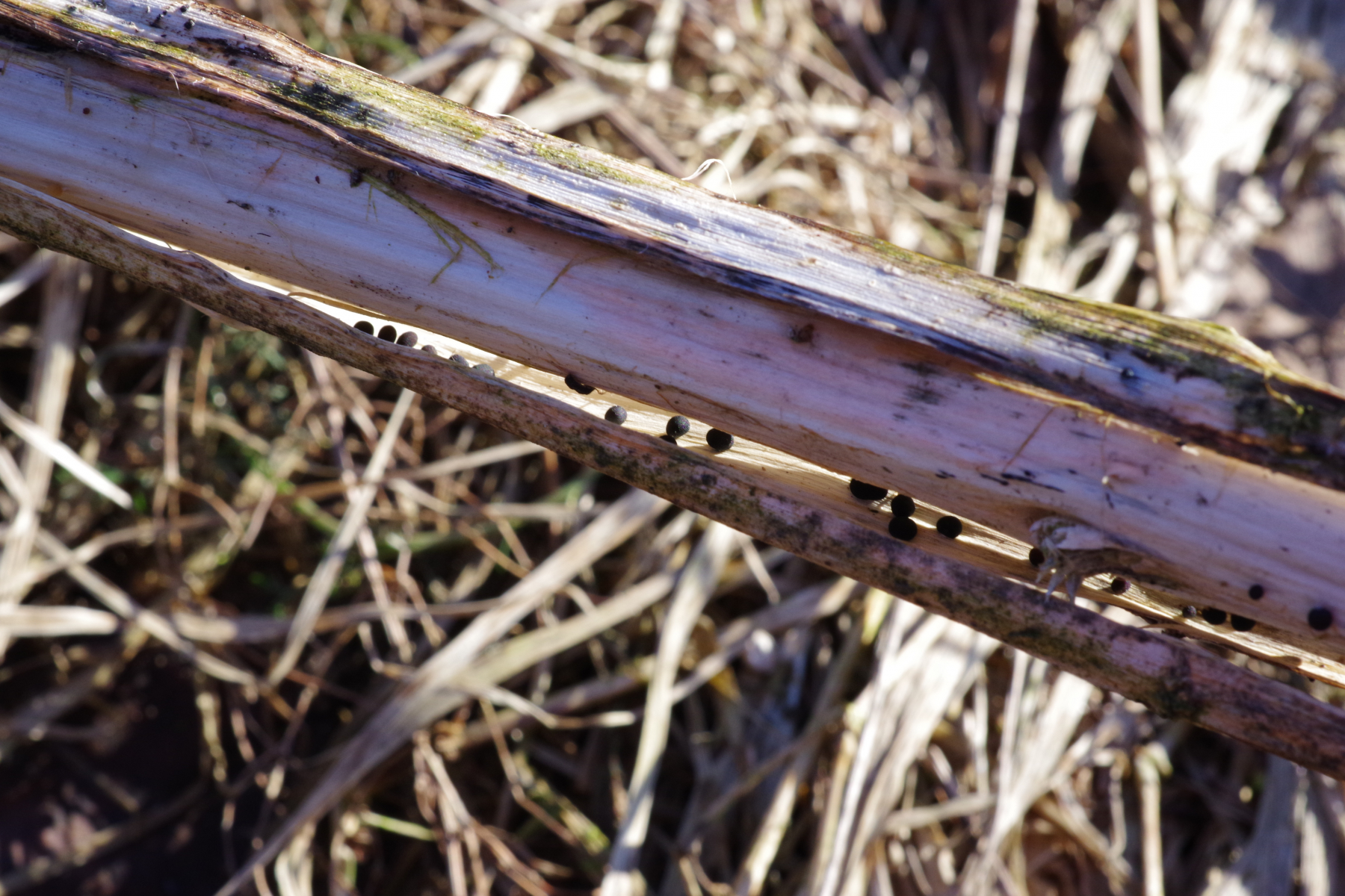 1) Adlerfarn, Pteridium aquilinum, am vorjährigen Stiel und auch (2) Luzula multiflora, zudem sieht man auf Bild 1 auch noch eine Ciboria (rechts unten)