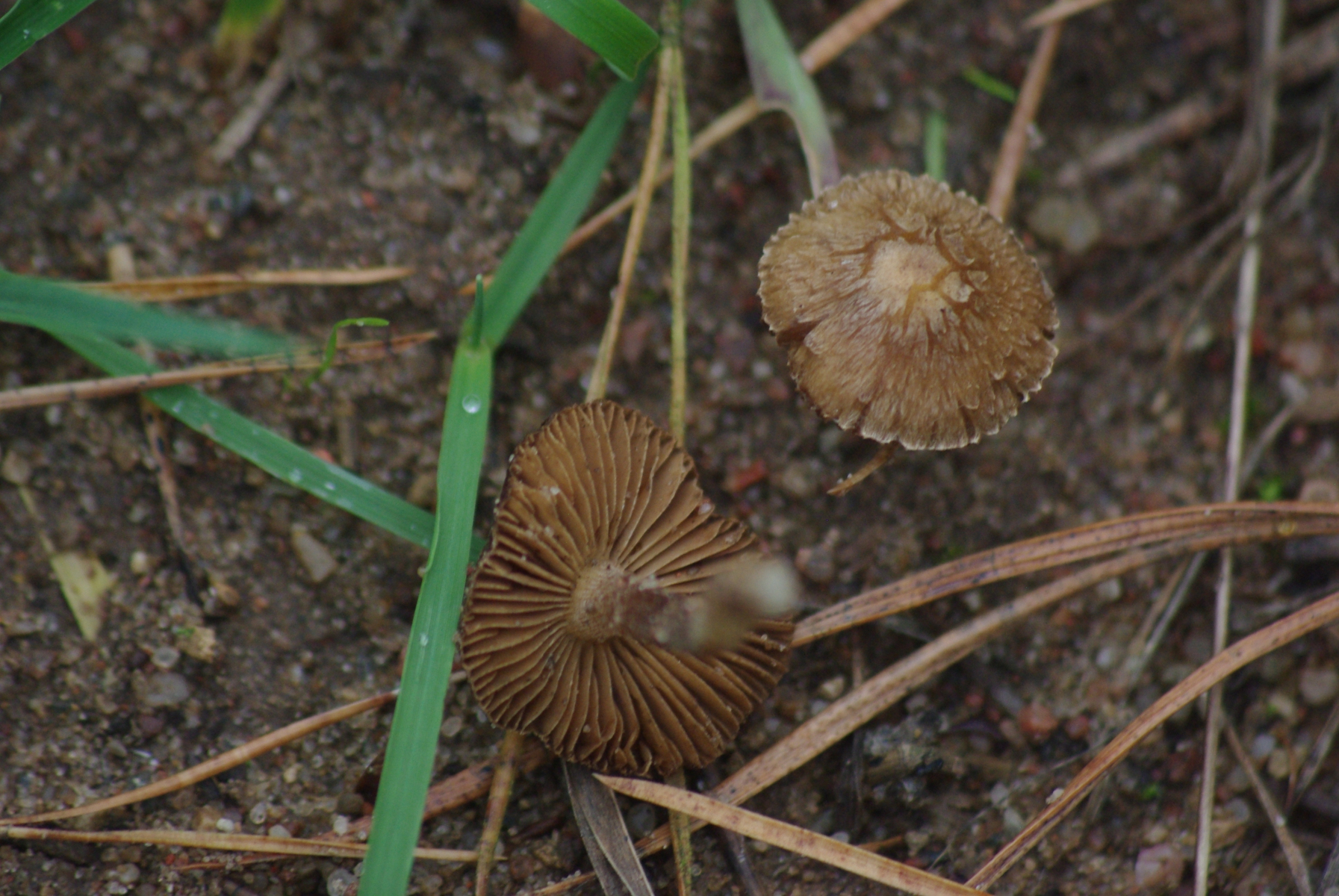 4) Ziemlich kleine (Hut bis max. 2 cm) Pilze an einem alten, nicht mehr genutzten Ameisenhaufen. Könnte das eine Stropharia (oder eine der Ausgliederungen davon sein?)