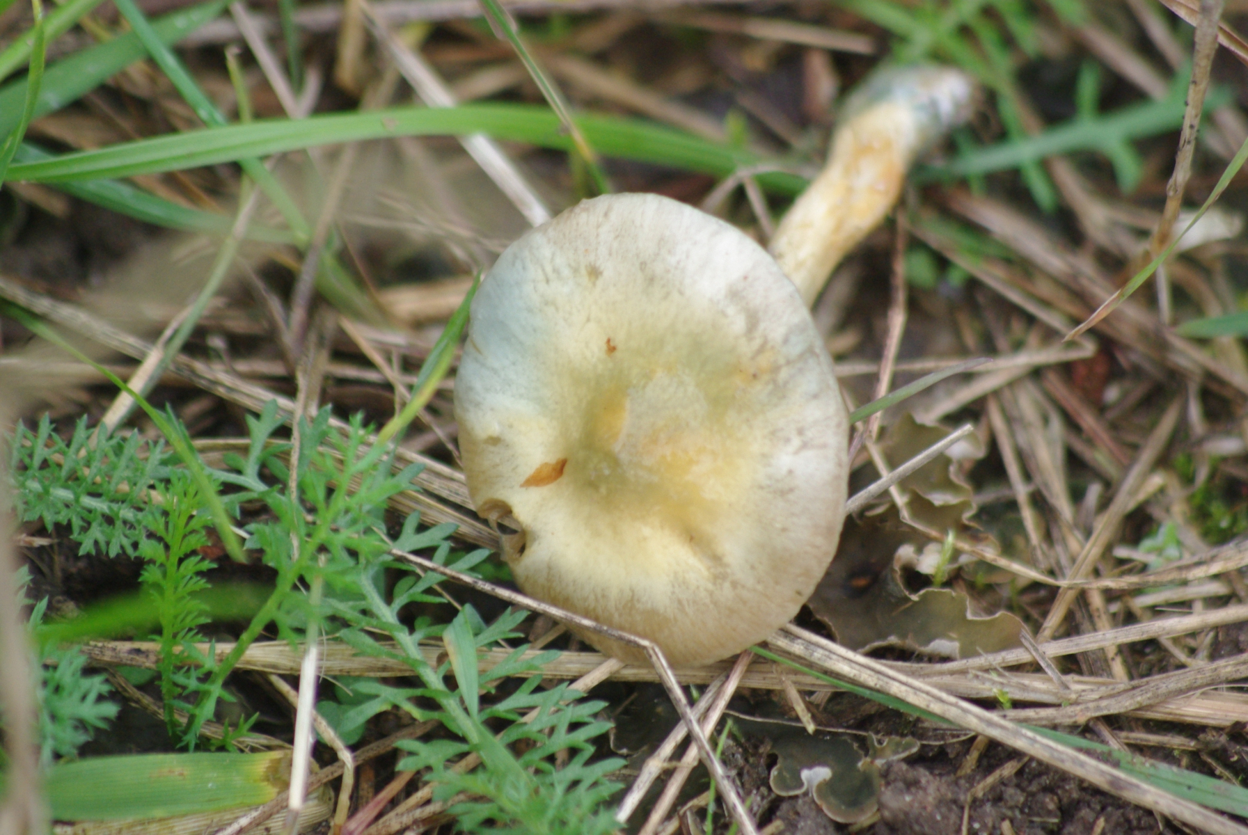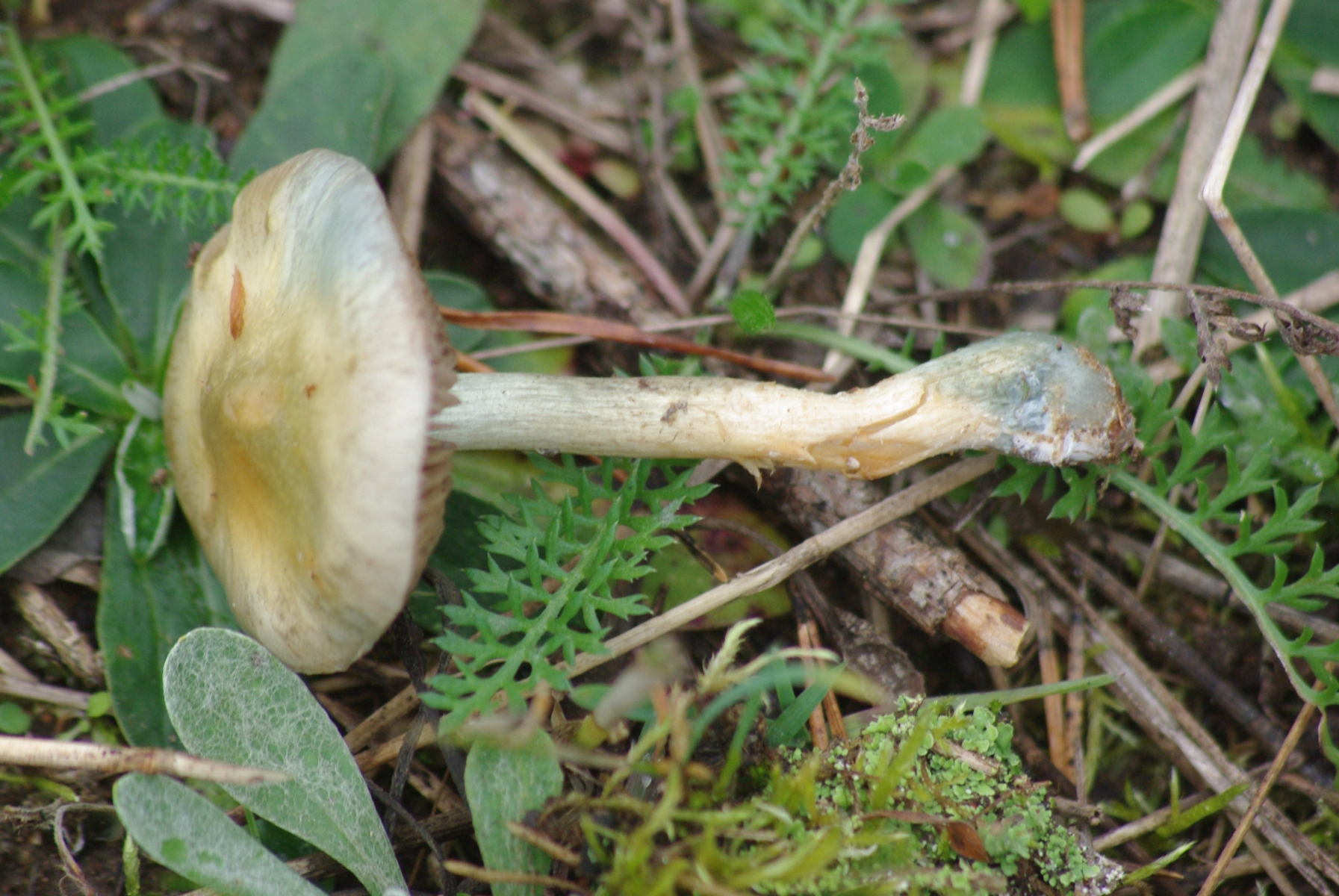 3) Pilz 2 und 3 standen nur 30 cm nebeneinander, die würde ich schon als zugehörig betrachten. S. caerula hatte ich mir auch angeschaut, aber sollten da nicht auch die Stiele bläulicher sein? Wird aber wohl ohne Mikroskop bei sp. bleiben