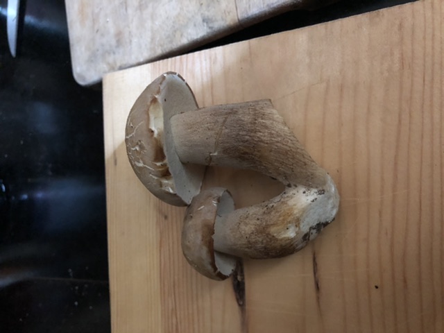 Den zweiten habe ich zunächst für einen normalen etwas blassen Steinpilz gehalten. Könnte es vielleicht auch ein Birkensteinpilz sein (Birke war in der Nähe)
