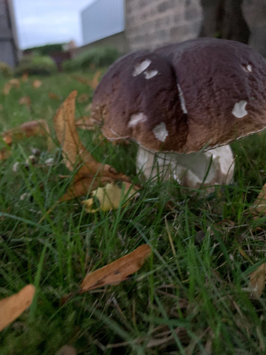 15 c) Und eventuell gehören diese Monster mit Violett überhauchtem Stiel und riesigen Sporen bis über 15 um auch dazu, auch hier geht ein Exemplar an Pablo