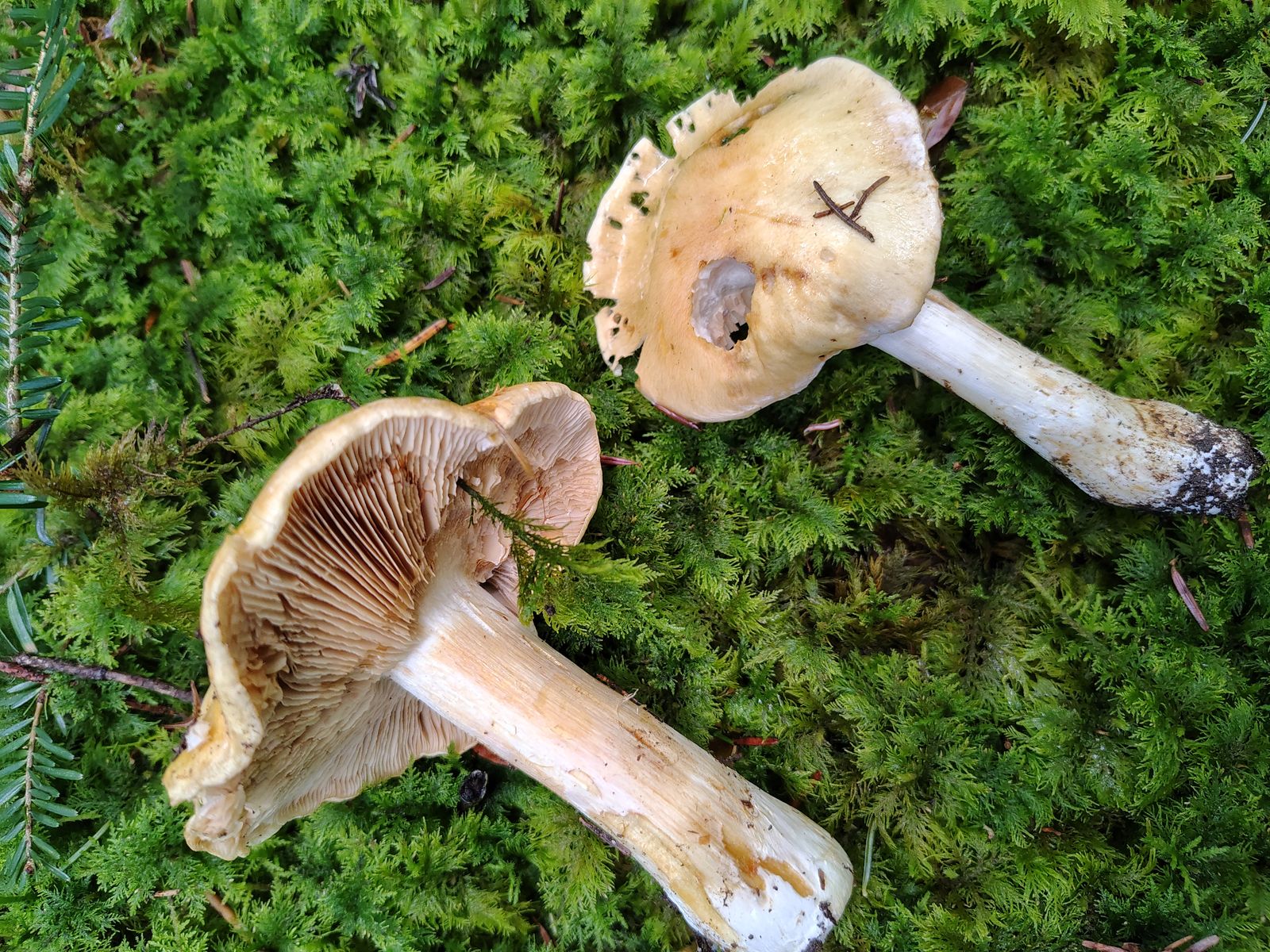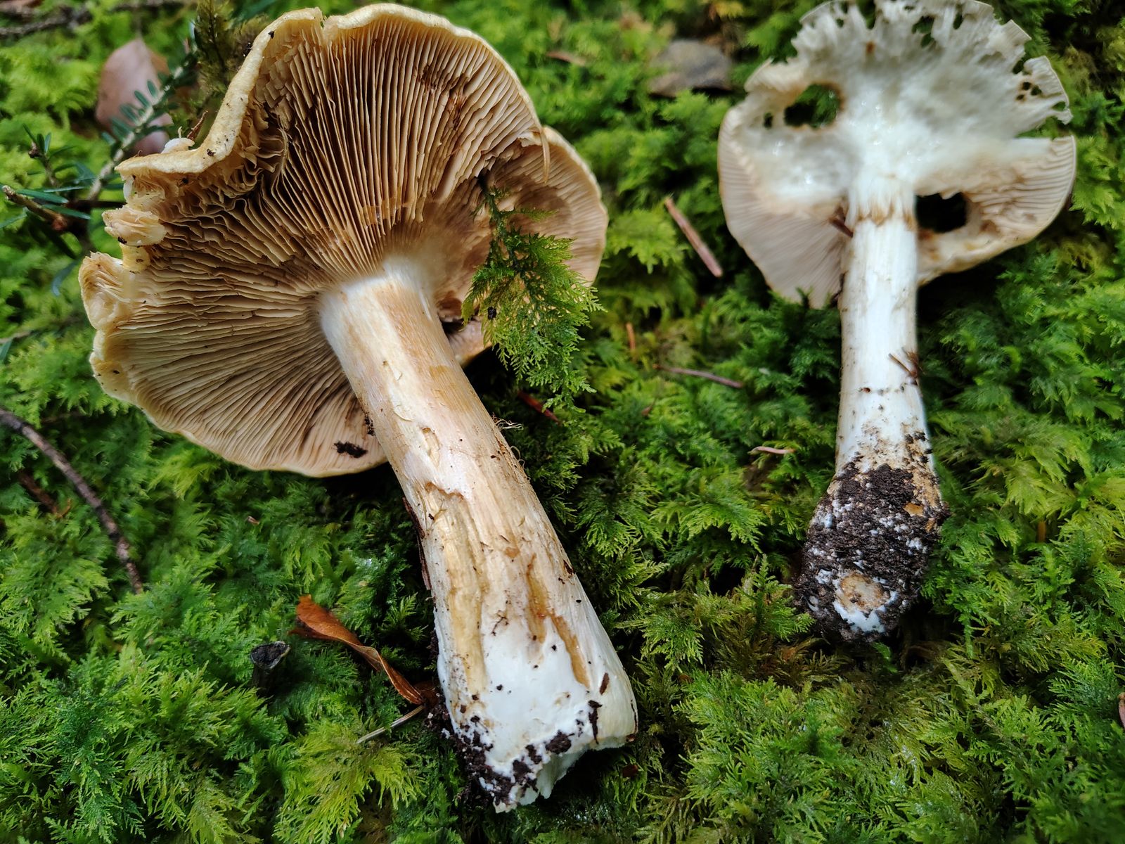 bin gerade am Bilder sortieren und hab noch diese zwei gefunden, die eventuell was interessantes sein könnten. Gefunden im Oktober bei Fichte/Tanne, Boden in der Nähe mit Kalk, an der Stelle aber wahrscheinlich sauer.