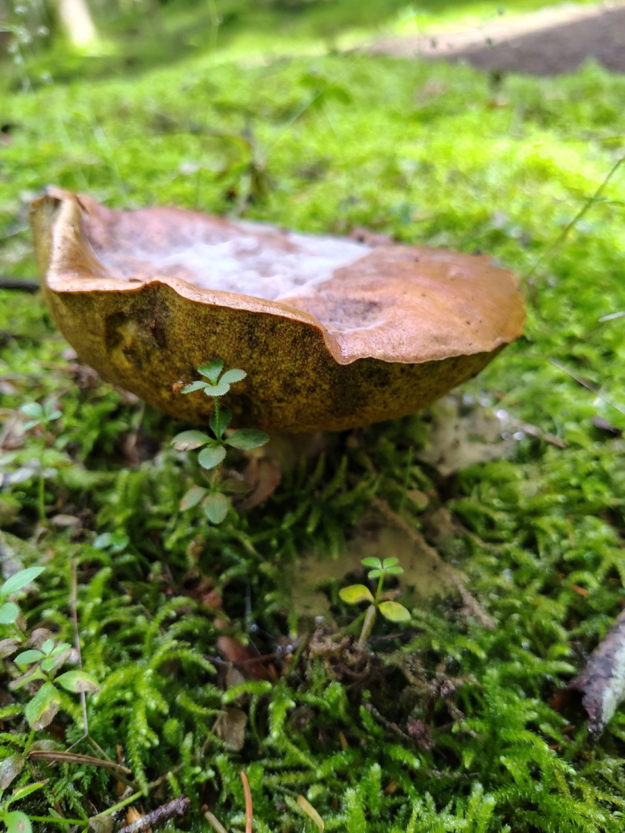 Eigentlich halte ich das für B. appendiculatus, aber das Habitat, das fehlende Anhängsel und das nicht Blauen im Fleisch macht mich etwas stutzig. Kann den jemand festnageln? Übrigens müssen die bei desaströser Trockenheit gewachsen sein, die kamen sicher noch vor dem Regen am Dienstag; am Dienstag letzte Woche kamen zwar 10l aber davor wars furztrocken. Das Habitat hält zwar die Feuchtigkeit sehr gut (was auch irgendwie gegen appendiculatus spricht, ich kenne den von eher trockenen Stellen) aber das ist trotzdem krass.